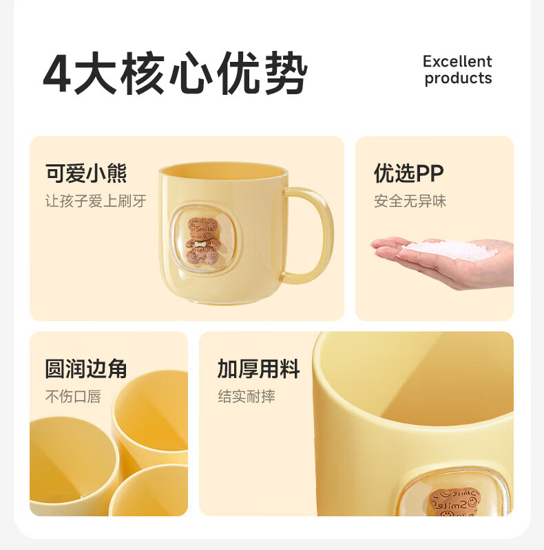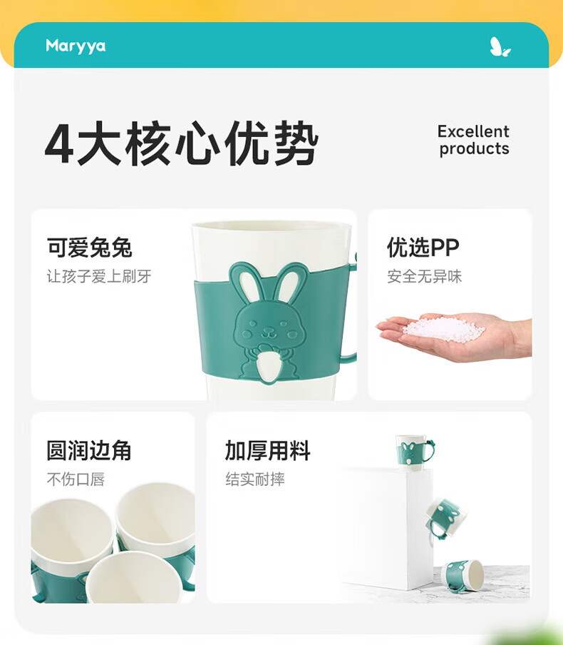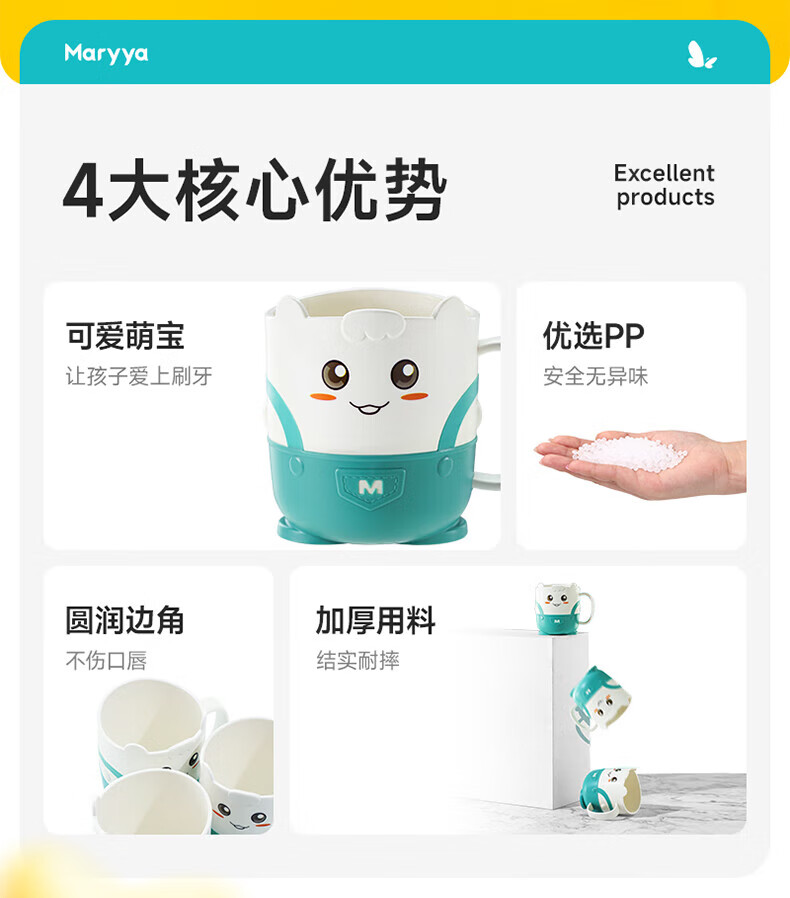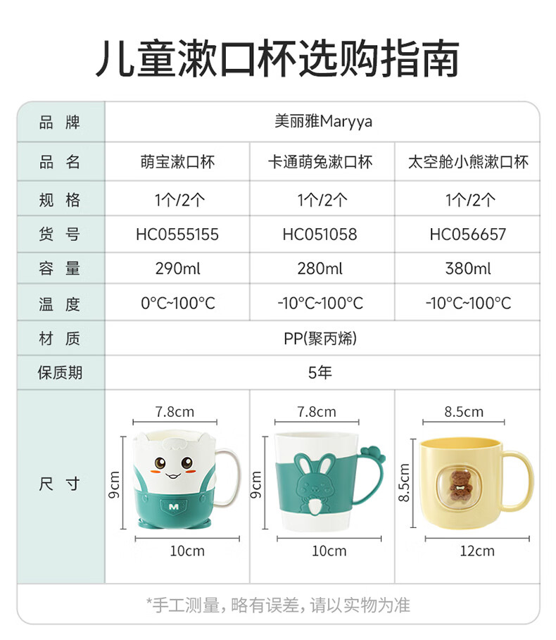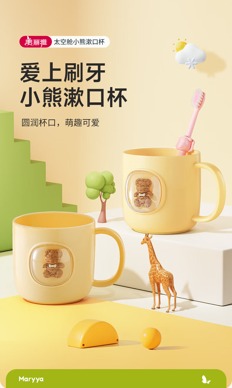美丽雅(MARYYA)儿童漱口杯刷牙杯子家用加厚宝宝洗漱牙缸杯卡通造型 【萌宝款】儿童漱口杯*2个