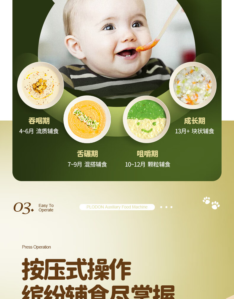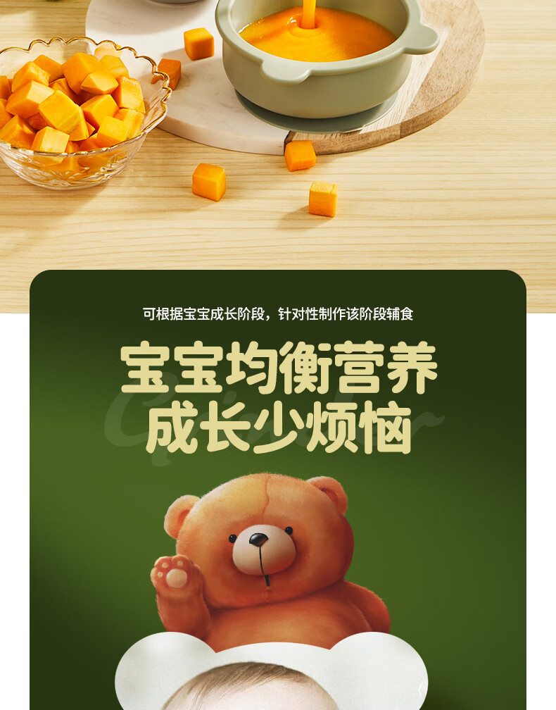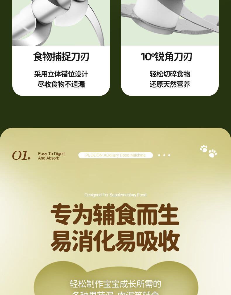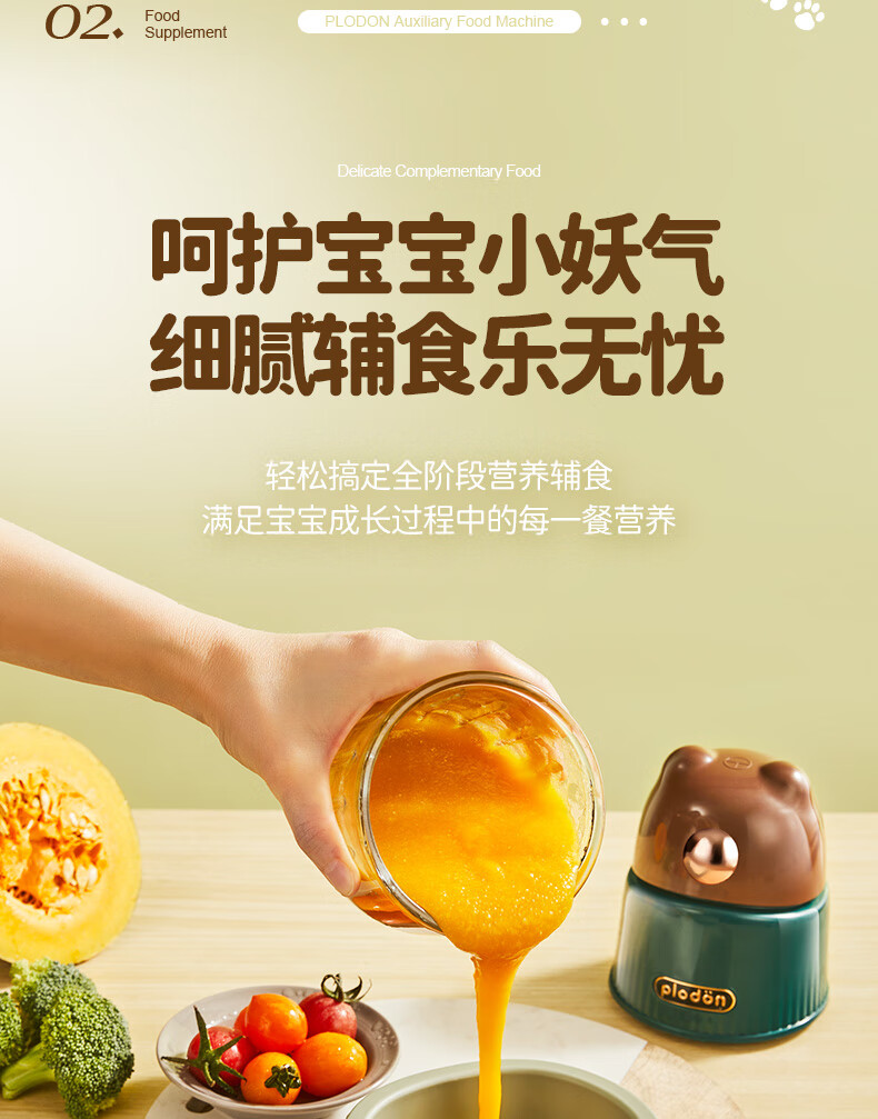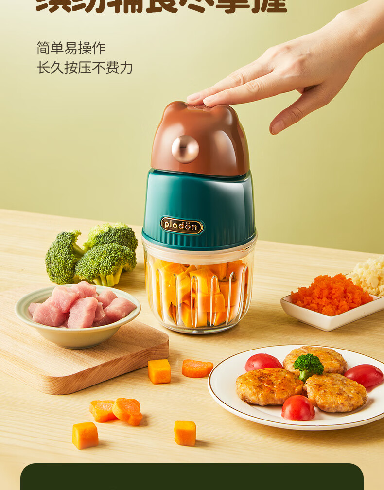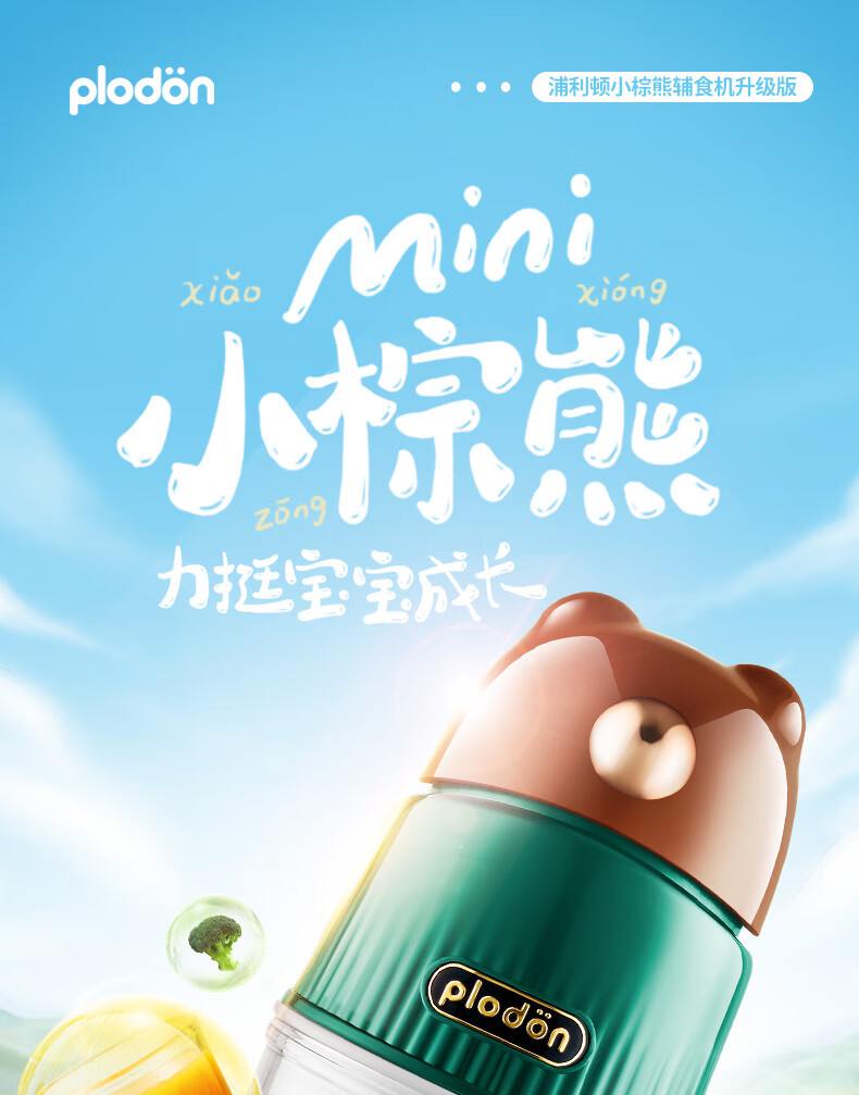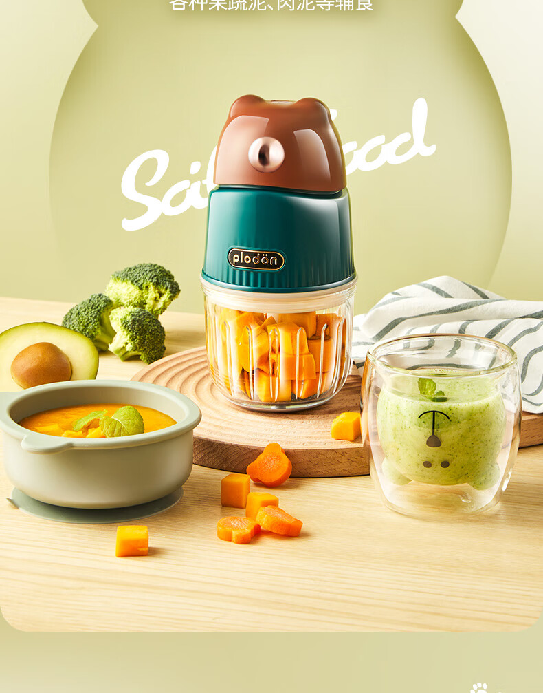 浦利顿(PLODON)婴儿辅食机多功能辅食料理机 白+棕2 白熊辅食机单杯 12叶刀头 送赠品