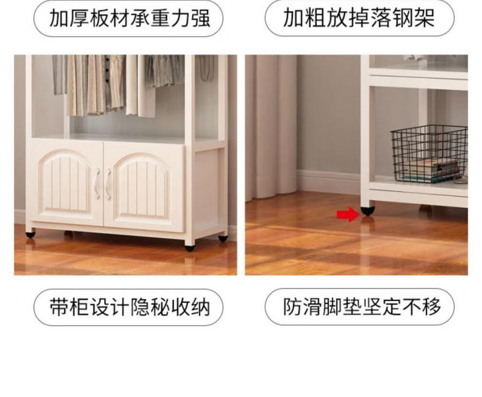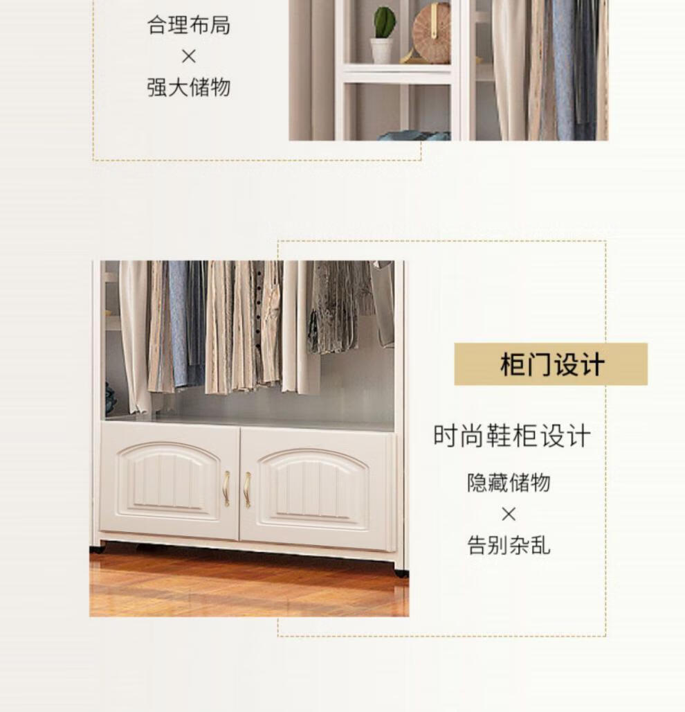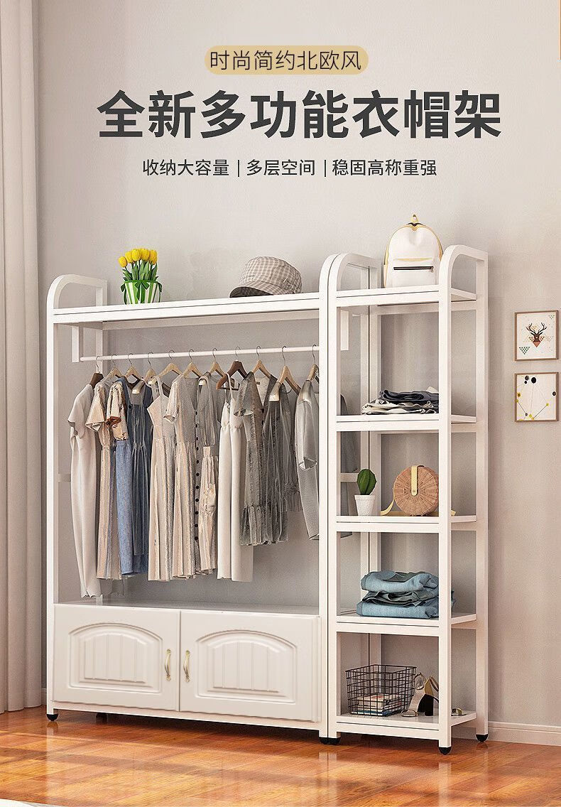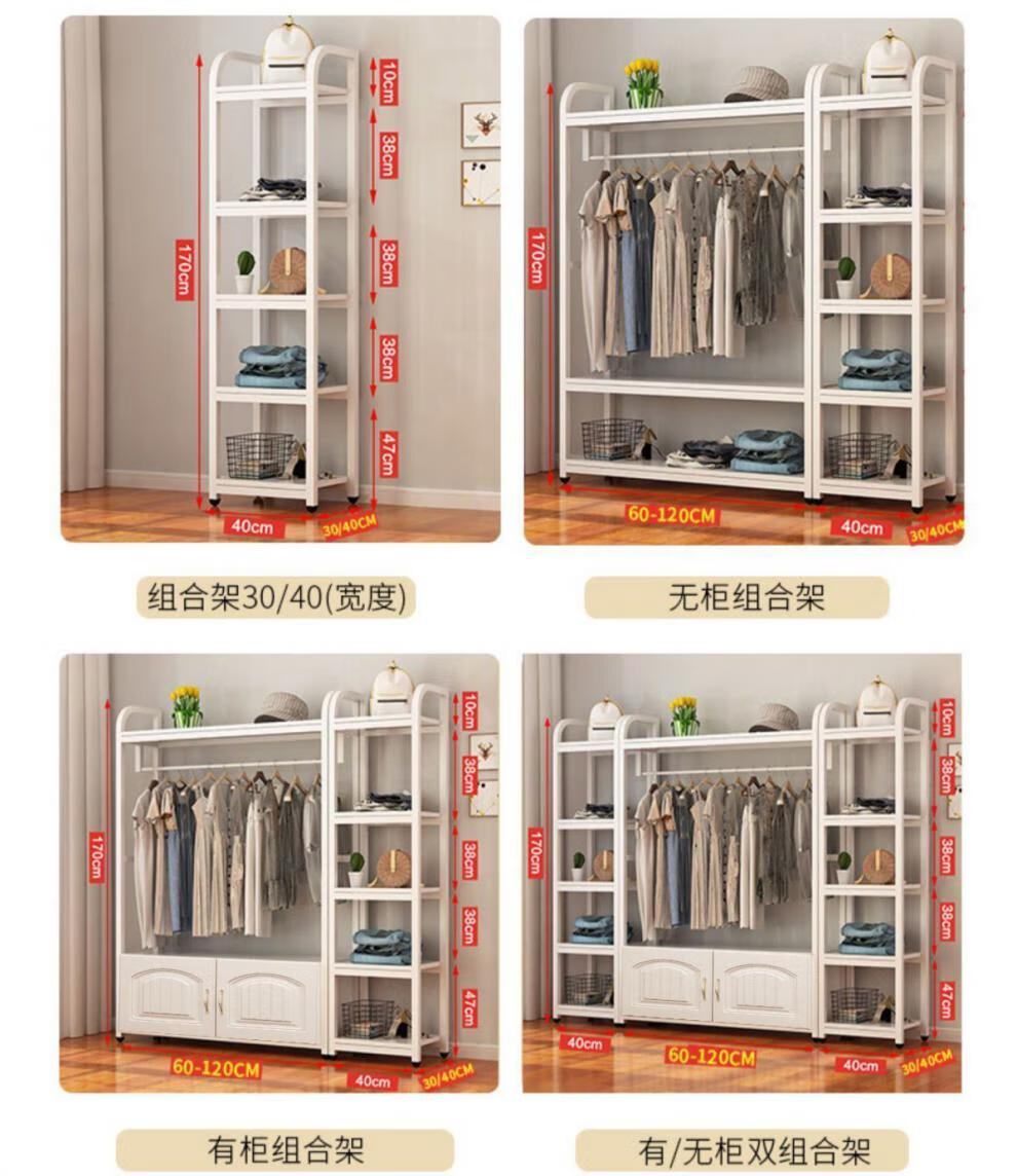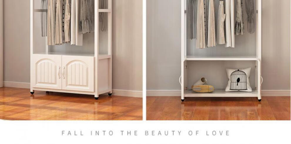 苍槿家用铁艺衣帽架落地卧室门厅衣柜北欧挂衣架客厅置物架简约衣架子 【两开门】 长60宽40高170