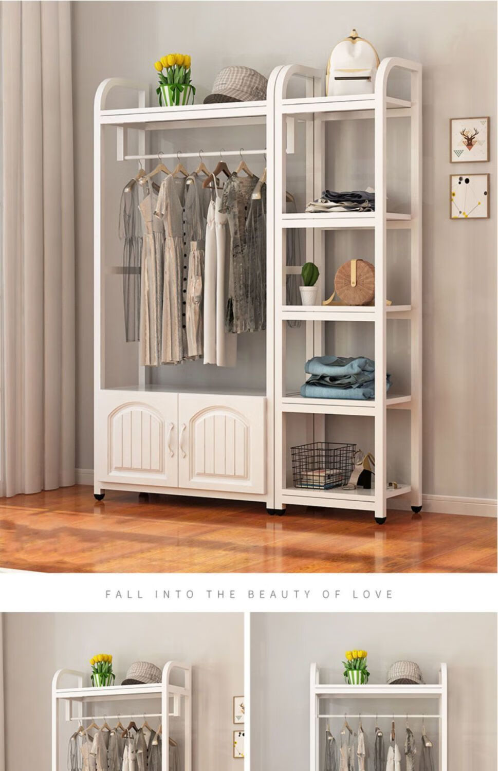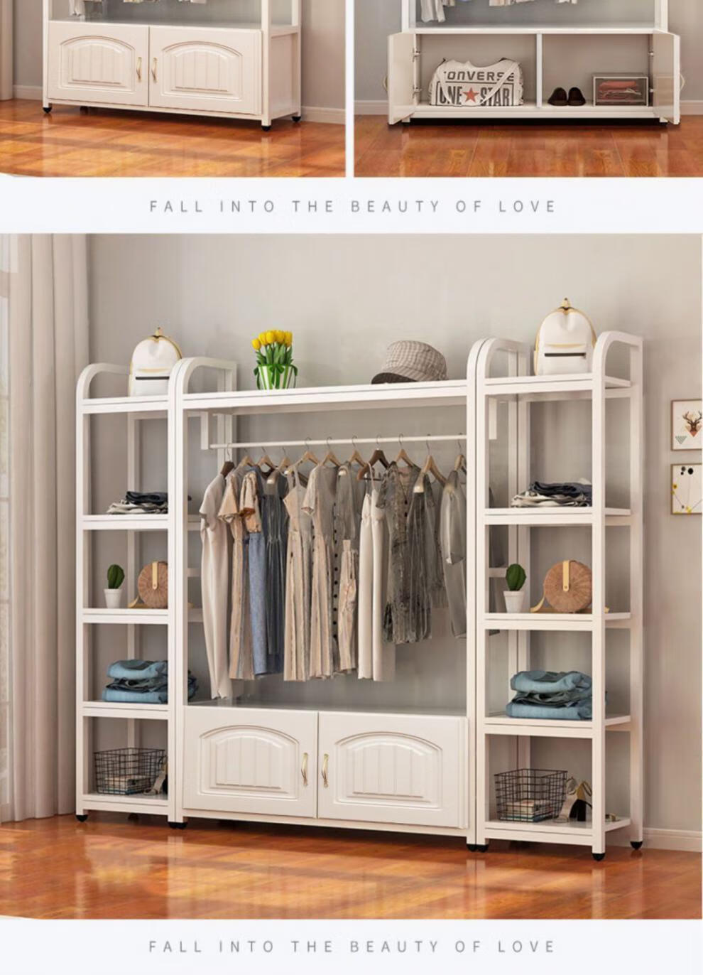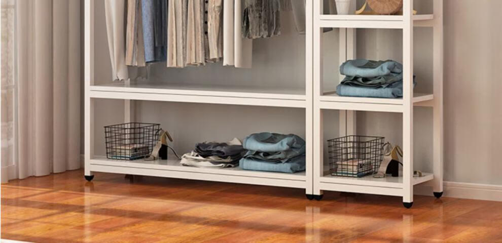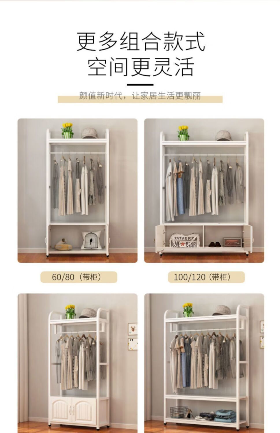 苍槿家用铁艺衣帽架落地卧室门厅衣柜北欧挂衣架客厅置物架简约衣架子 【两开门】 长60宽40高170