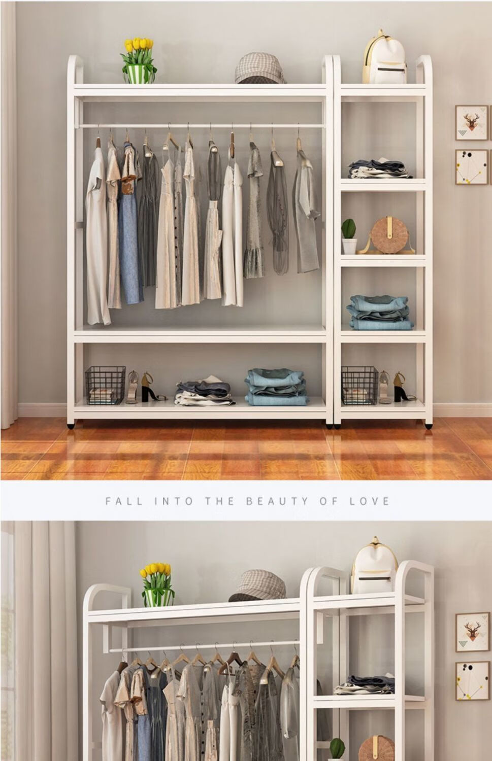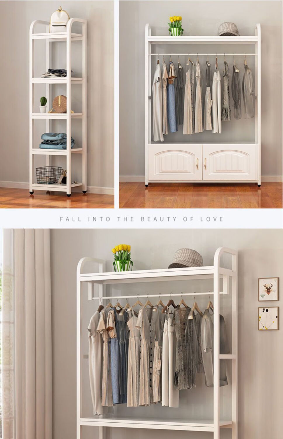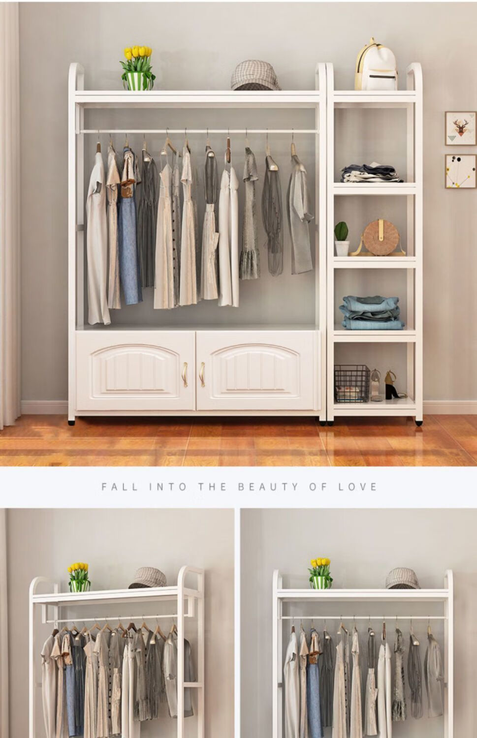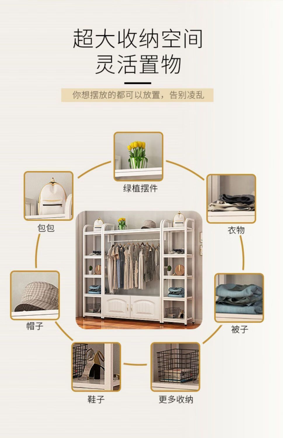 苍槿家用铁艺衣帽架落地卧室门厅衣柜北欧挂衣架客厅置物架简约衣架子 【两开门】 长60宽40高170