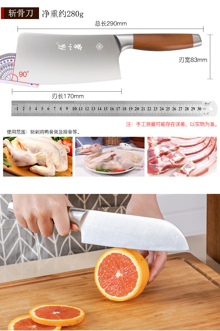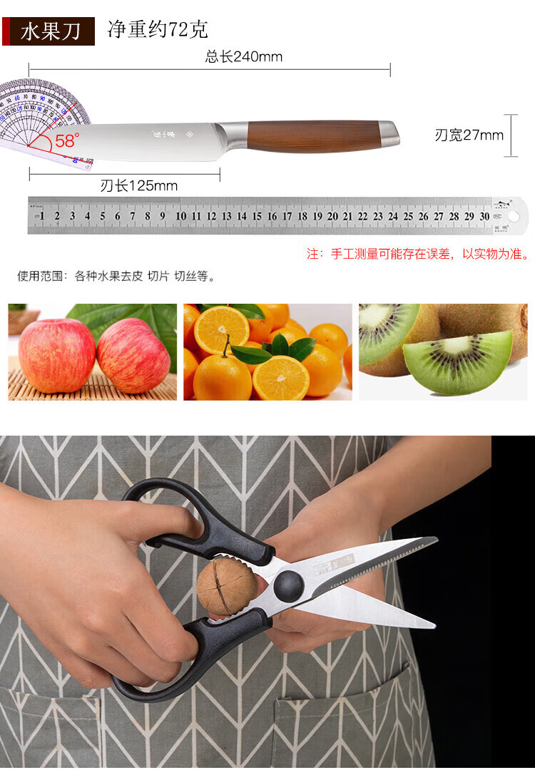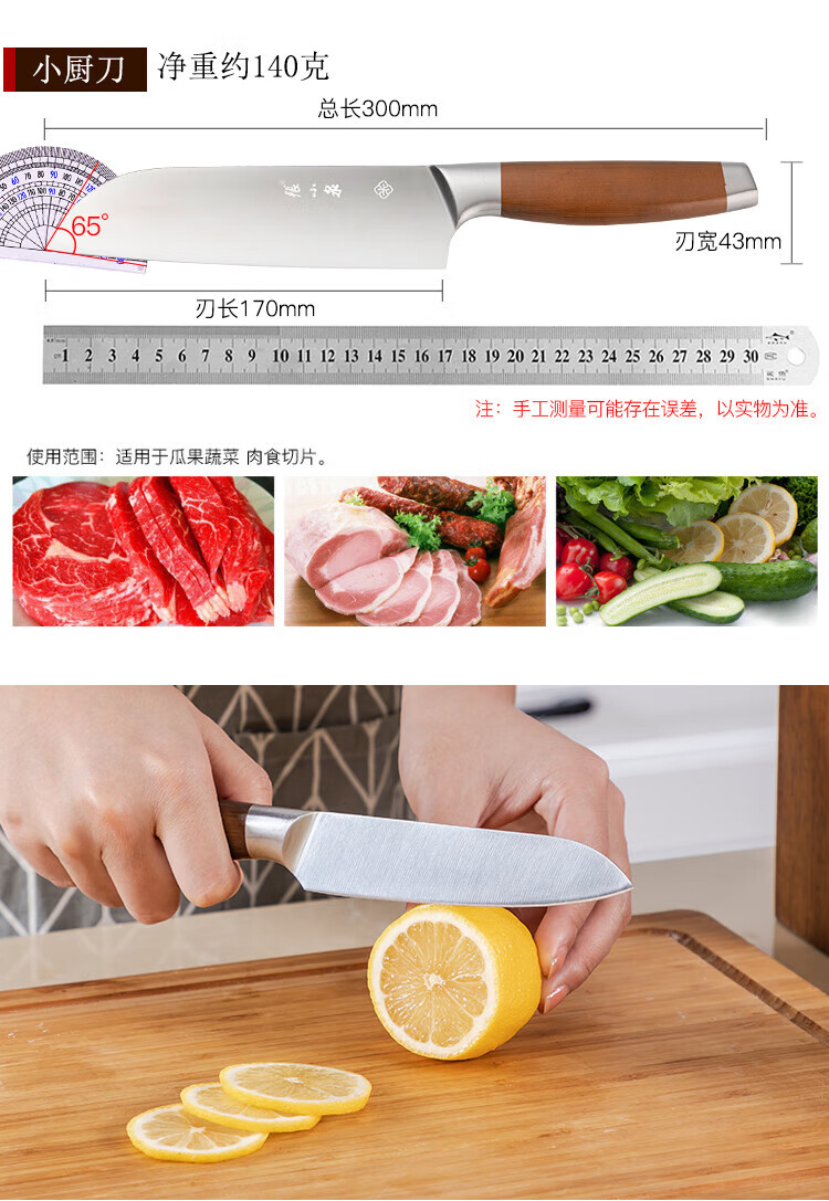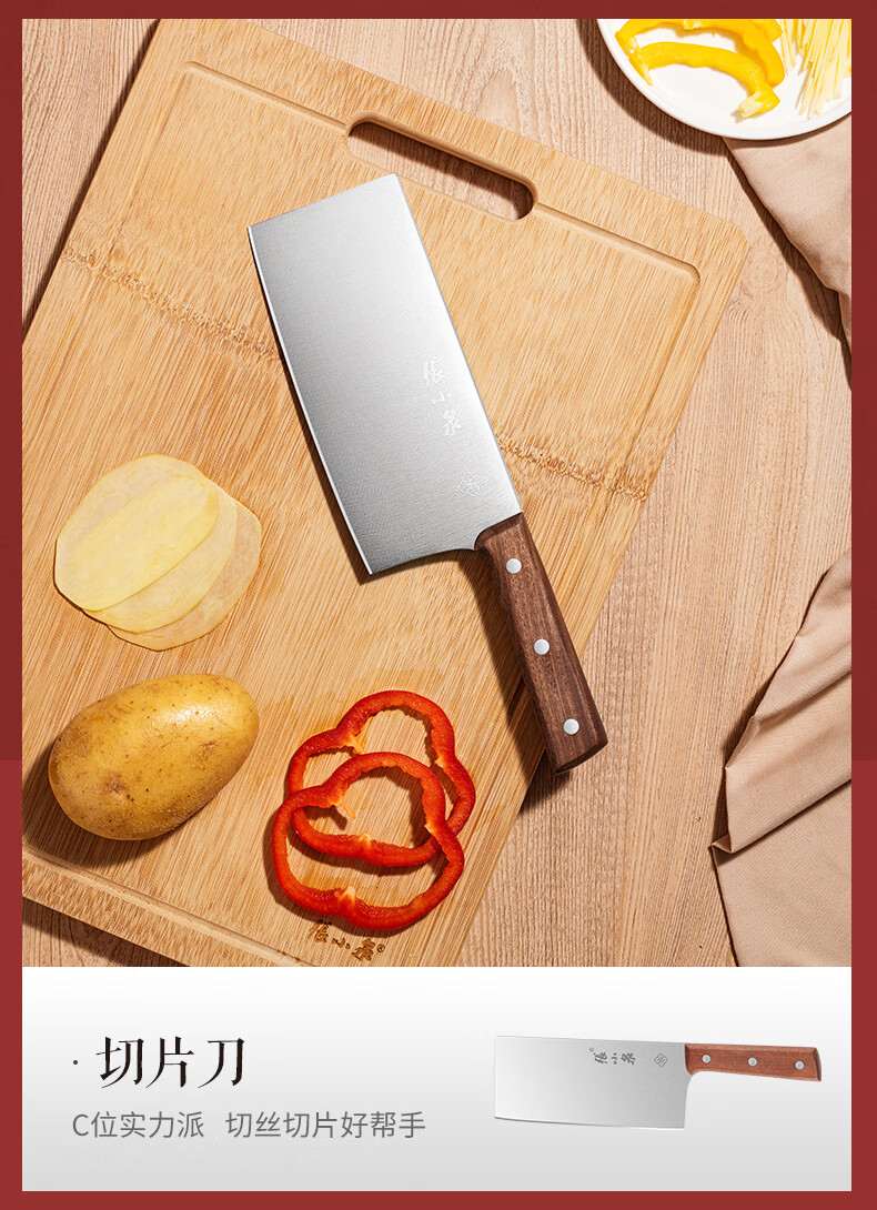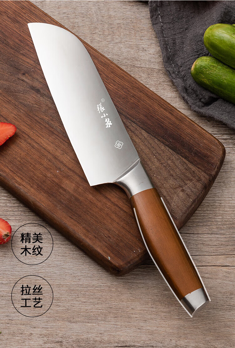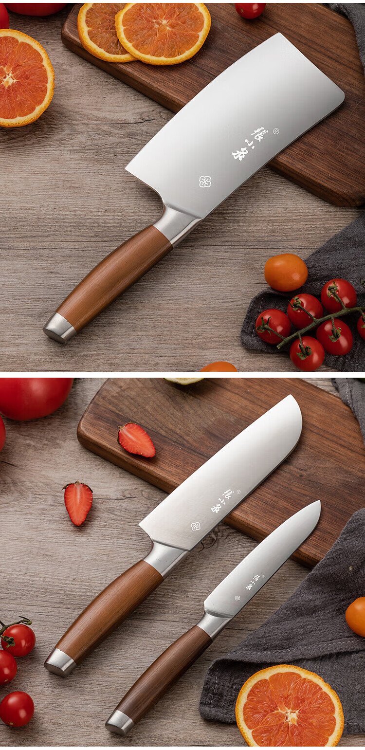 张小泉刀具全套菜刀套装家用正宗厨房厨具一整套菜板一体二合一切菜砍骨 正品带磨刀器实木刀座刀架 名刃六件套