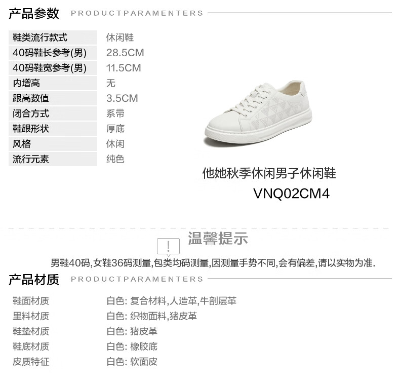 他她(TATA)秋季新款时尚男士休闲简约百搭板鞋小白鞋VNQ02CM4 白色 40