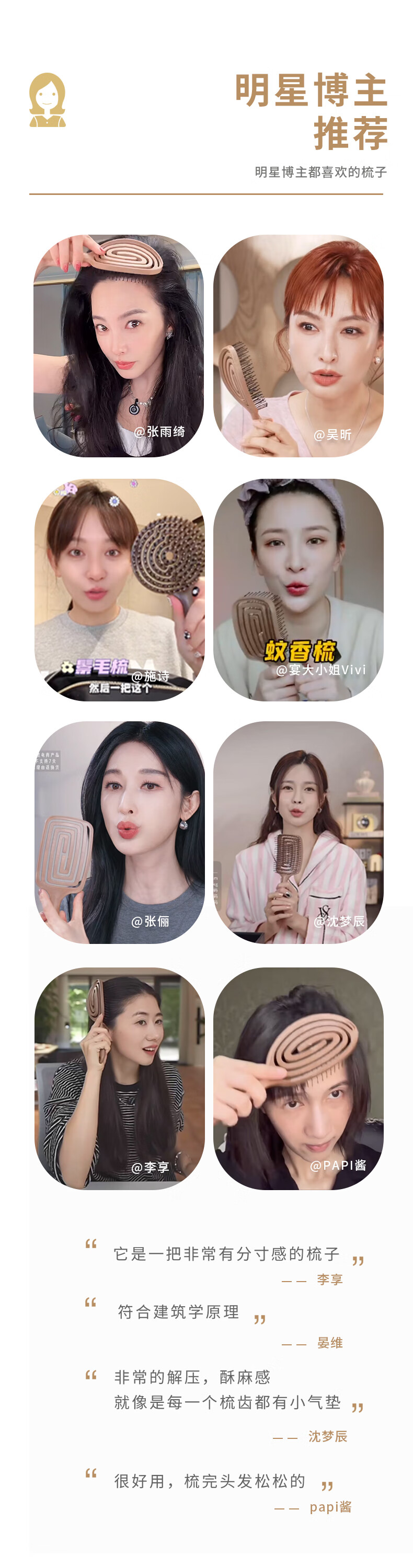 yao梳子女镂空弹力气垫气囊按摩梳干湿两用顺发梳节日礼物椭圆木纹色