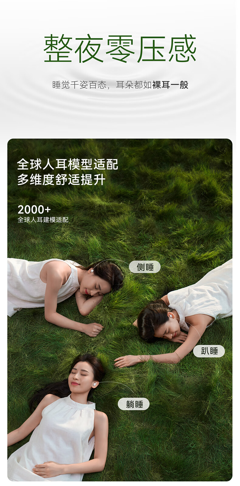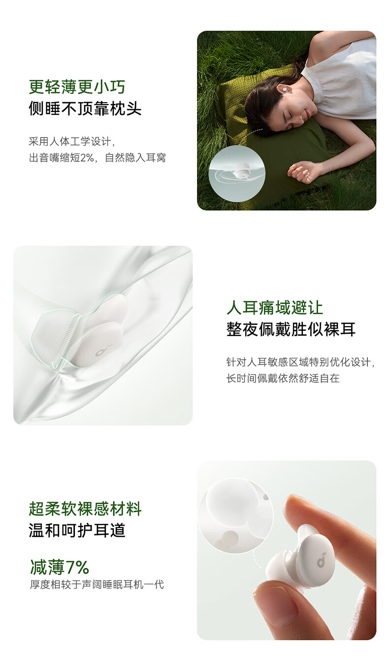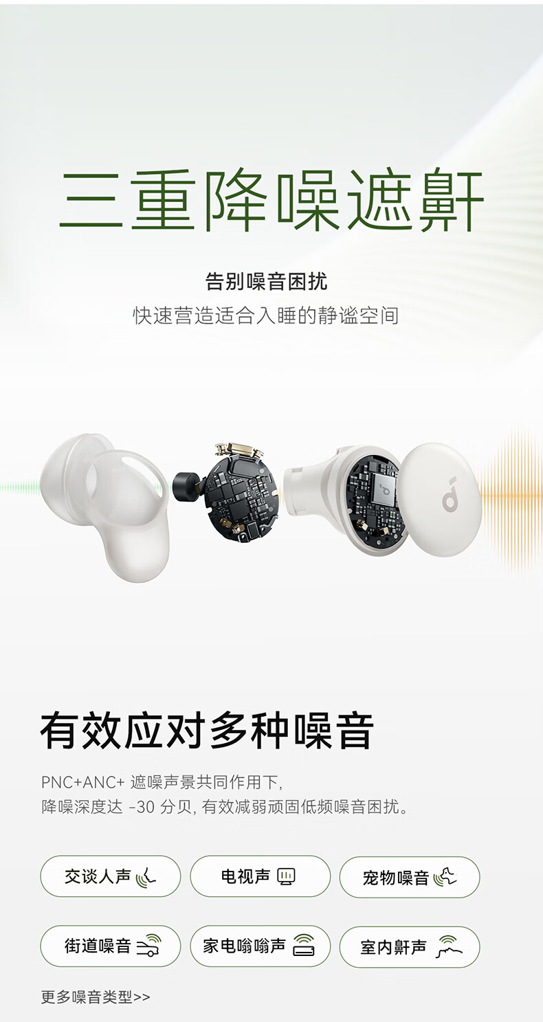 声阔SleepA30睡眠耳机深睡舱无线降噪蓝牙耳机睡觉不压耳隔音耳塞助眠隐形小巧适用苹果华为小米绿色