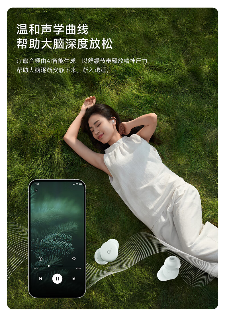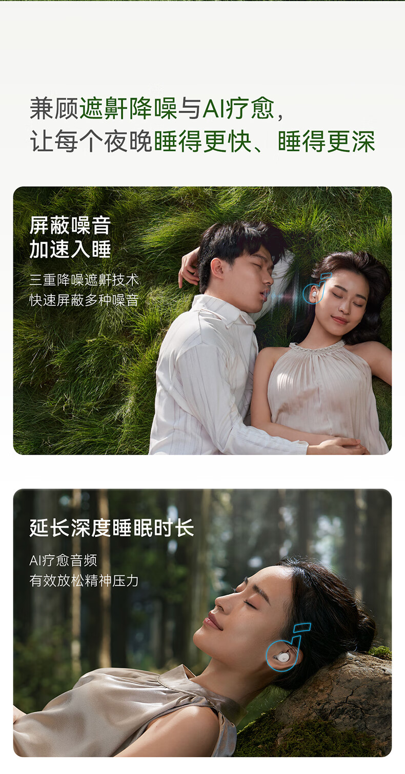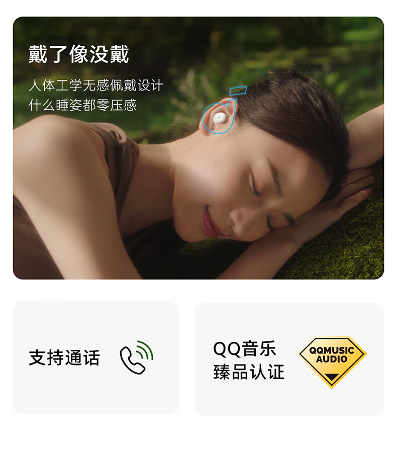 声阔SleepA30睡眠耳机深睡舱无线降噪蓝牙耳机睡觉不压耳隔音耳塞助眠隐形小巧适用苹果华为小米绿色