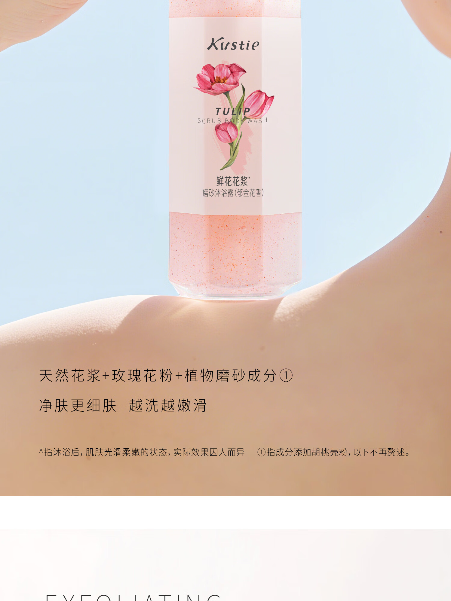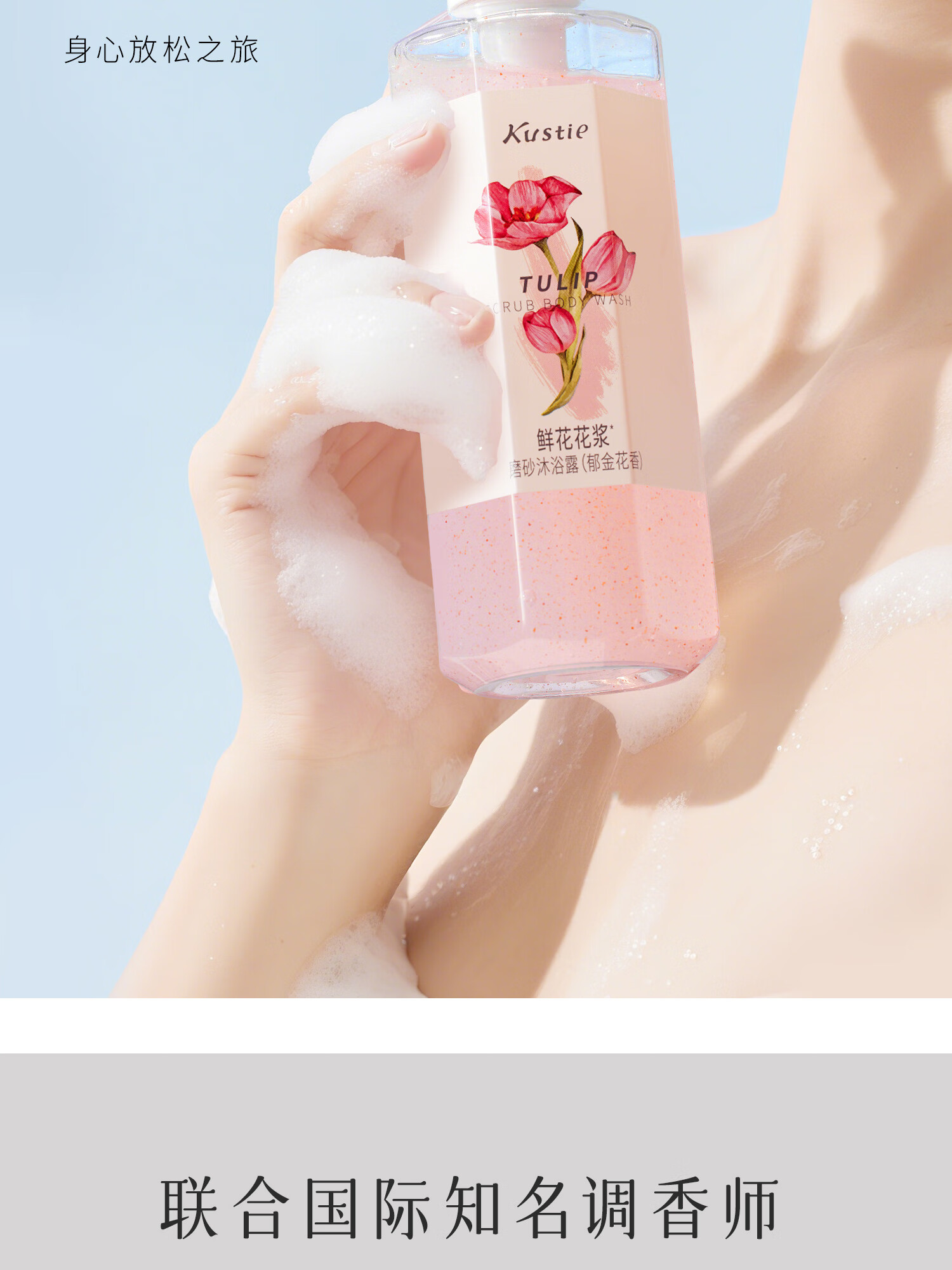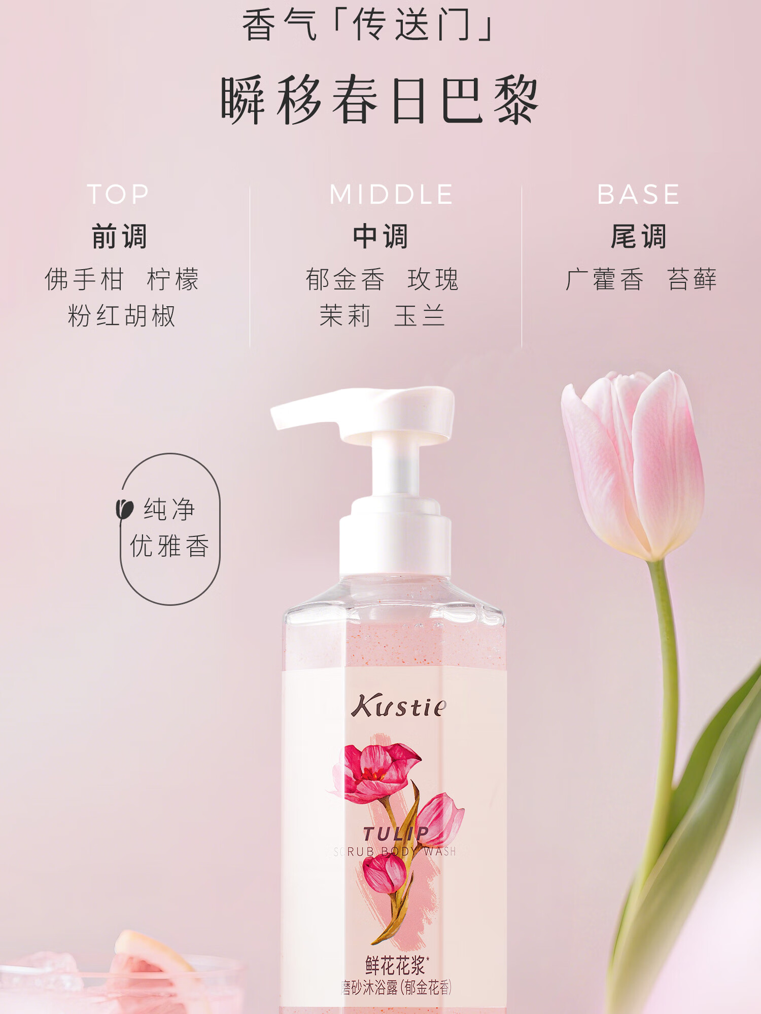 蔻斯汀(Kustie)郁金香浴盐花浆磨砂膏去角质清洁沐浴露二合一滋润香氛沫浴液春夏 郁金花香 磨砂沐浴露*450g
