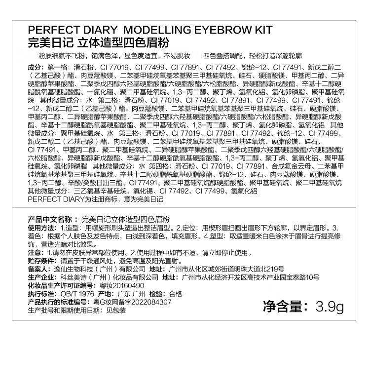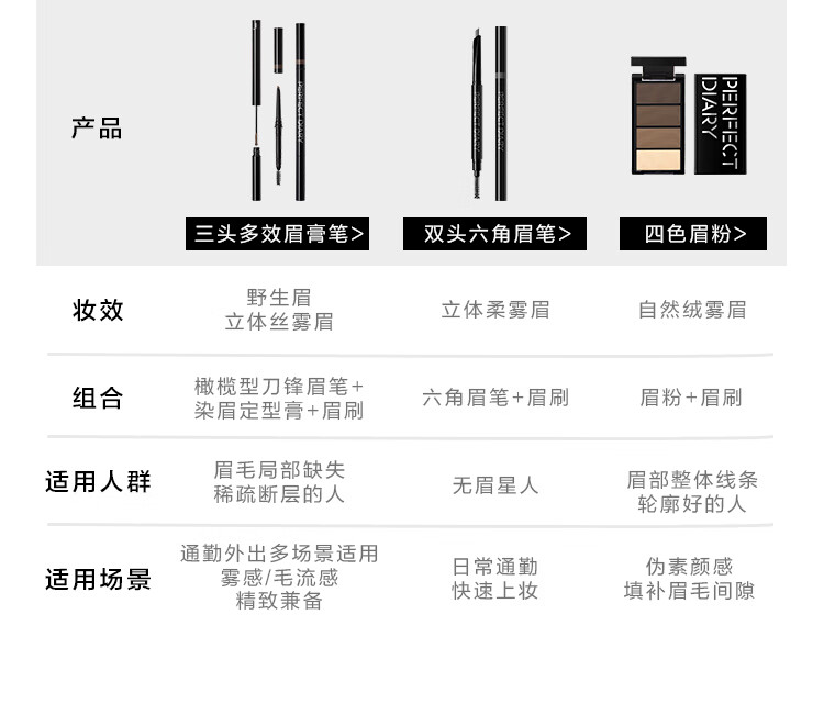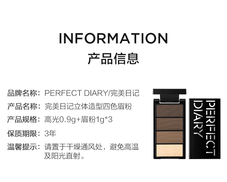 完美日记立体造型四色眉粉防水防汗不易脱色持久眉笔3.9g生日礼物