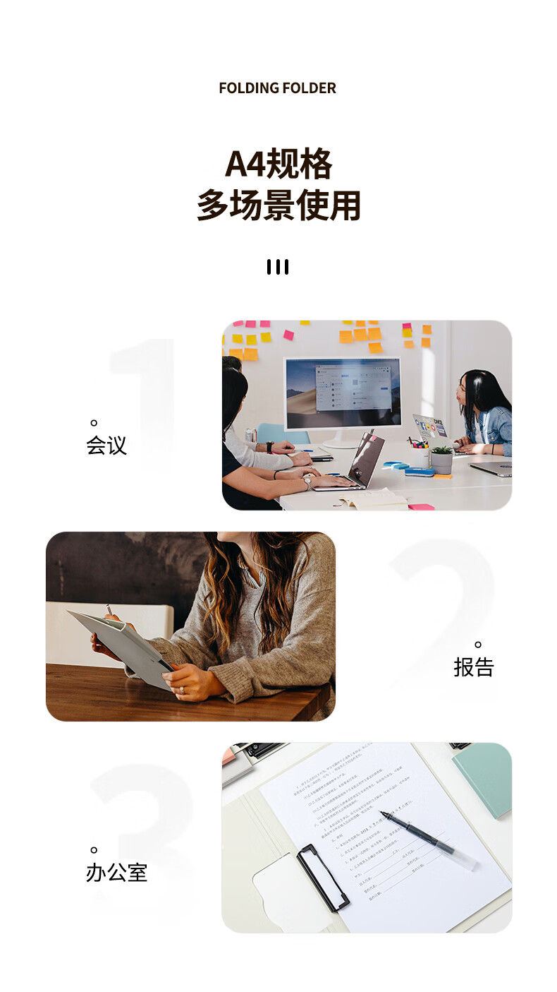 齐心(COMIX)3个装A4横式折页板夹会议夹 加厚硬文件夹 诗朗诵签约夹板 试卷资料收纳夹菜单夹 混色DS-873