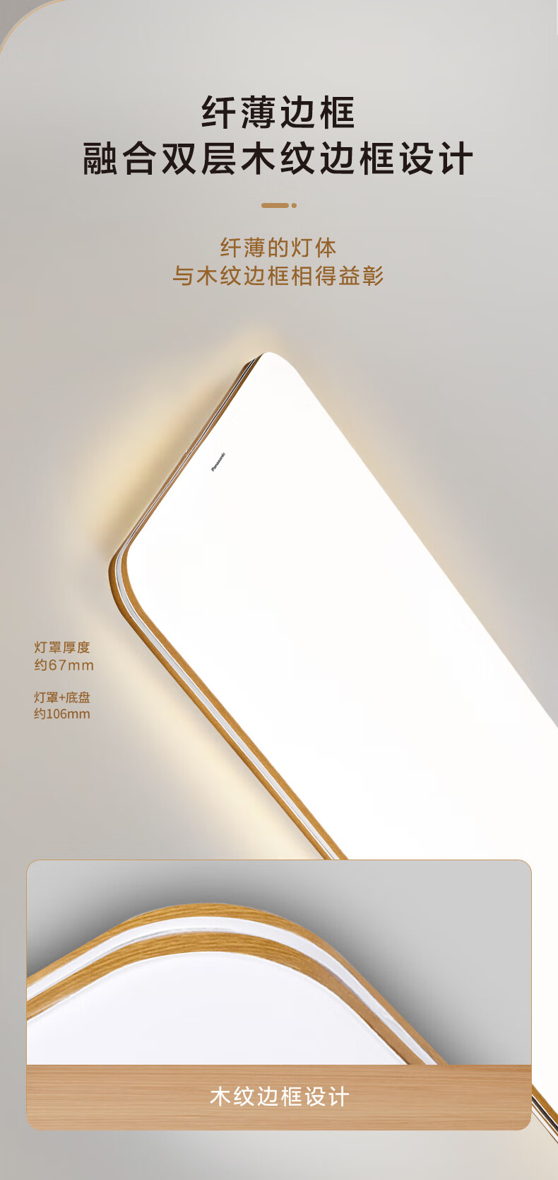 松下(Panasonic)吸顶灯客厅大灯超薄灯120瓦客厅灯明畔棕HHLAZ6066L