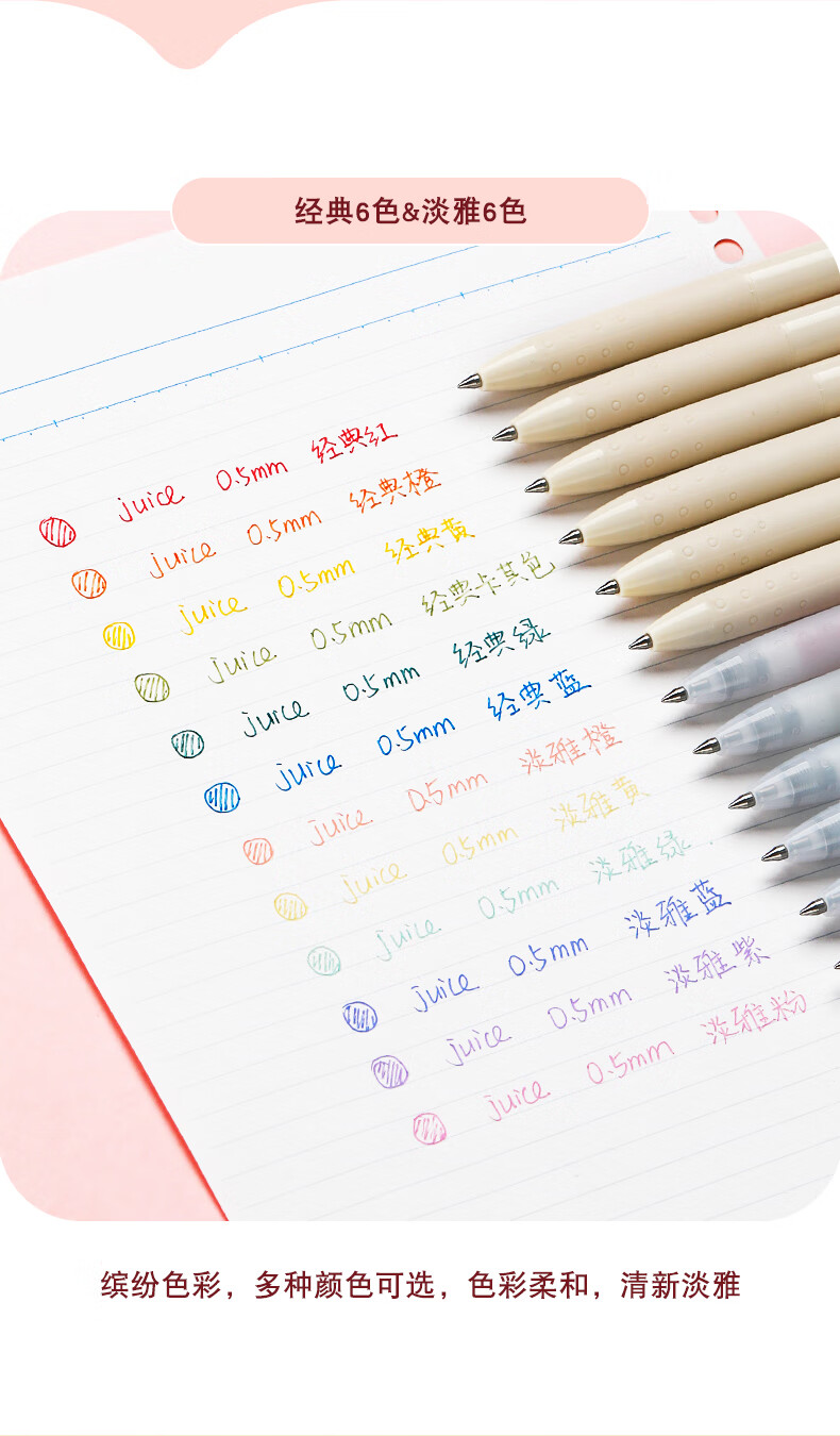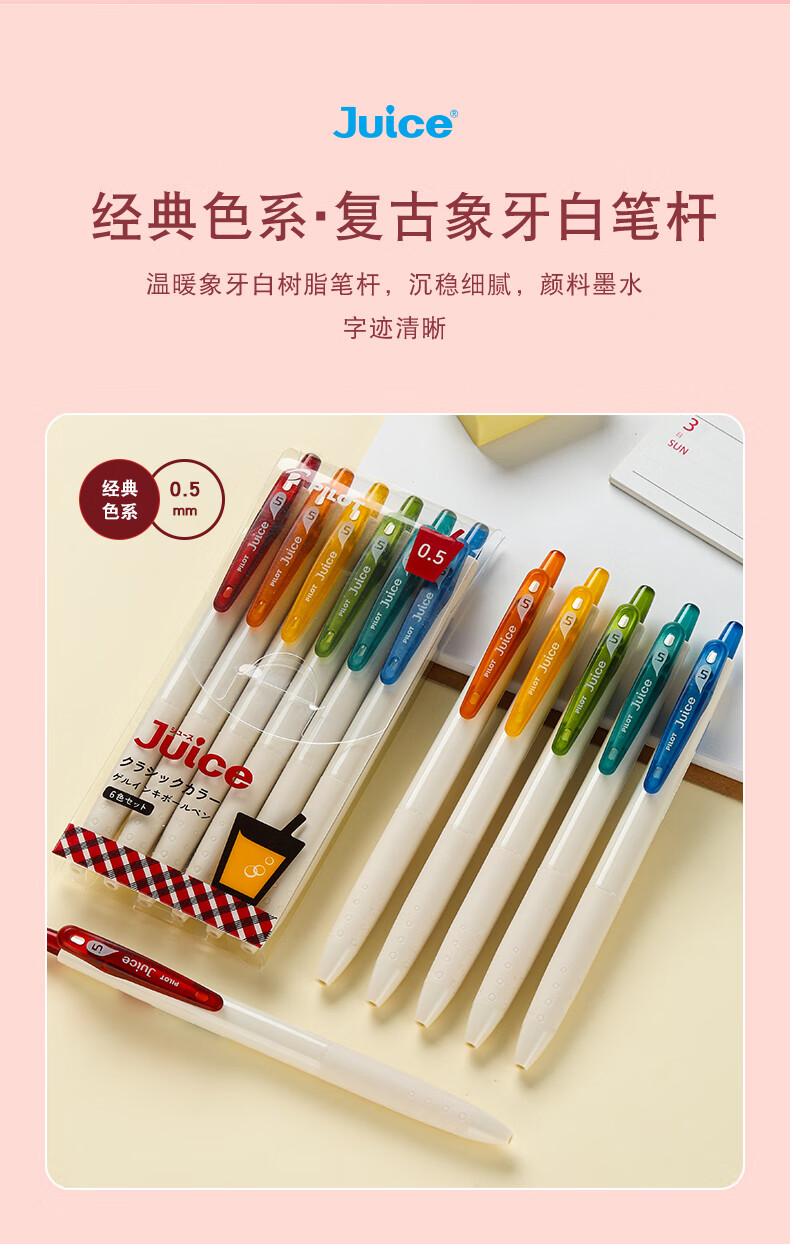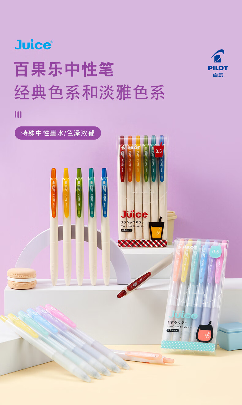 百乐(PILOT)Juice果汁笔彩色中性笔0.5签字笔按动水笔文具学生手账笔高颜值 LJU-15-6CC 经典6色装