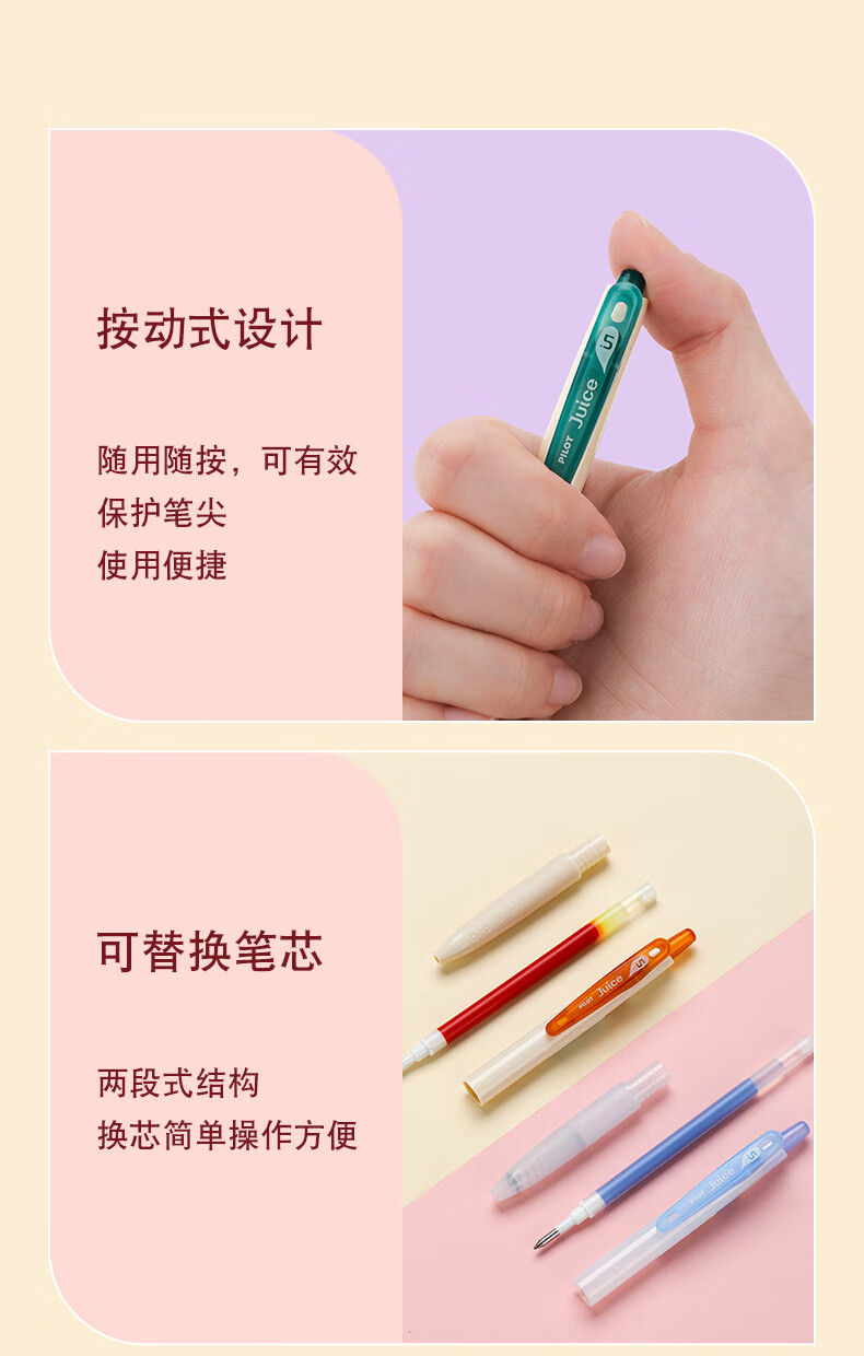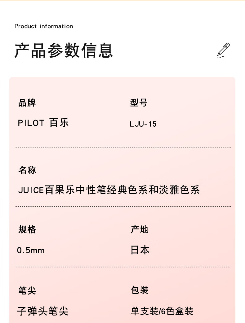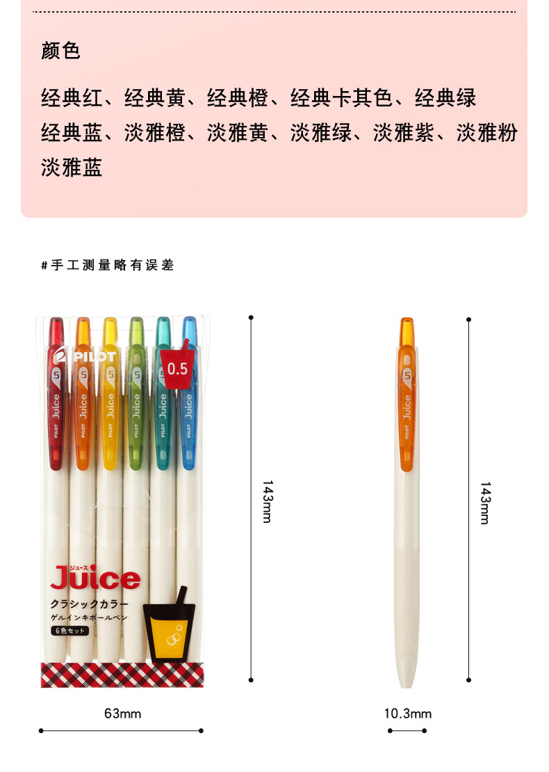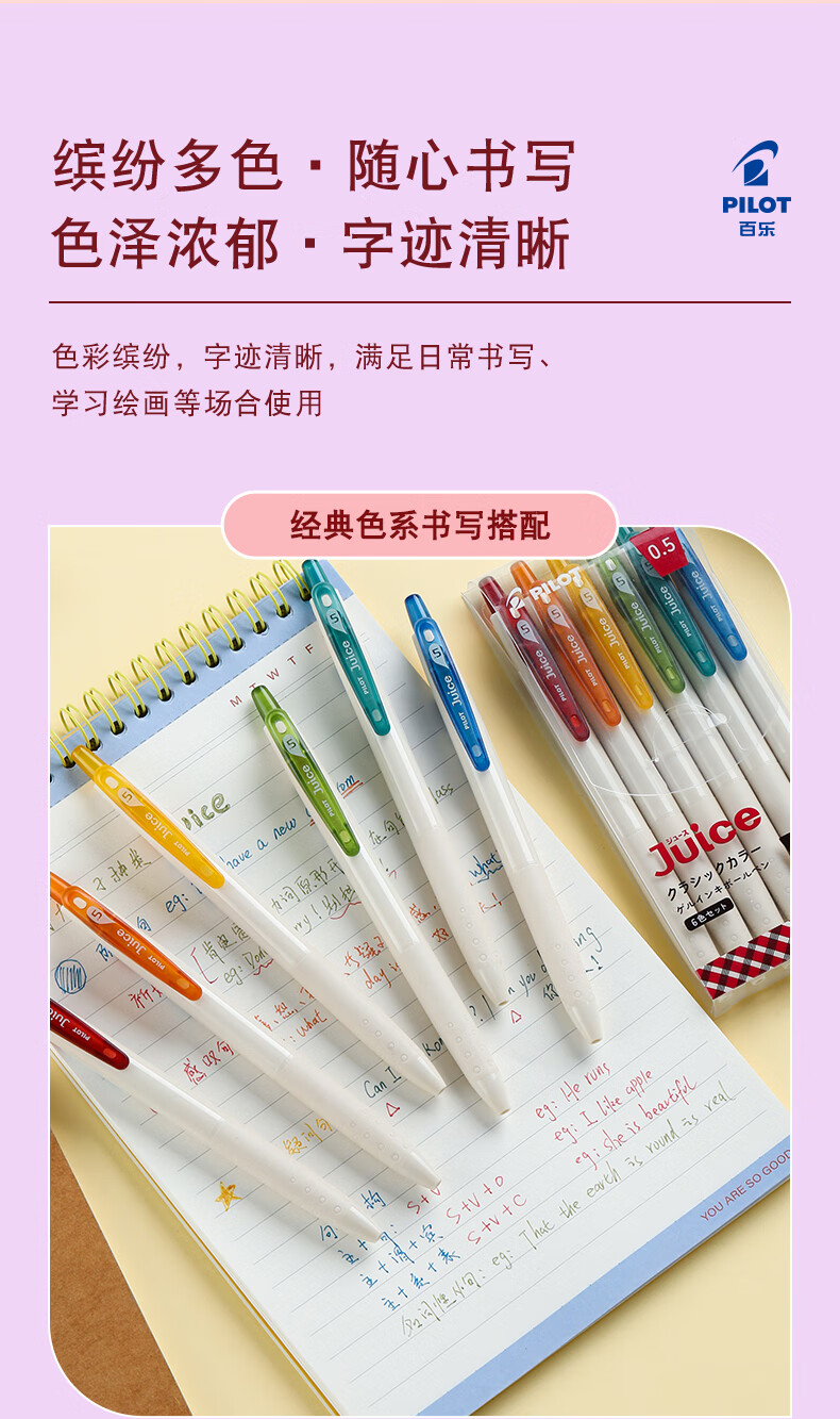 百乐(PILOT)Juice果汁笔彩色中性笔0.5签字笔按动水笔文具学生手账笔高颜值 LJU-15-6CC 经典6色装