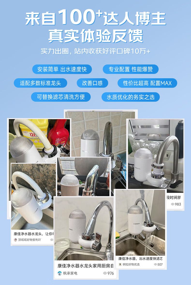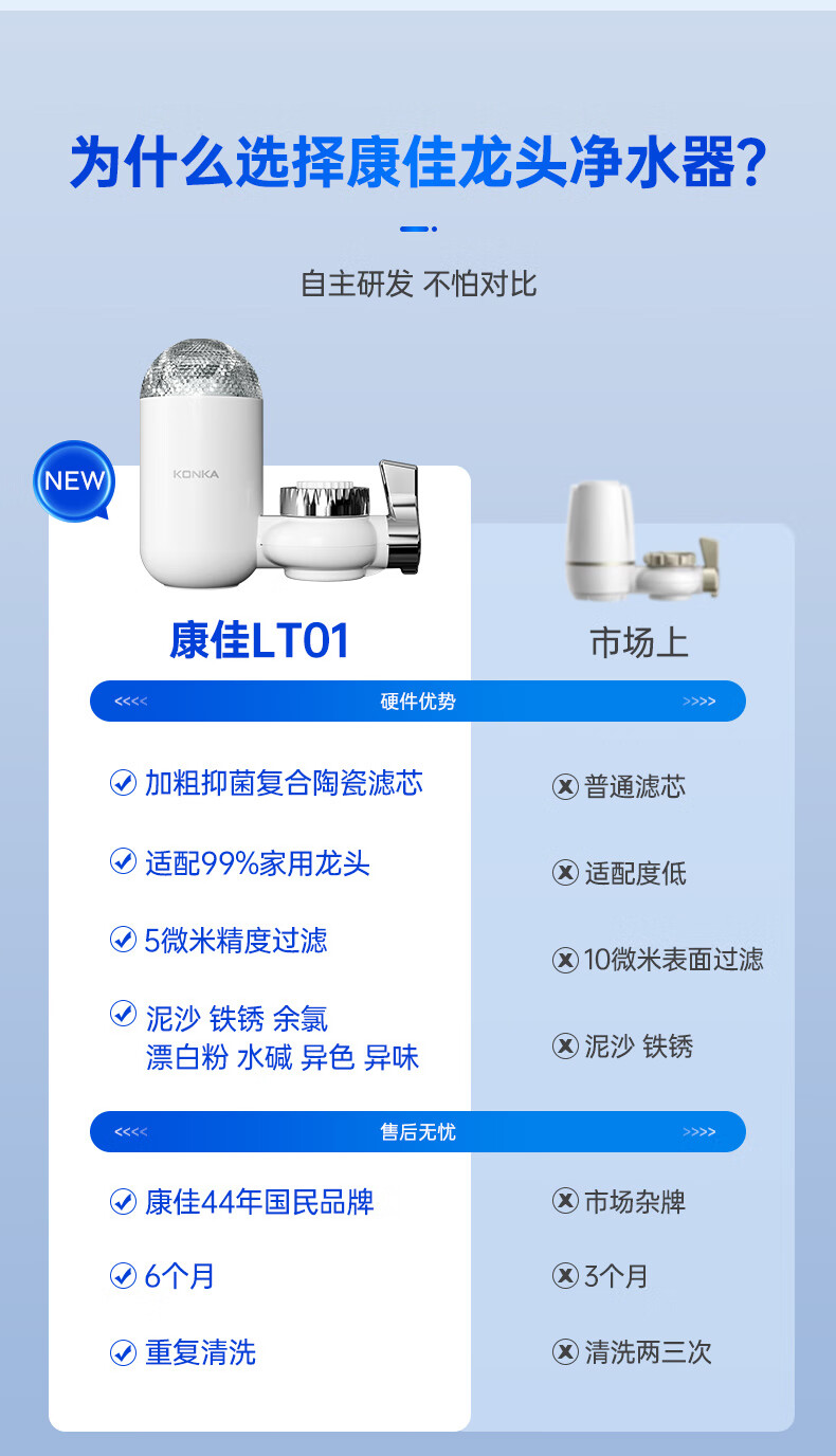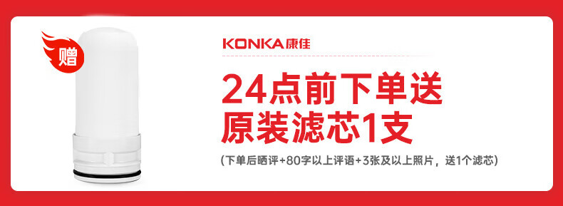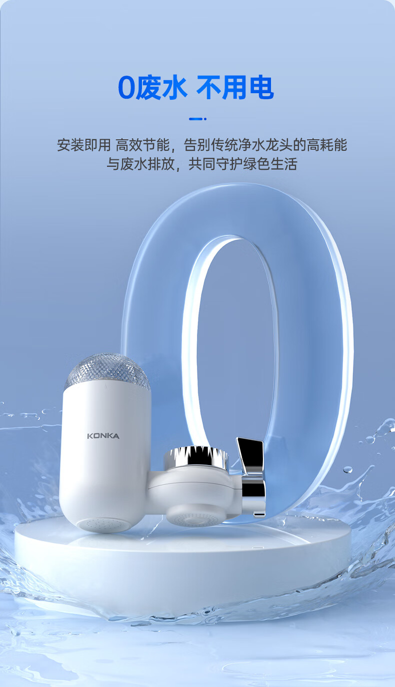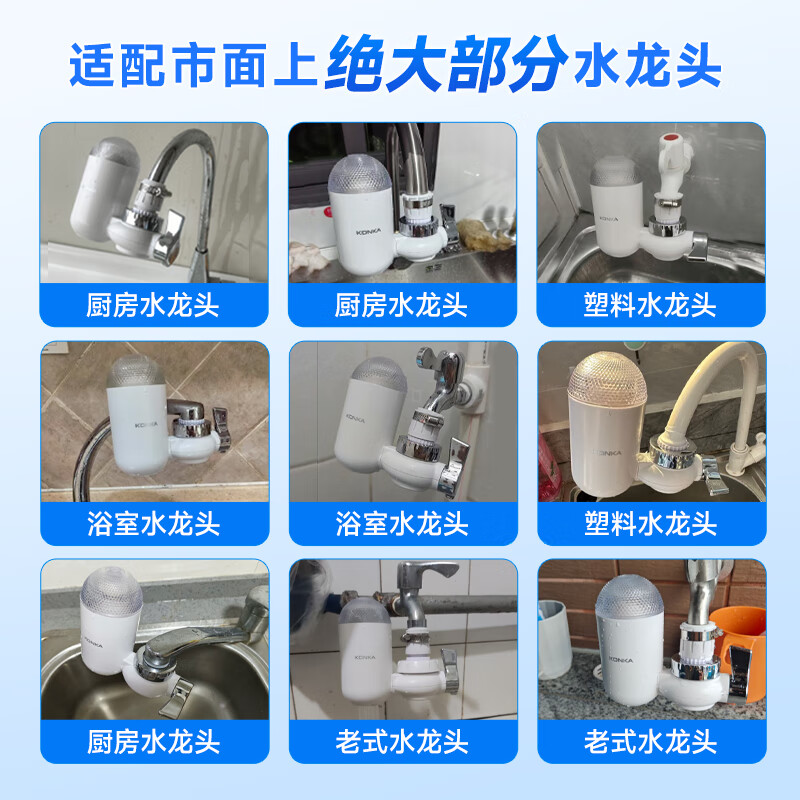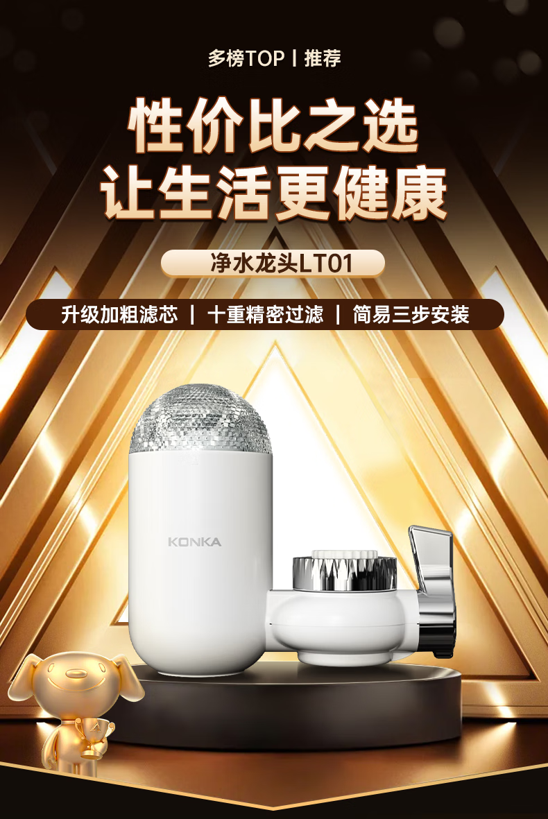 康佳(KONKA)净水器家用水龙头过滤器自来水滤水器台式净水机前置过滤厨房卫生间通用阻水垢除余氯双出水LT01 1机2芯【可清洗陶瓷滤芯】