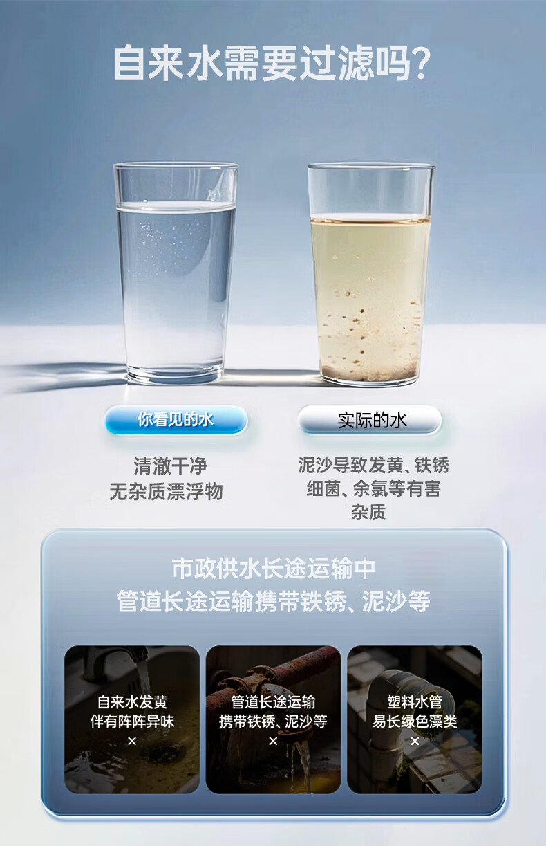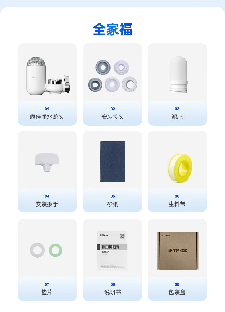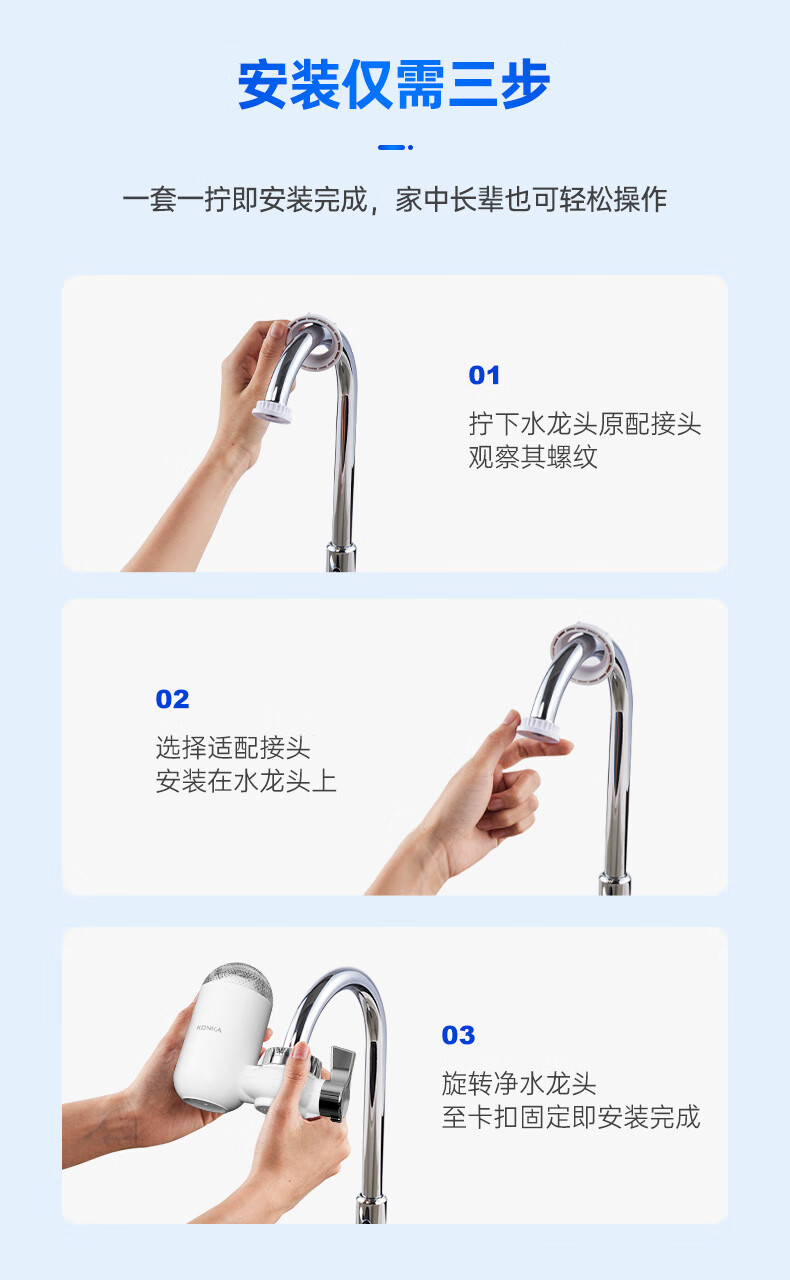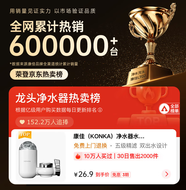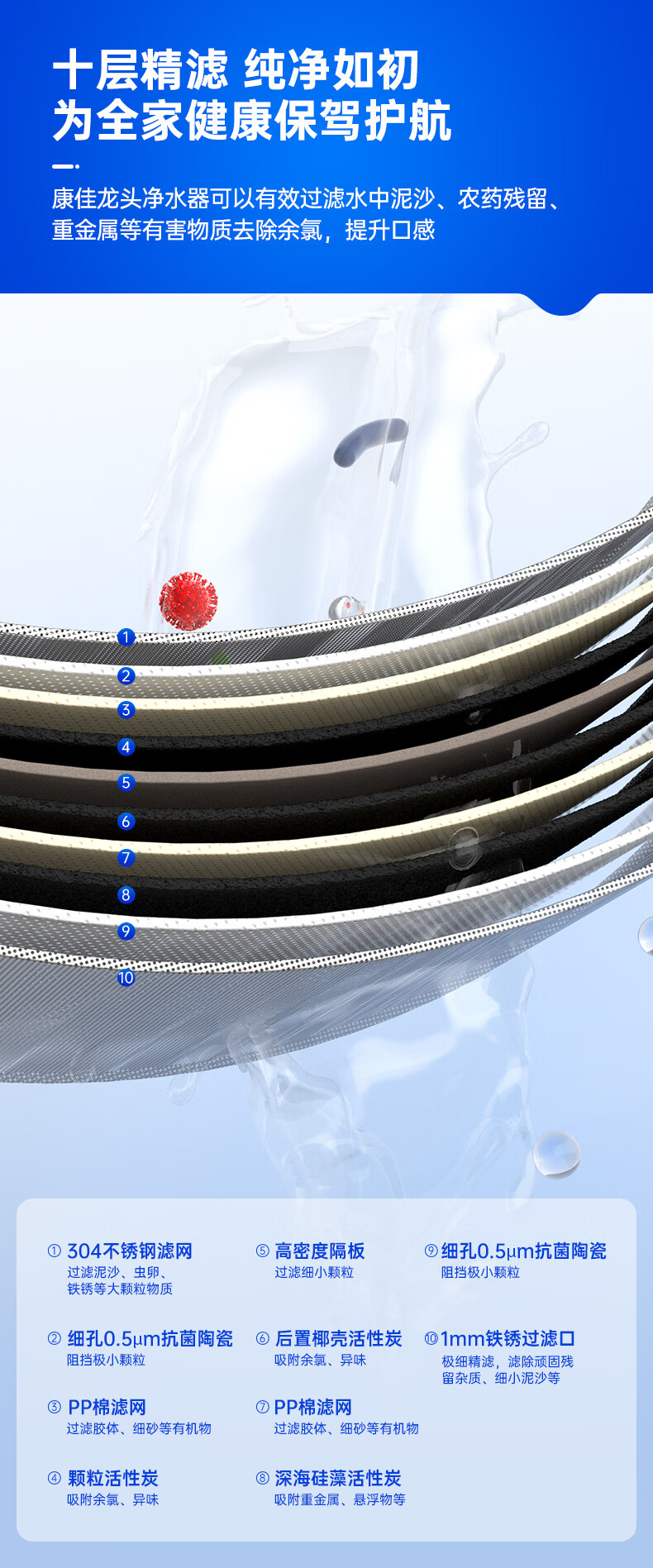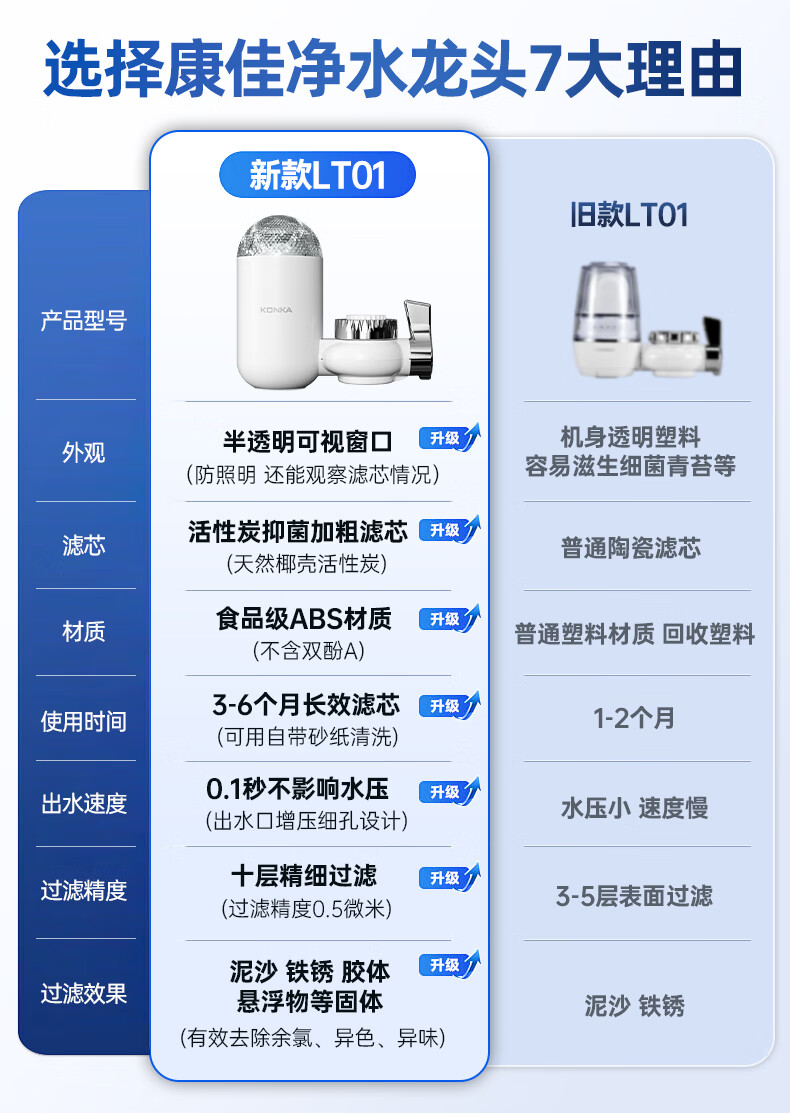 康佳(KONKA)净水器家用水龙头过滤器自来水滤水器台式净水机前置过滤厨房卫生间通用阻水垢除余氯双出水LT01 1机2芯【可清洗陶瓷滤芯】