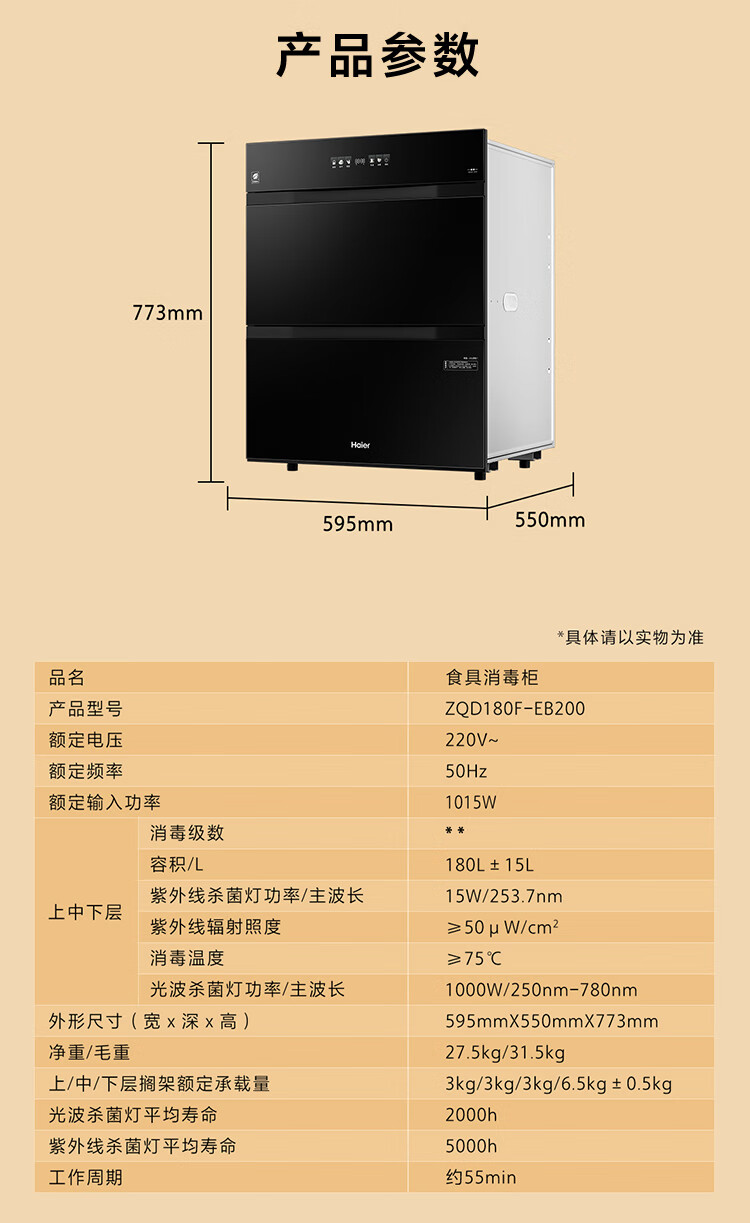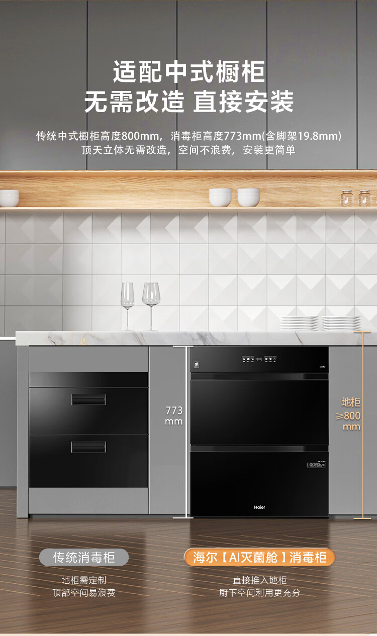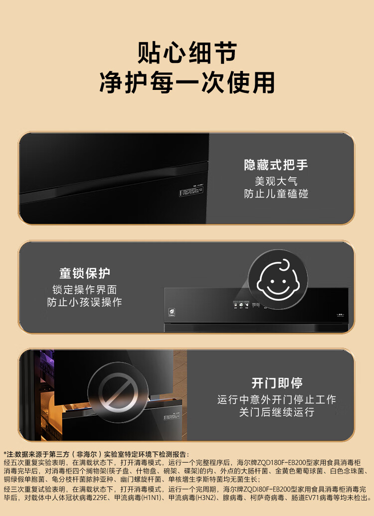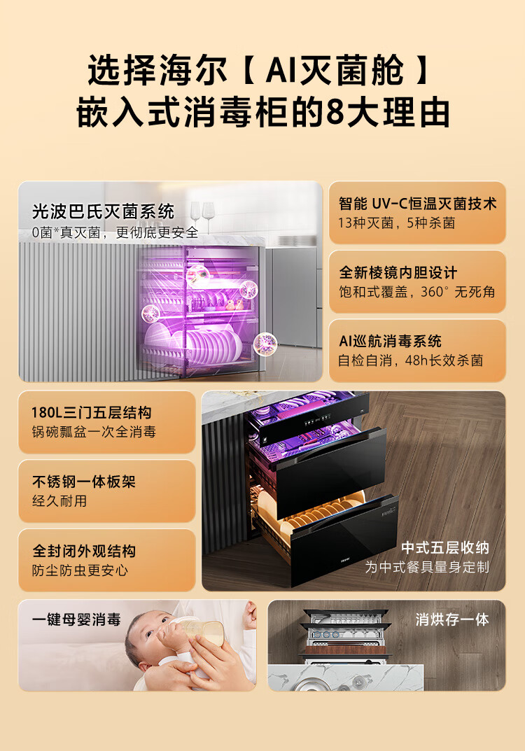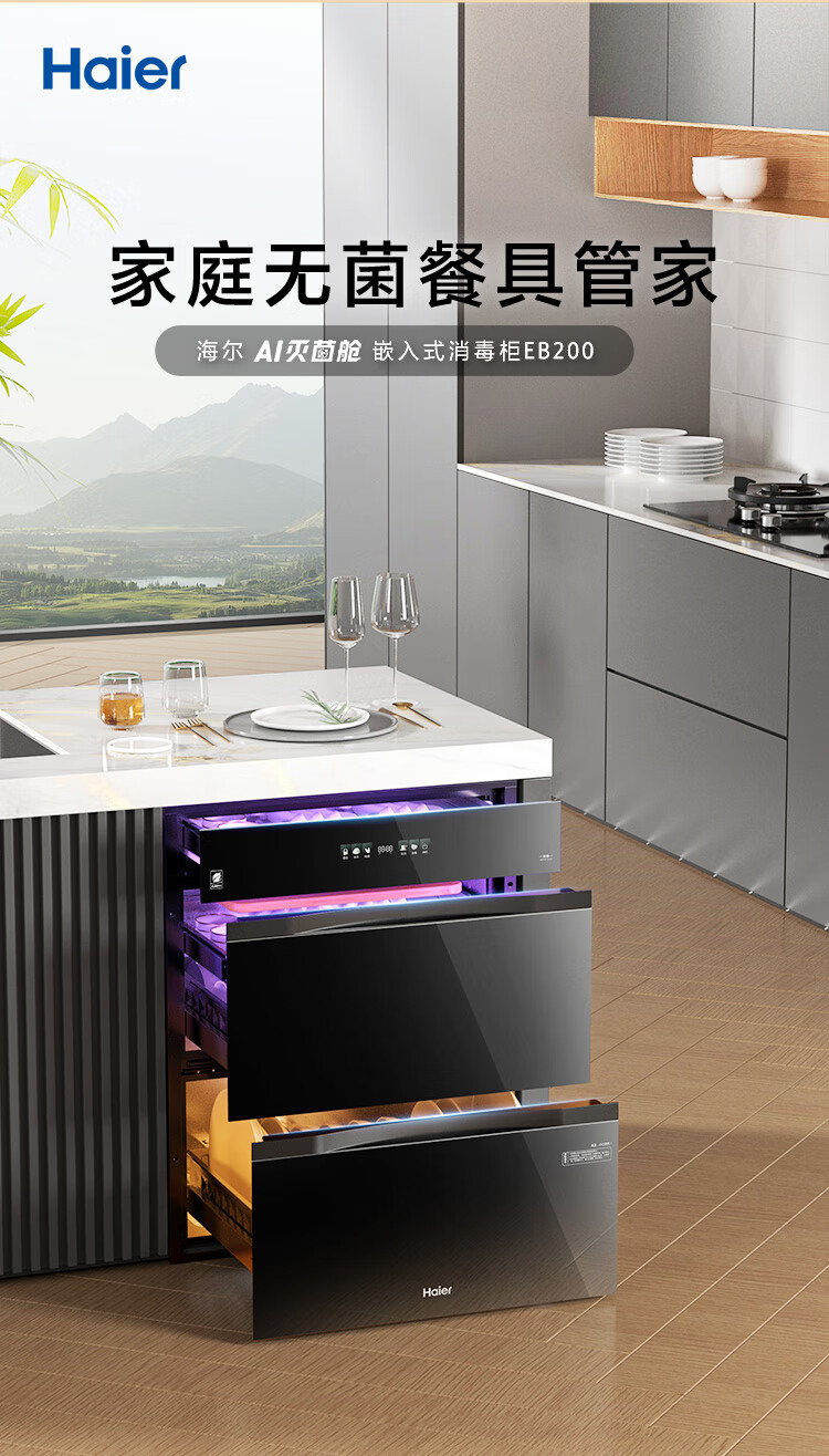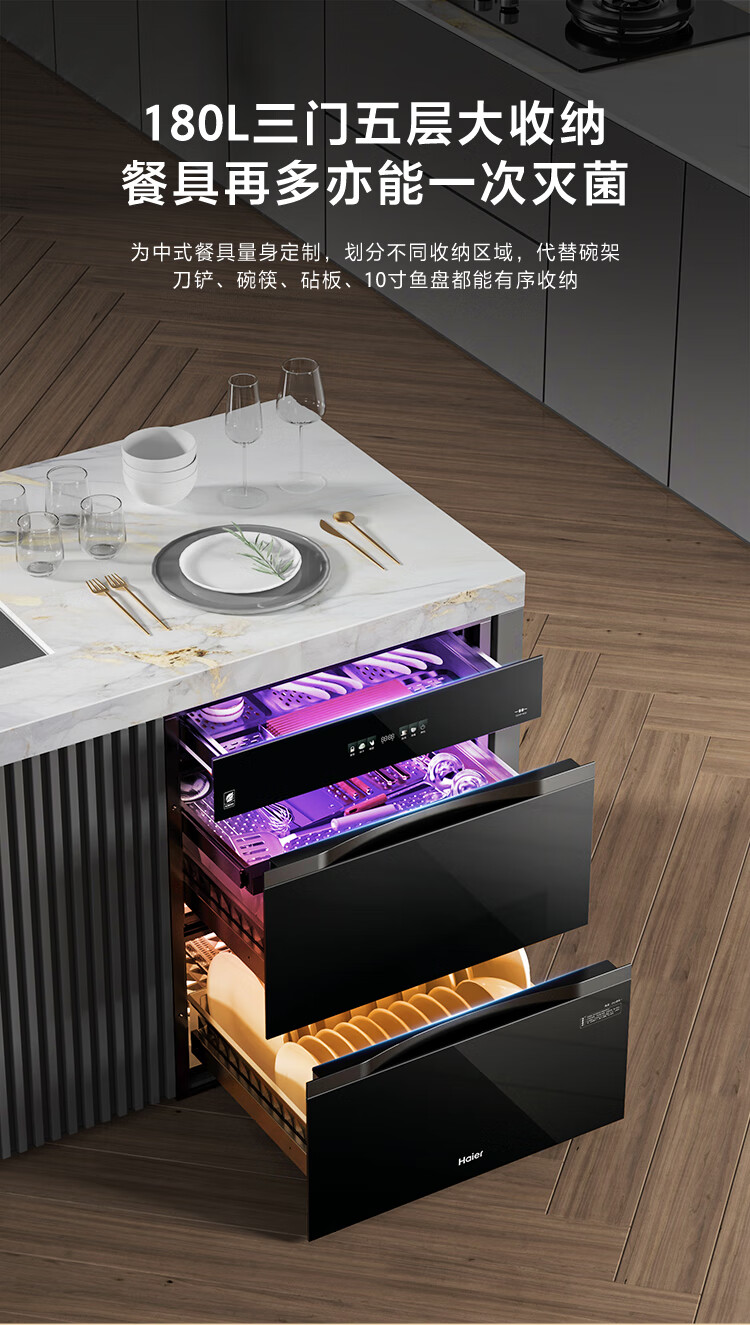 海尔(Haier)180L超大容量消毒柜嵌入式 灭菌舱系列三抽五层大容量 家用 母婴消毒柜 紫外线+光波巴氏EB200