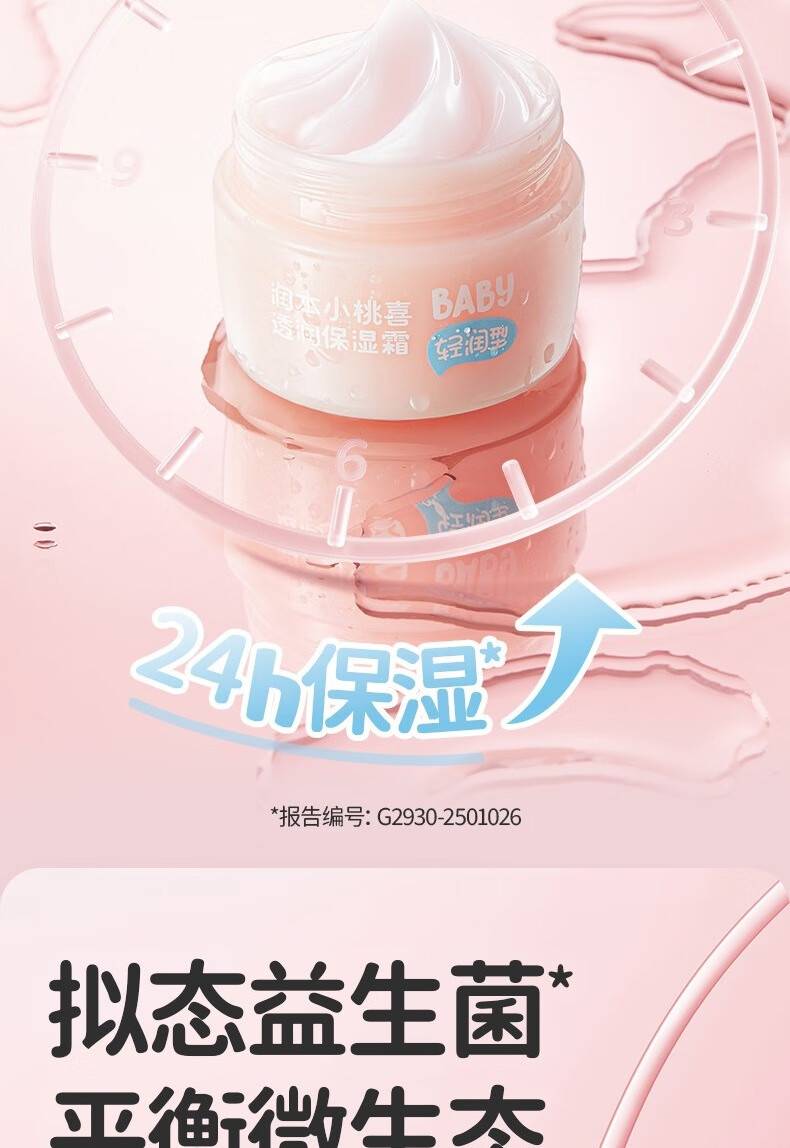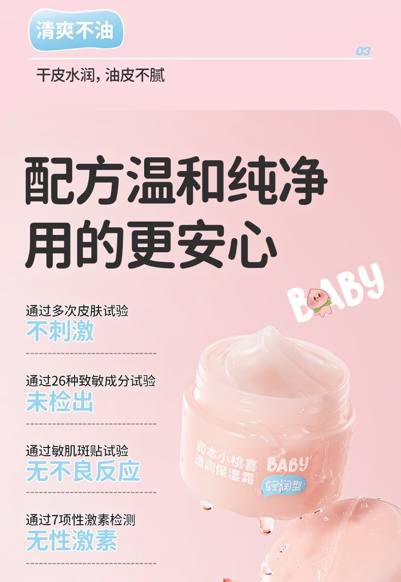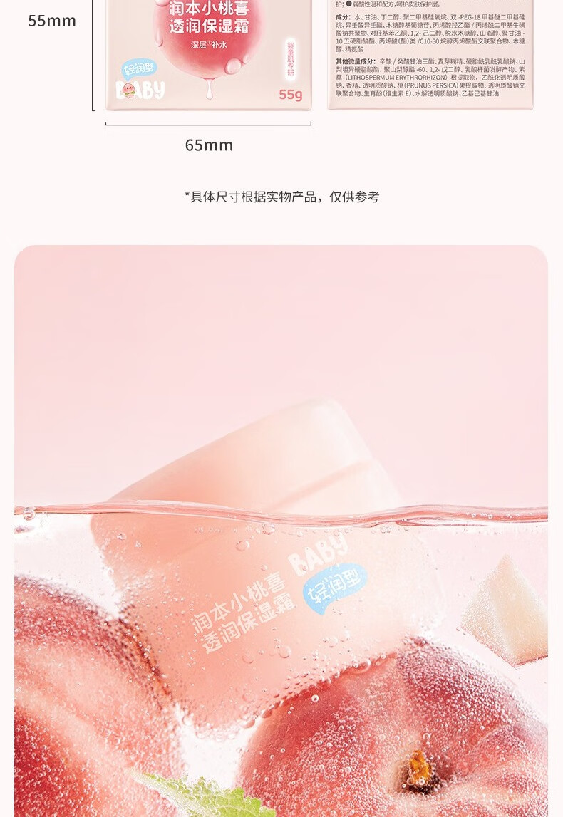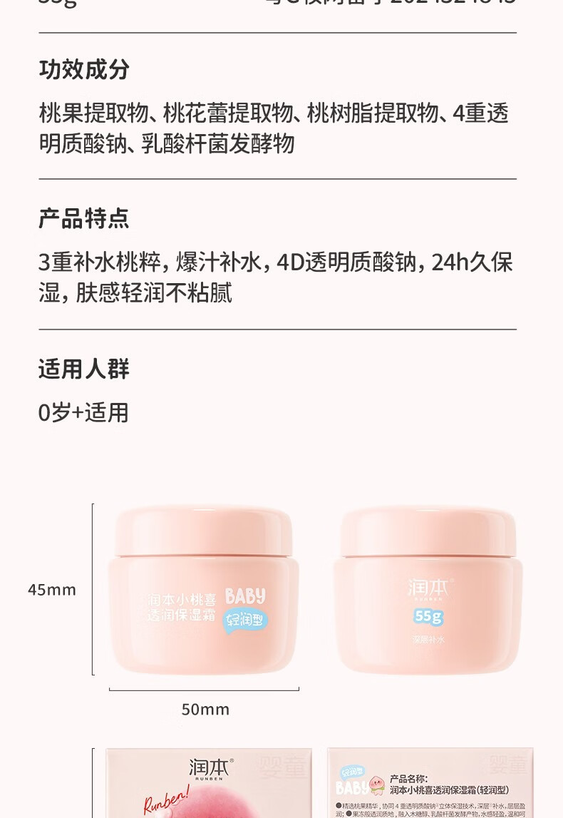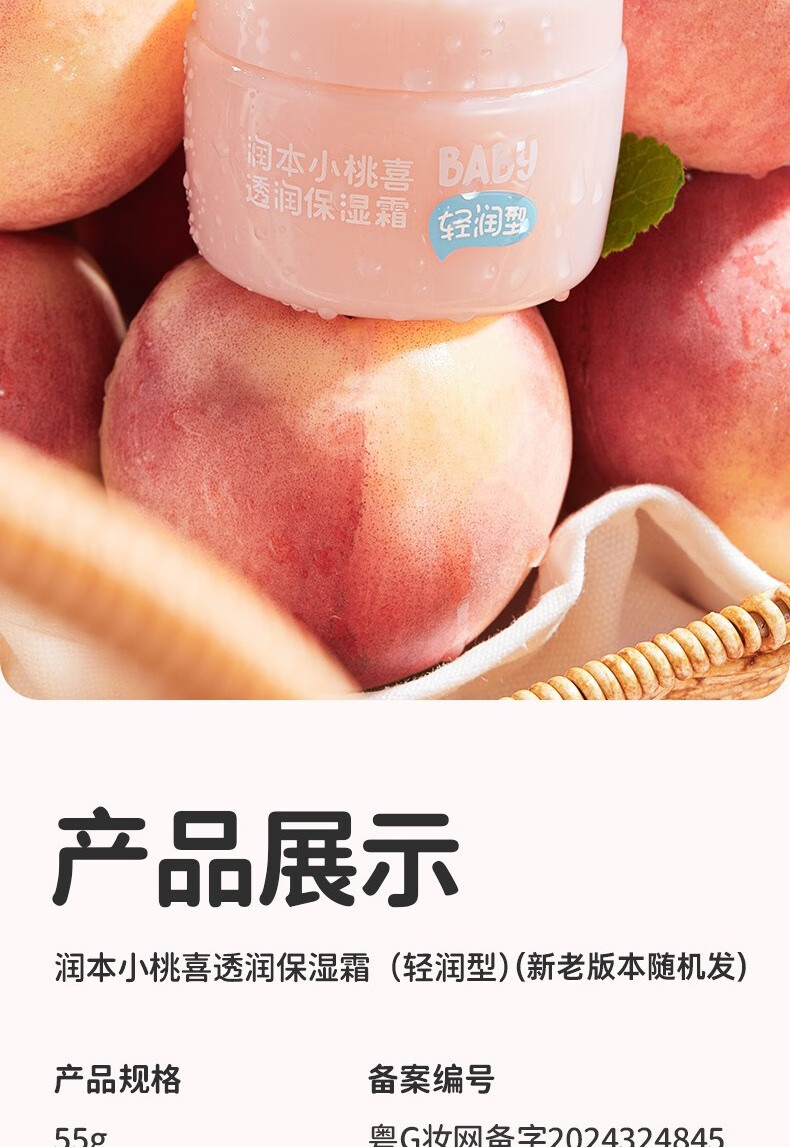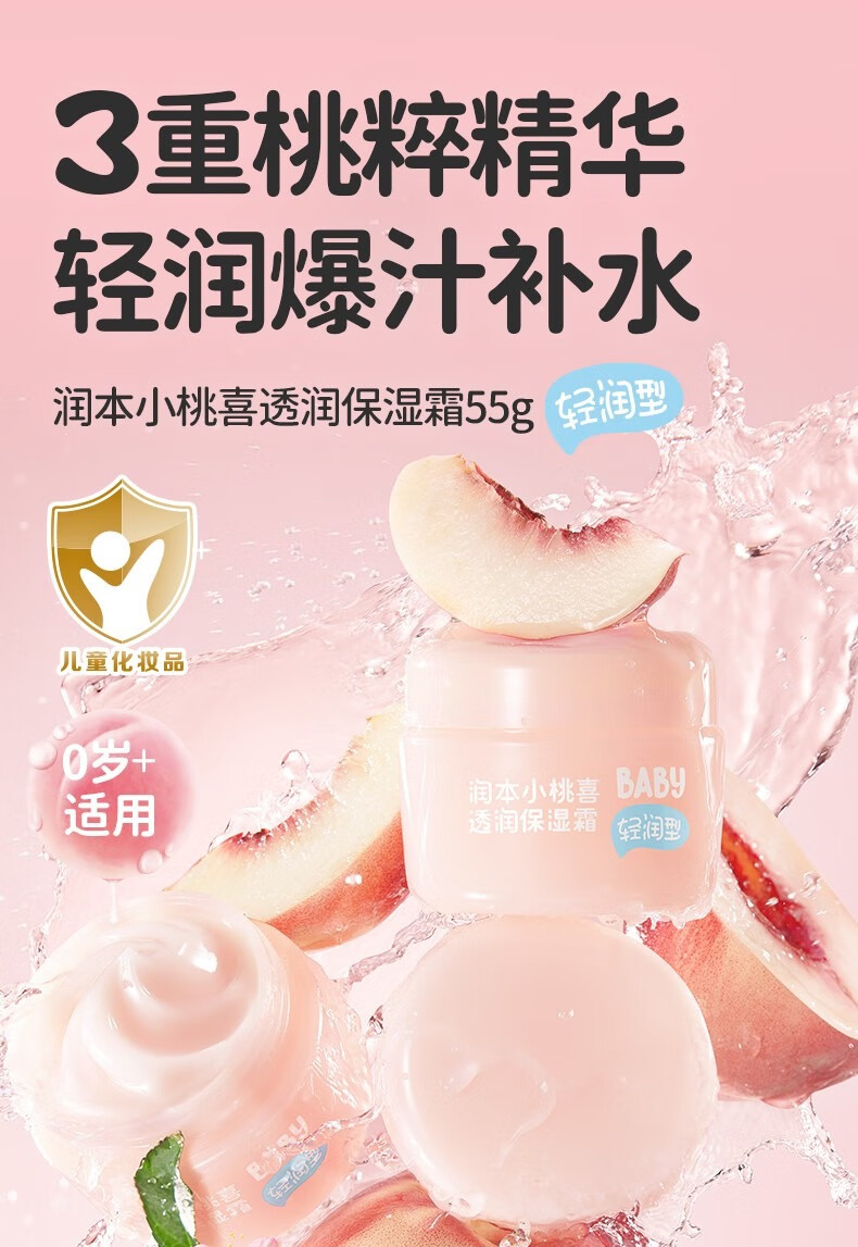 润本小桃喜透润保湿霜55g四季通用面霜保湿滋润 宝宝保湿霜润肤乳