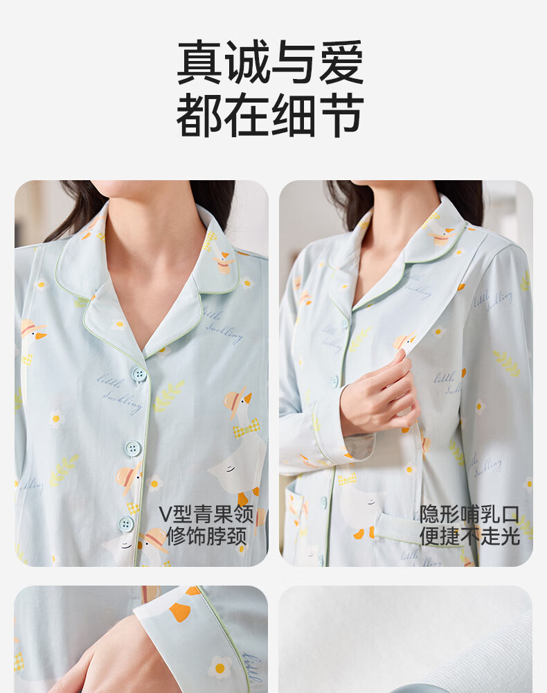 十月结晶月子服孕妇睡衣春夏产后怀孕期产妇哺乳套装 165g推荐20-32℃【茉莉兔】隐藏哺乳口 XL【建议140-160斤】