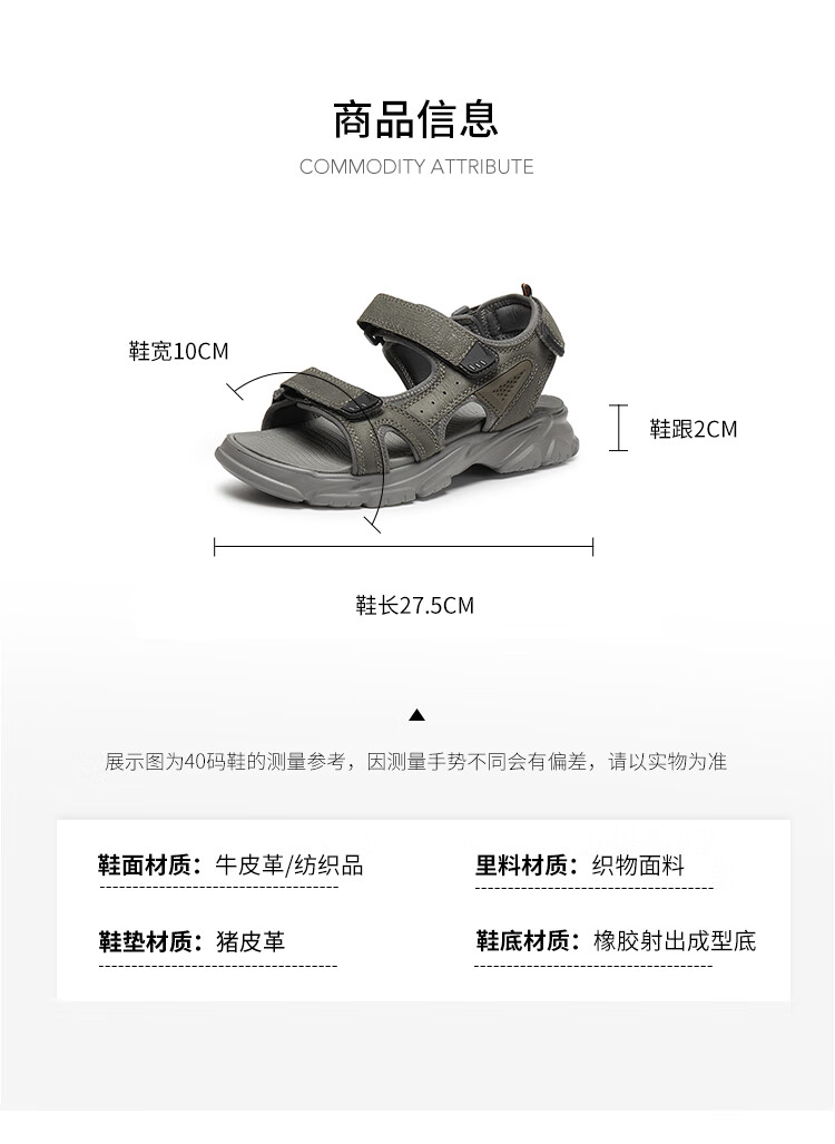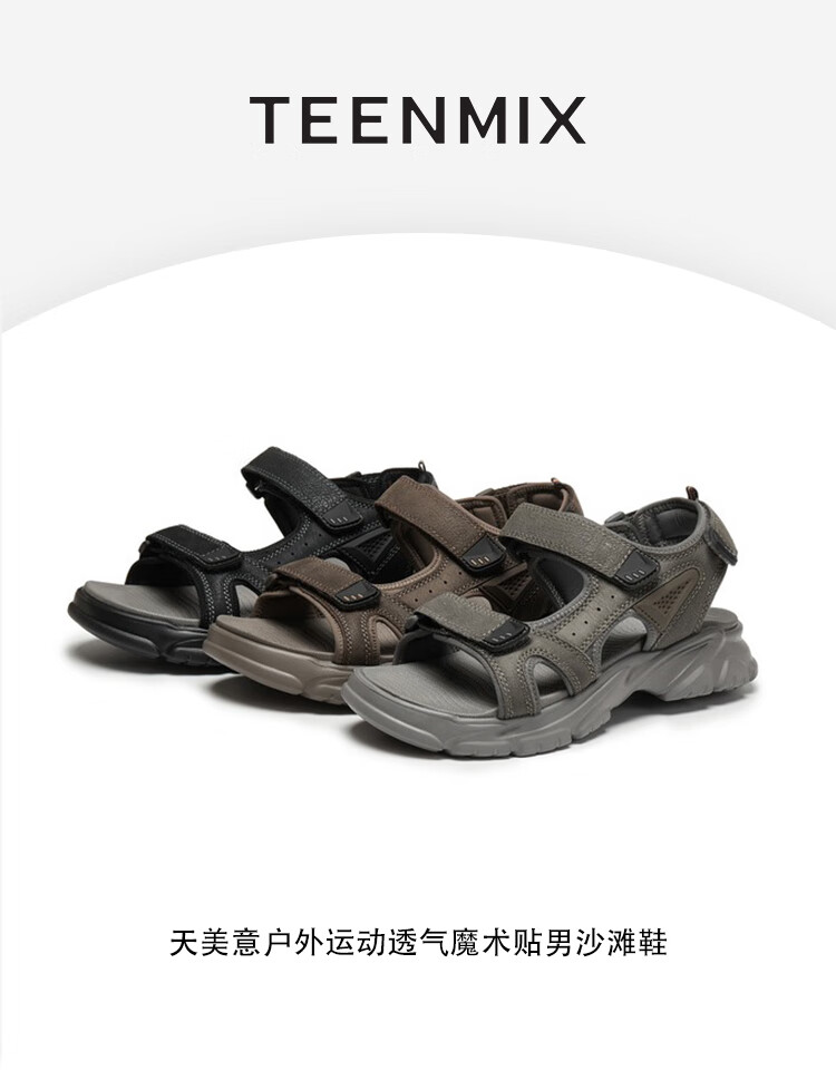 天美意男鞋商场同款户外运动透气魔术贴男沙滩鞋2025新款65Q04BL5 黑色 40