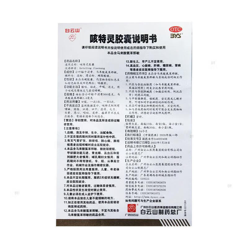 [白云山]咳特灵胶囊 0.36g:1.4mg*30粒 1盒装