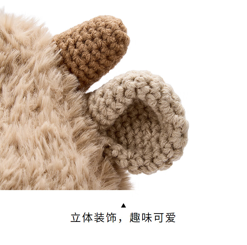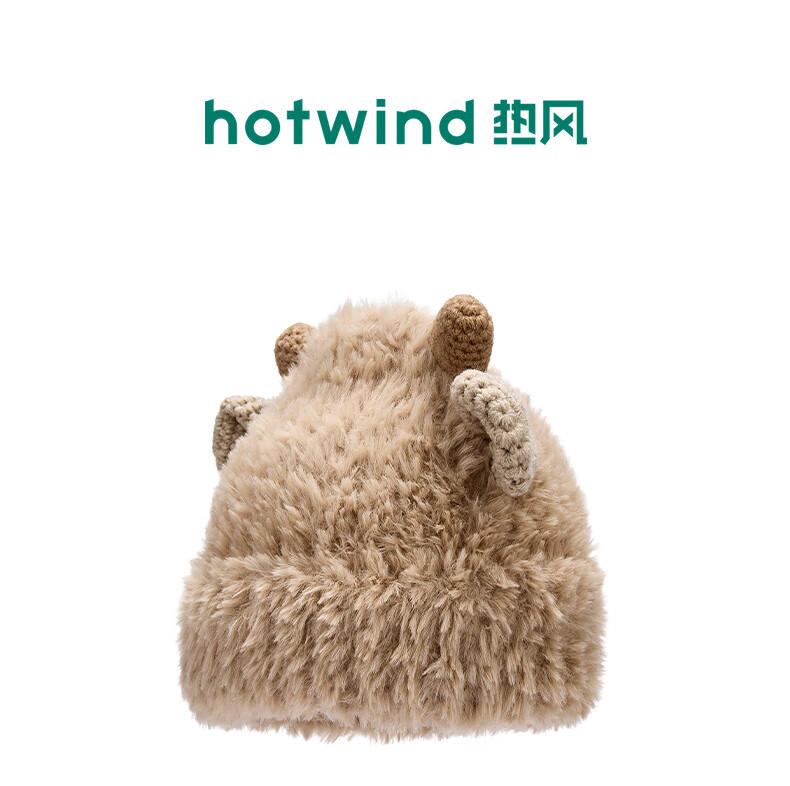 热风(Hotwind)2025年冬季新款女士绒绒小羊厚毛线帽 16浅棕 56-60cm
