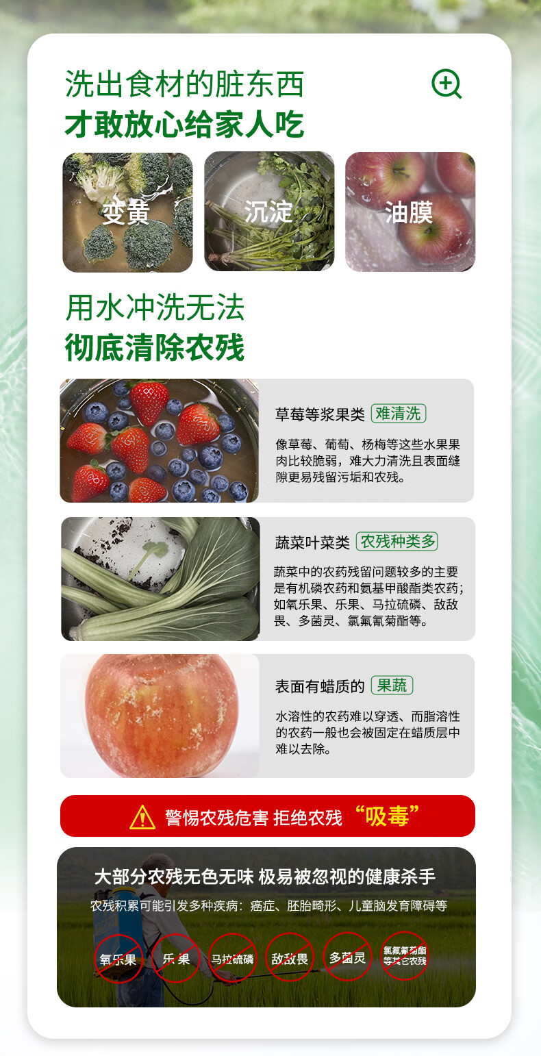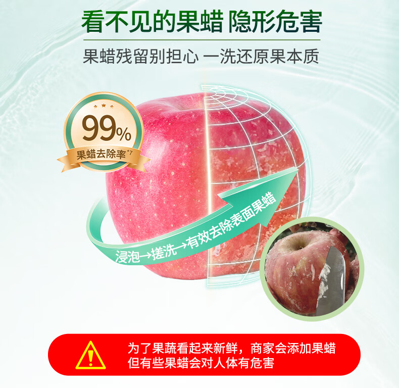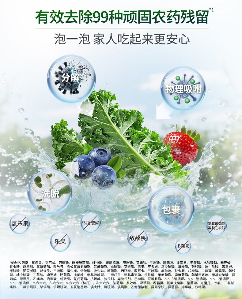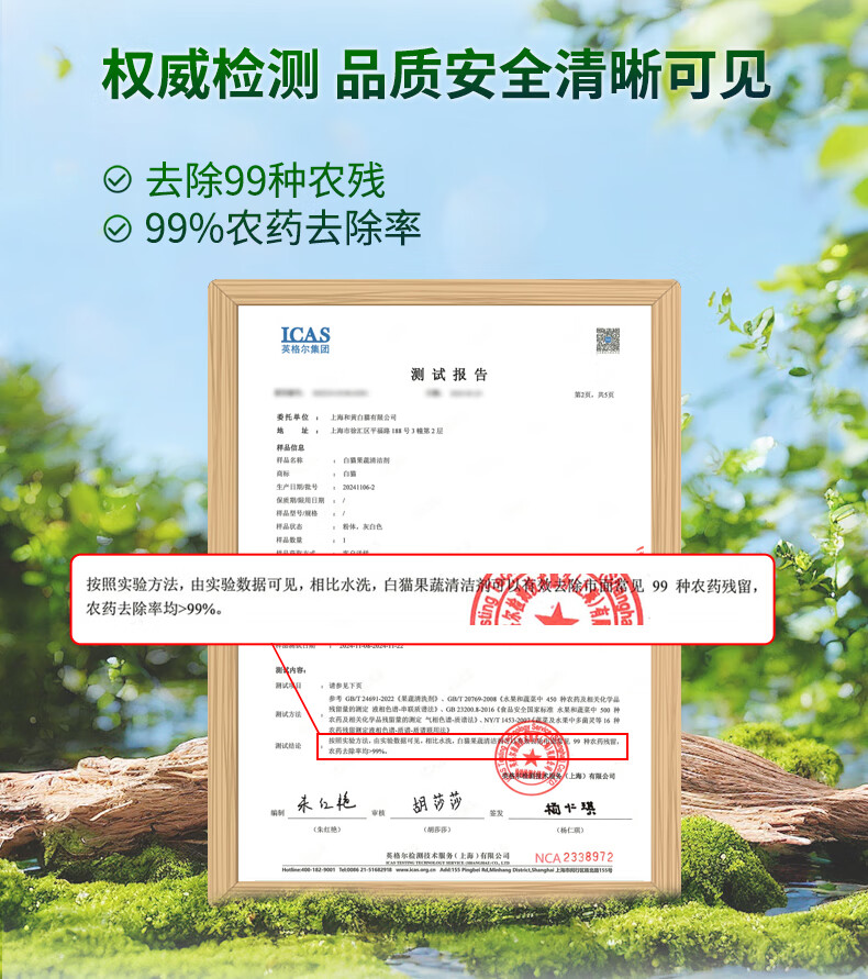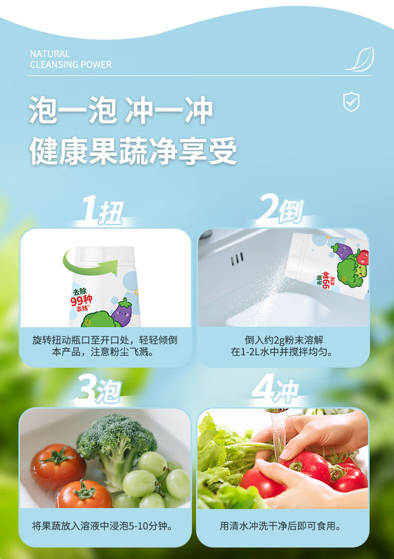白猫果蔬清洁剂除菌A类标准无毒*食品用洗水果去农残果蜡除菌孕婴可用 3瓶-660g