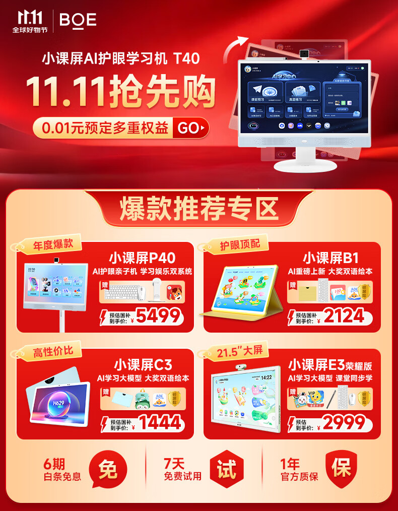 BOE京东方小课屏B1学习机【重磅引入deepseek】护眼儿童网课AI幼小学初中高平板12.7''6+256G