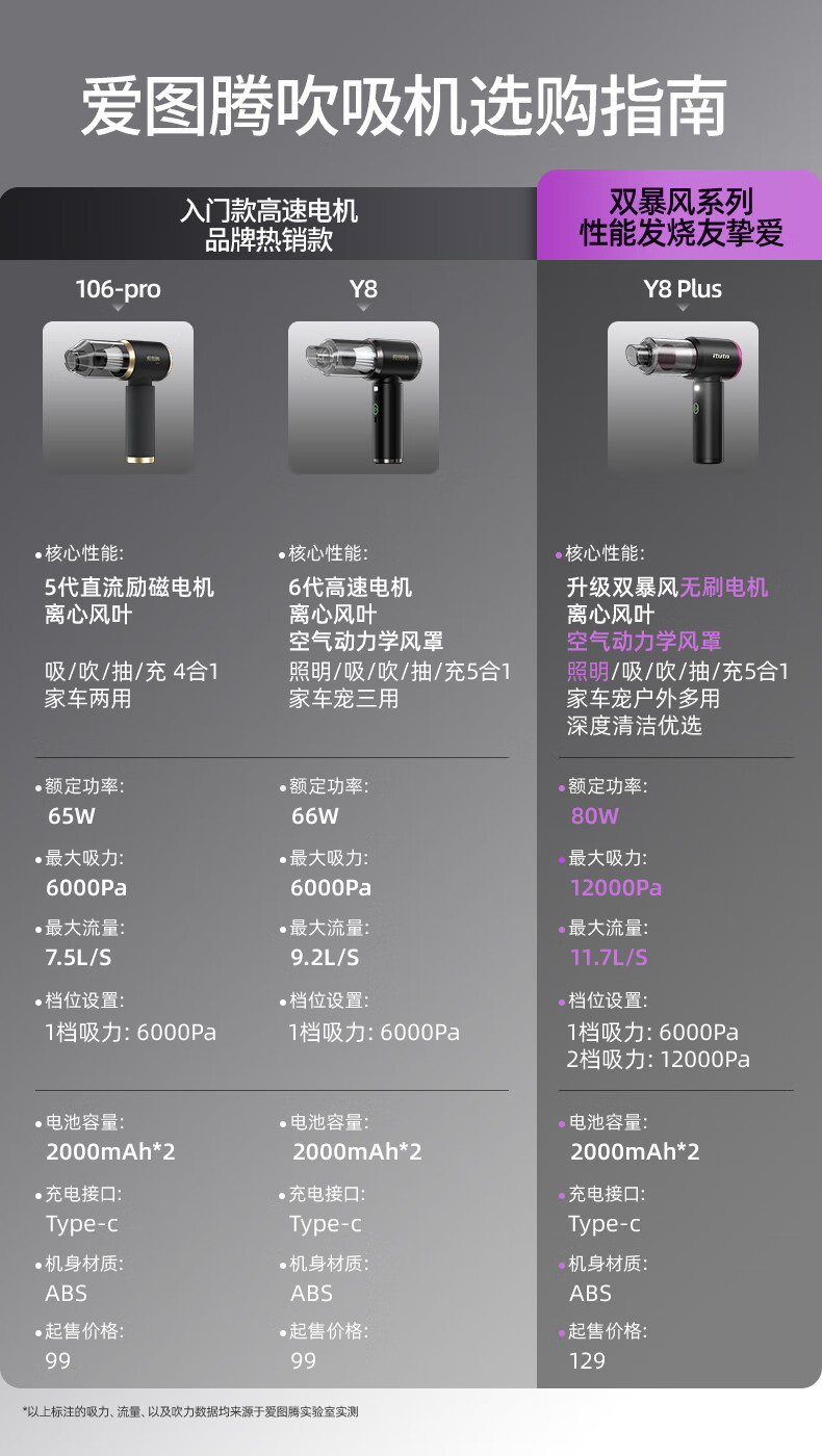爱图腾itutn车载吸尘器无线汽车用手持吸尘器大吸力家用小型便携式车内强力吹吸一体机车上缝隙窗户除尘
