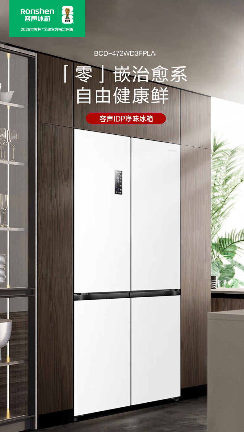 容声472升零嵌入式十字双开四开门IDP主动除菌净味底部散热一级双变频风冷无霜白色冰箱国家补贴20% BCD-472WD3FPLA极地白
