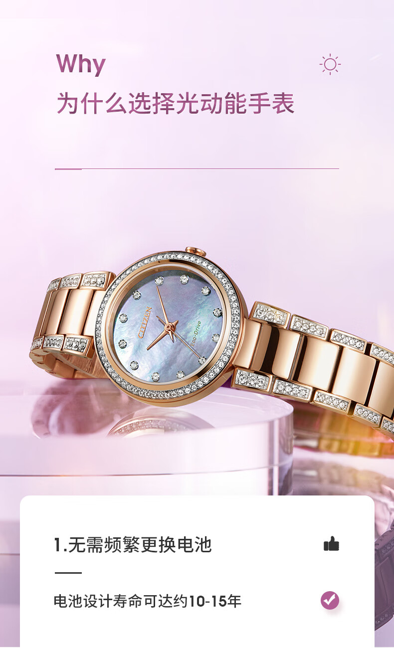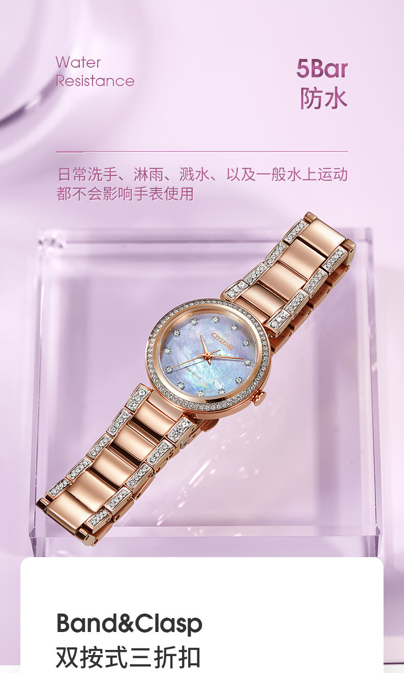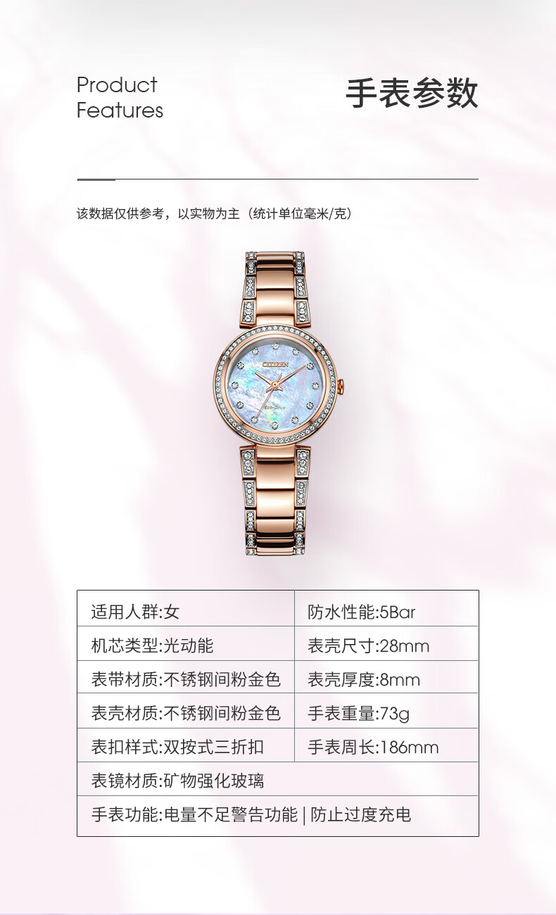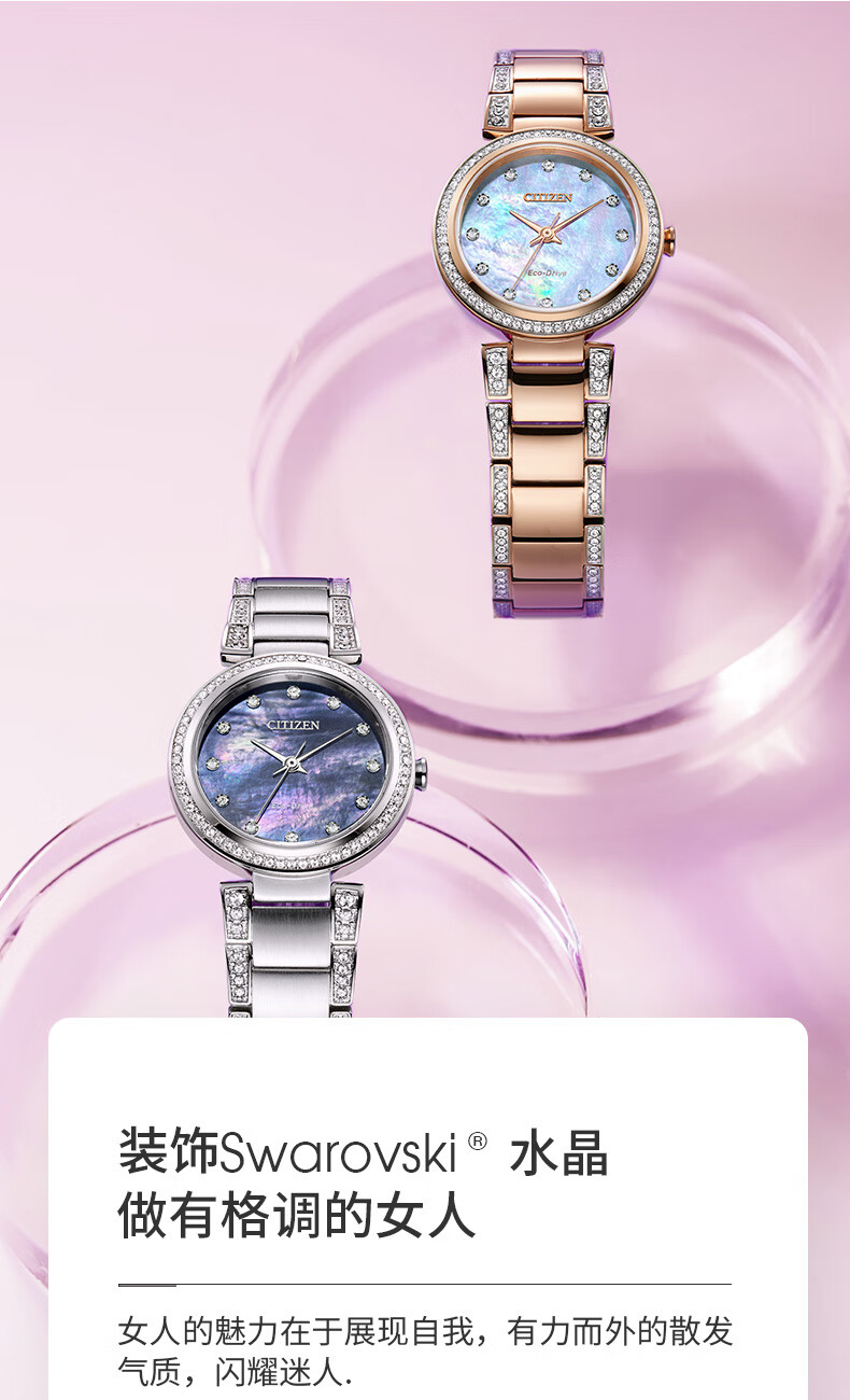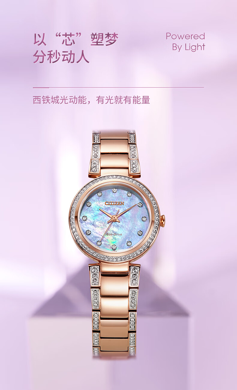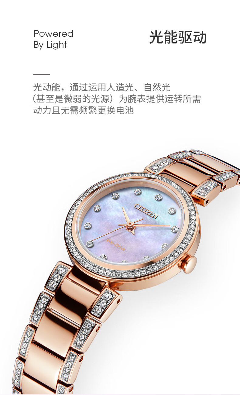 西铁城(CITIZEN)手表女士日韩表光动能腕间闪耀送礼物女友EM0843-51D