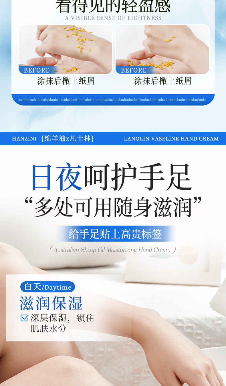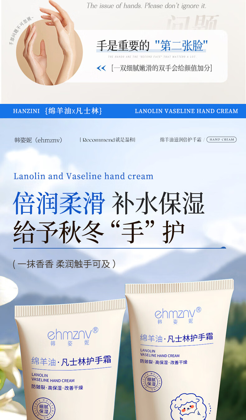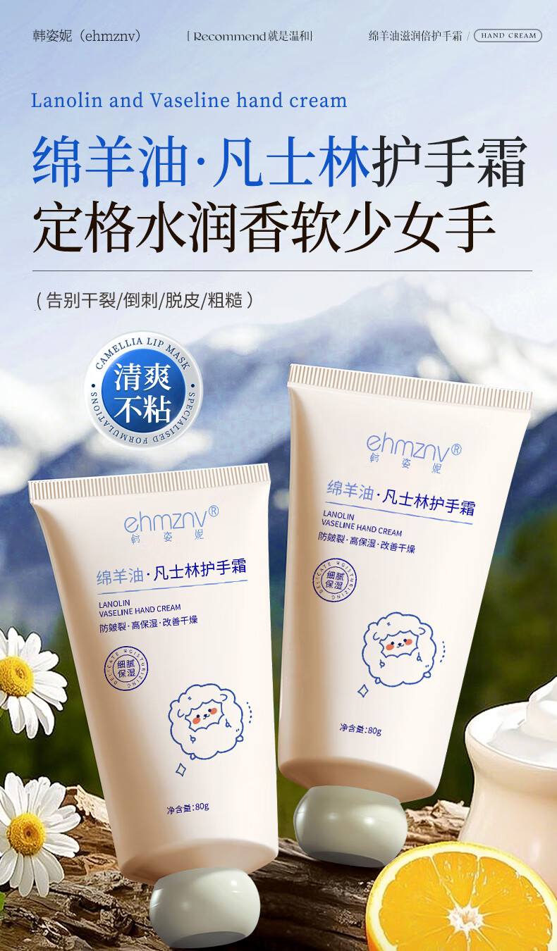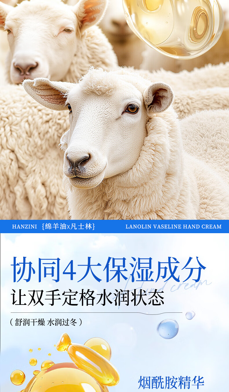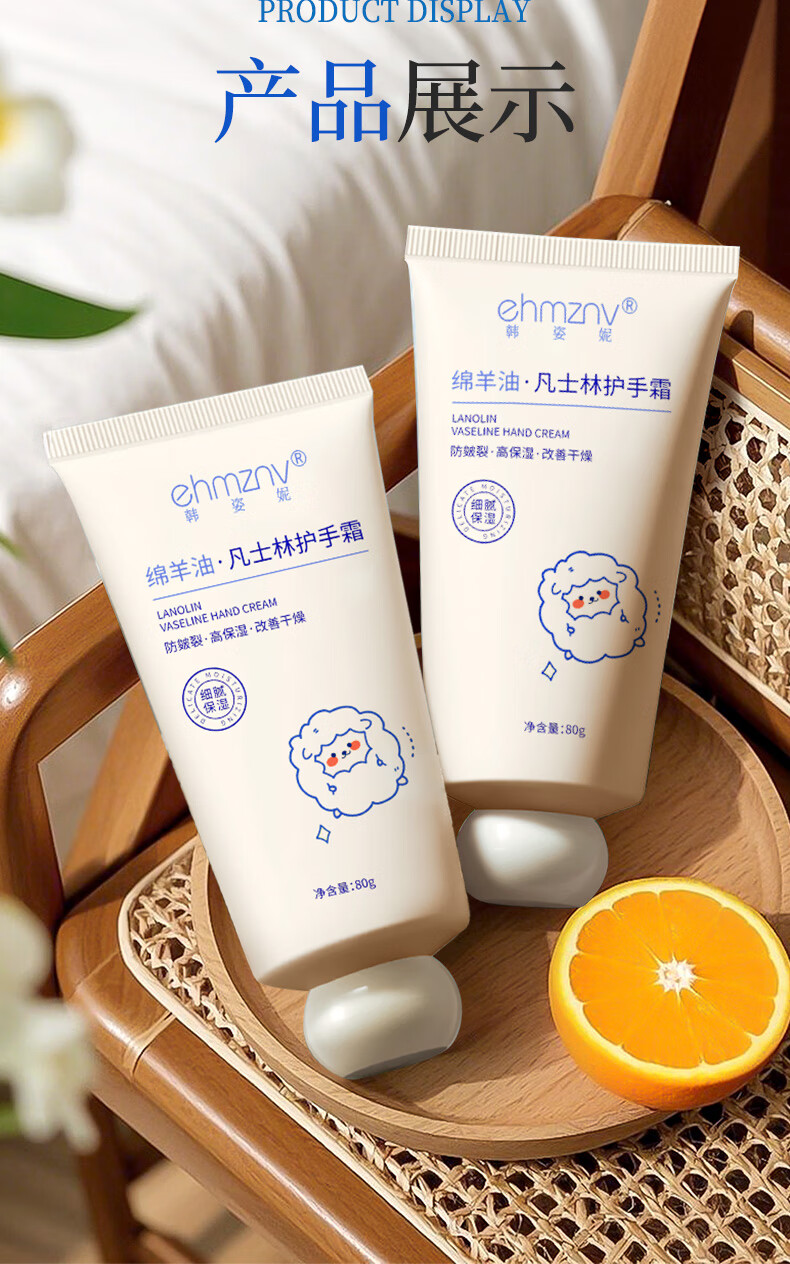 ehmznv绵羊油凡士林护手霜女高保湿补水手足防干裂秋冬滋润留香手膜霜 绵羊油凡士林护手霜x3支'