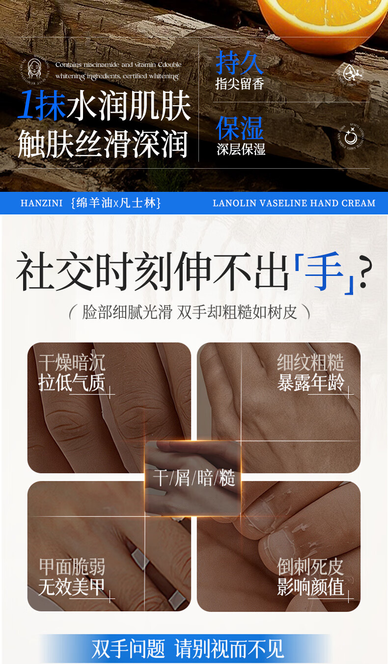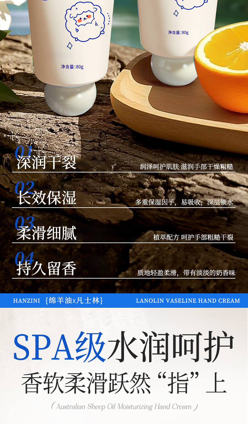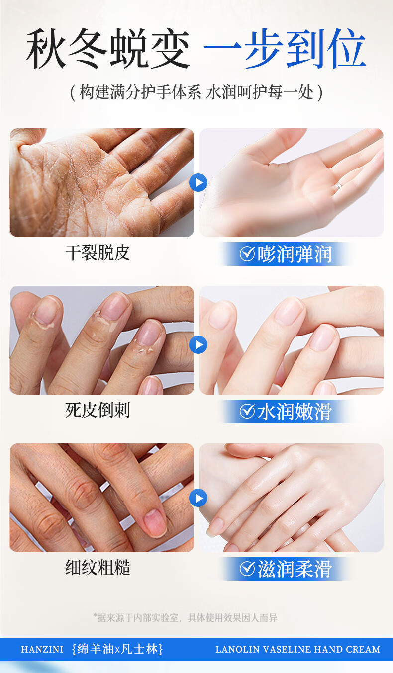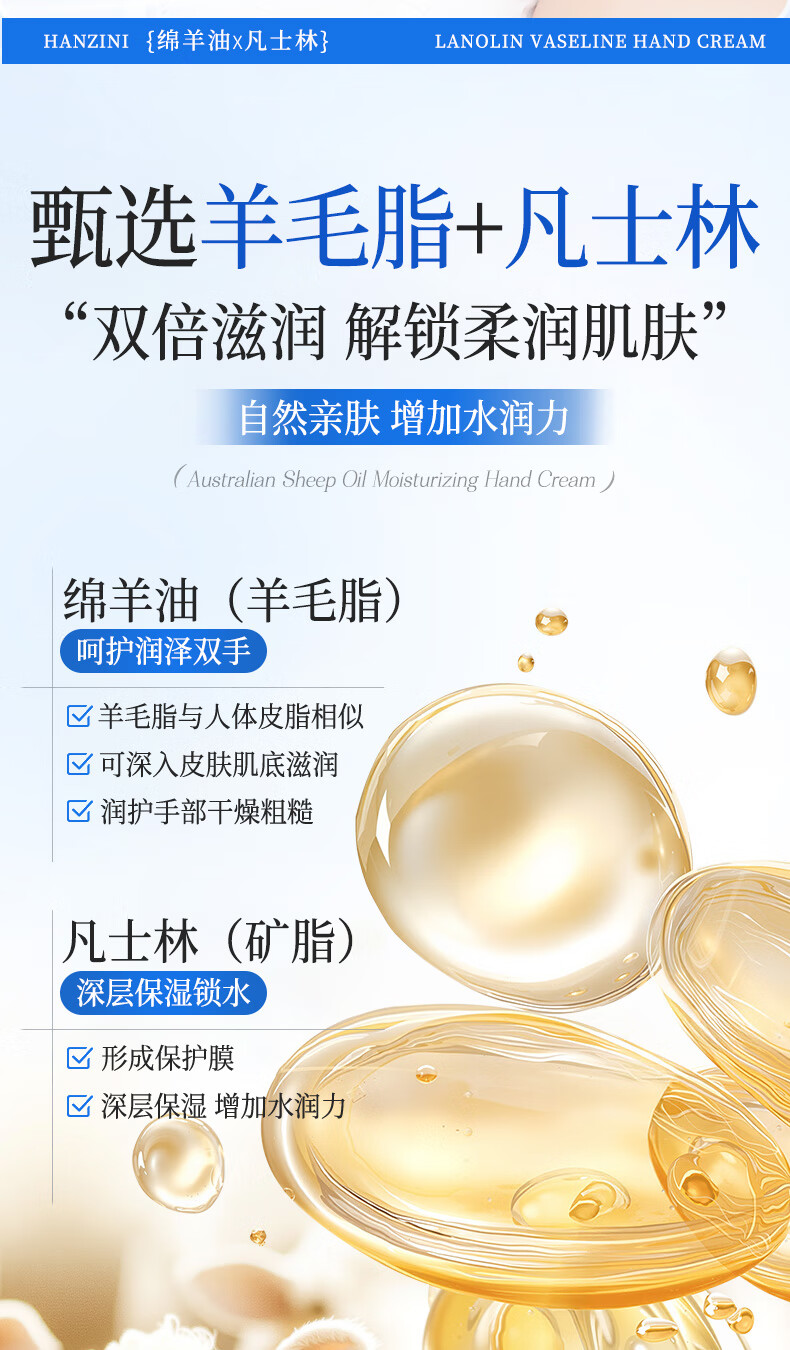 ehmznv绵羊油凡士林护手霜女高保湿补水手足防干裂秋冬滋润留香手膜霜 绵羊油凡士林护手霜x3支'