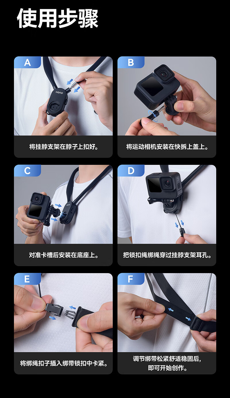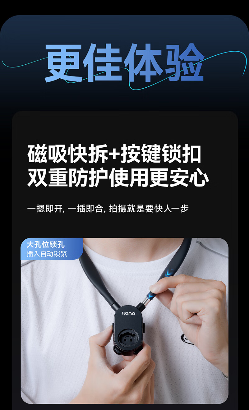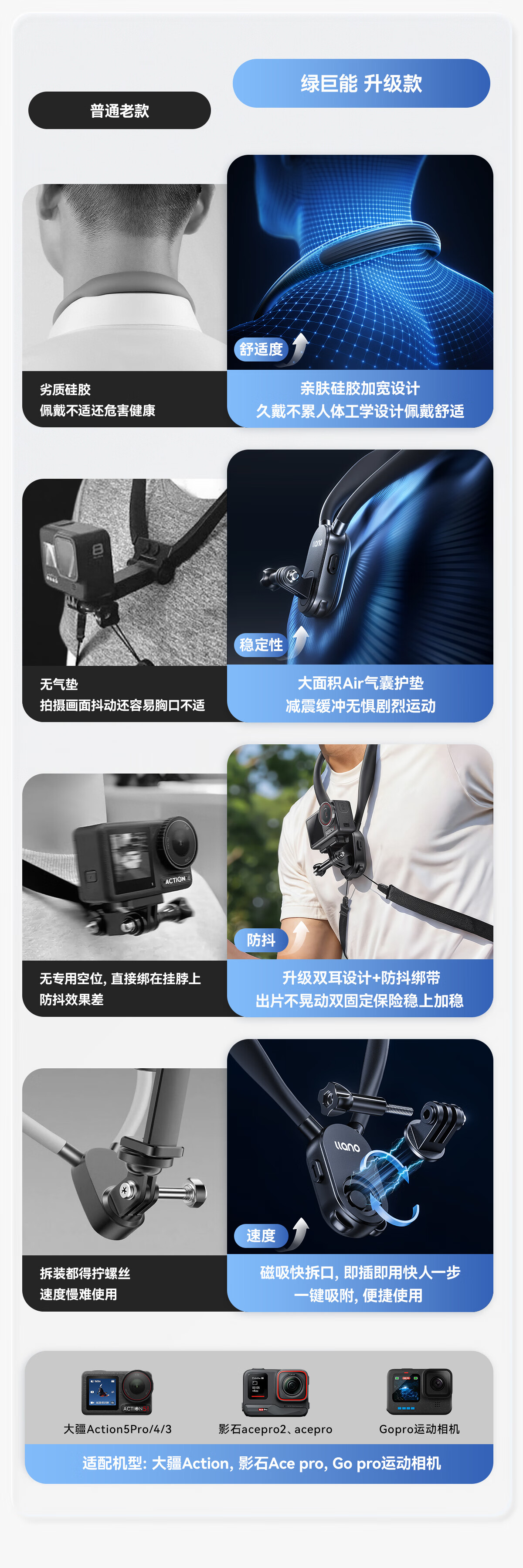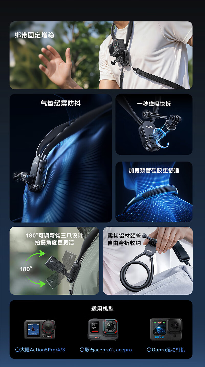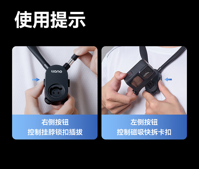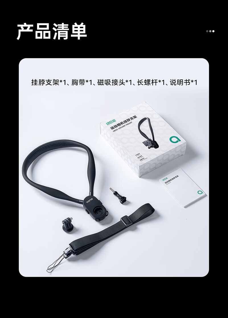 绿巨能(llano)适用大疆Action5pro/4运动相机挂脖支架第一视角拍摄挂脖Acepro2/osmo360全景相机胸前固定支架 运动相机磁吸挂脖支架