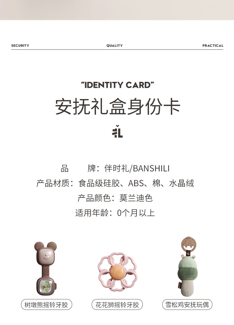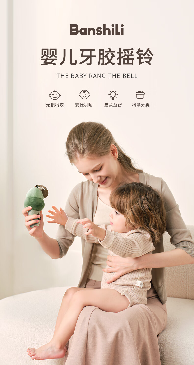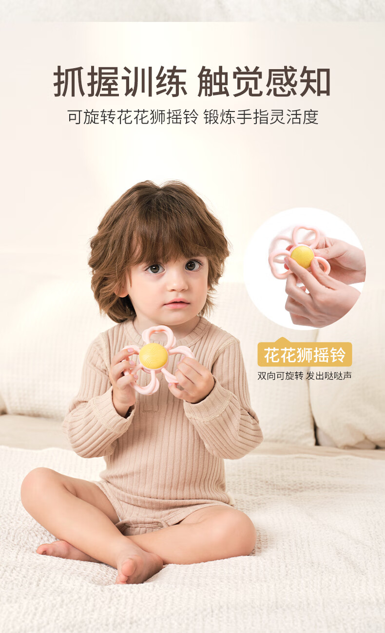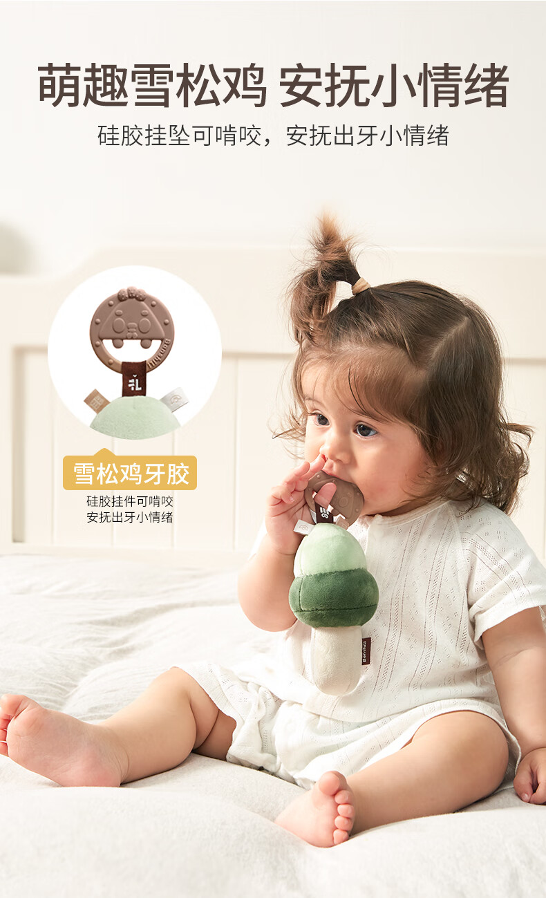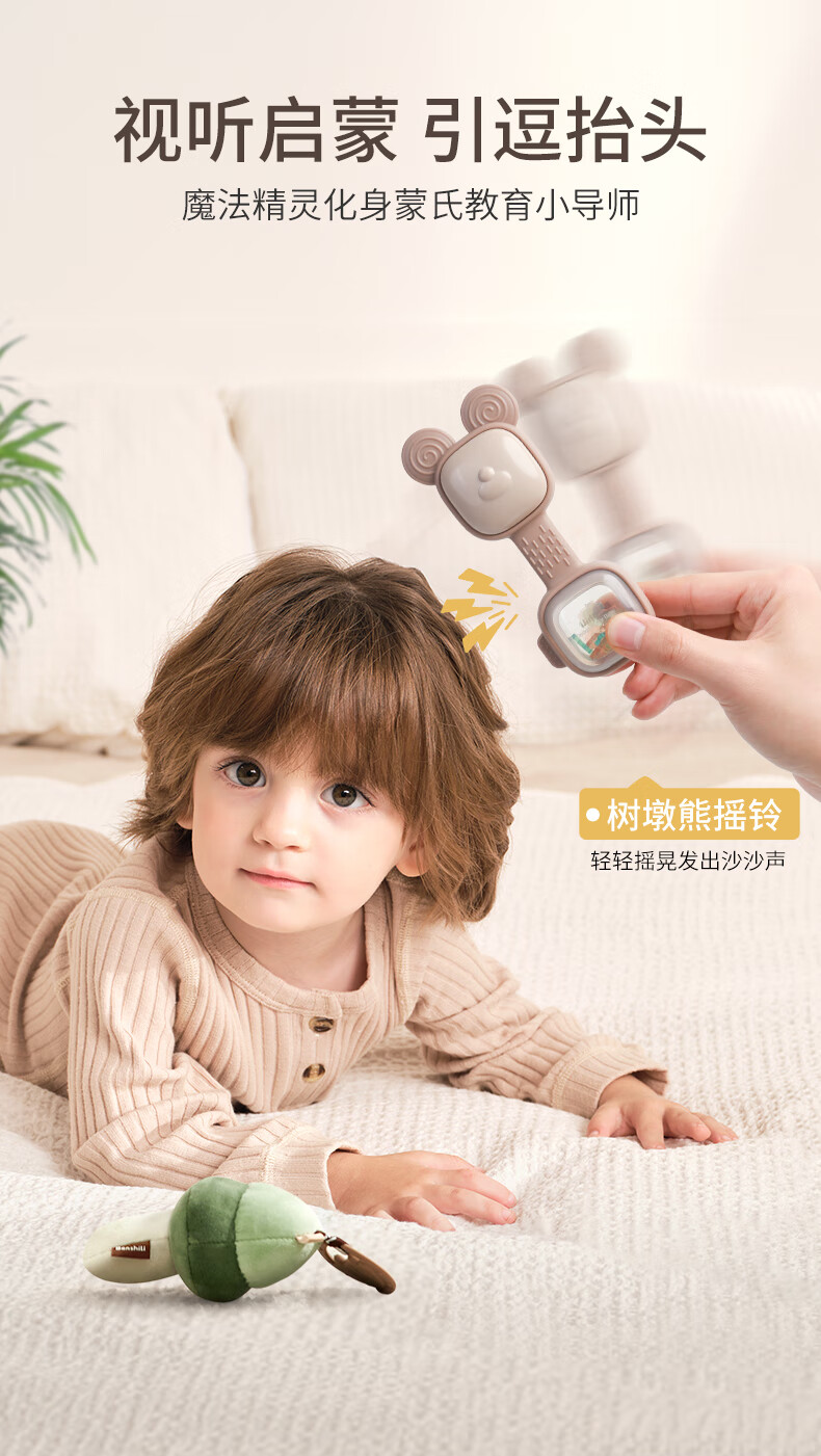 伴时礼婴幼儿手摇铃安抚牙胶玩具0-1岁新生儿分阶摇铃宝宝可啃咬磨牙棒