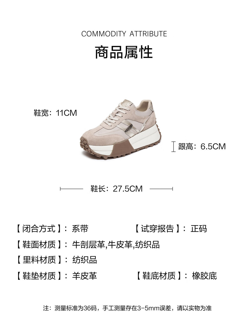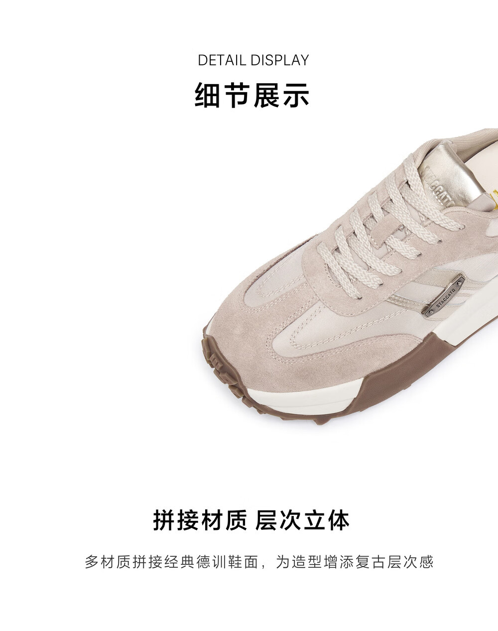 思加图2025秋季新款德训鞋阿甘鞋厚底增高休闲运动鞋女鞋G0962CM5 柔纱杏 34