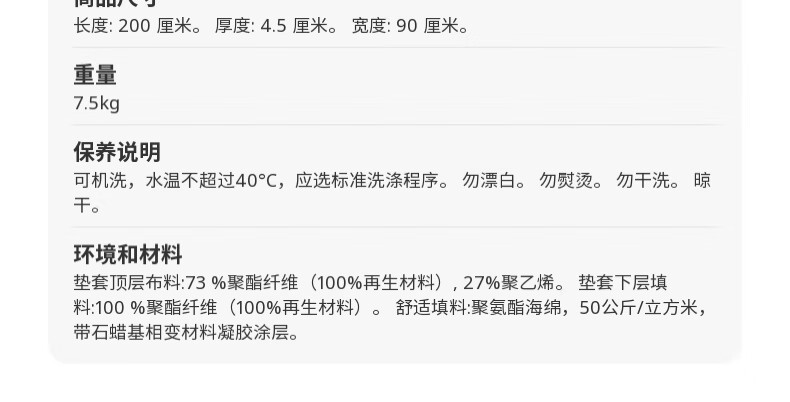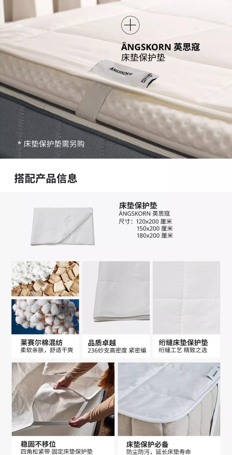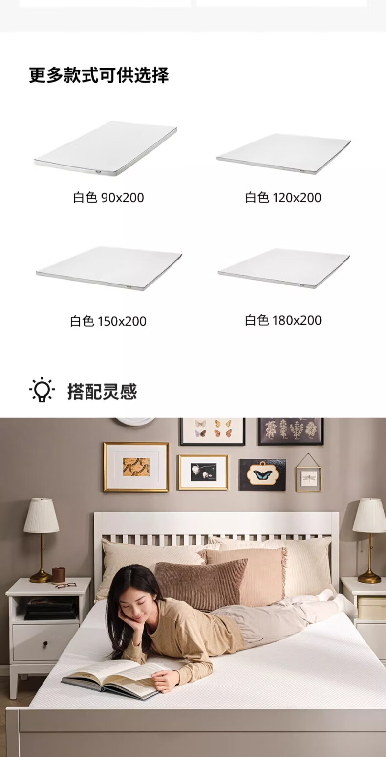 宜家(IKEA)NASTABERG床褥90x200白色垫子床垫褥子 床褥白色90x200cm