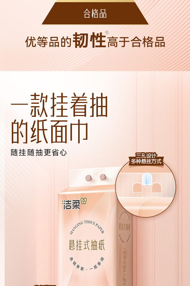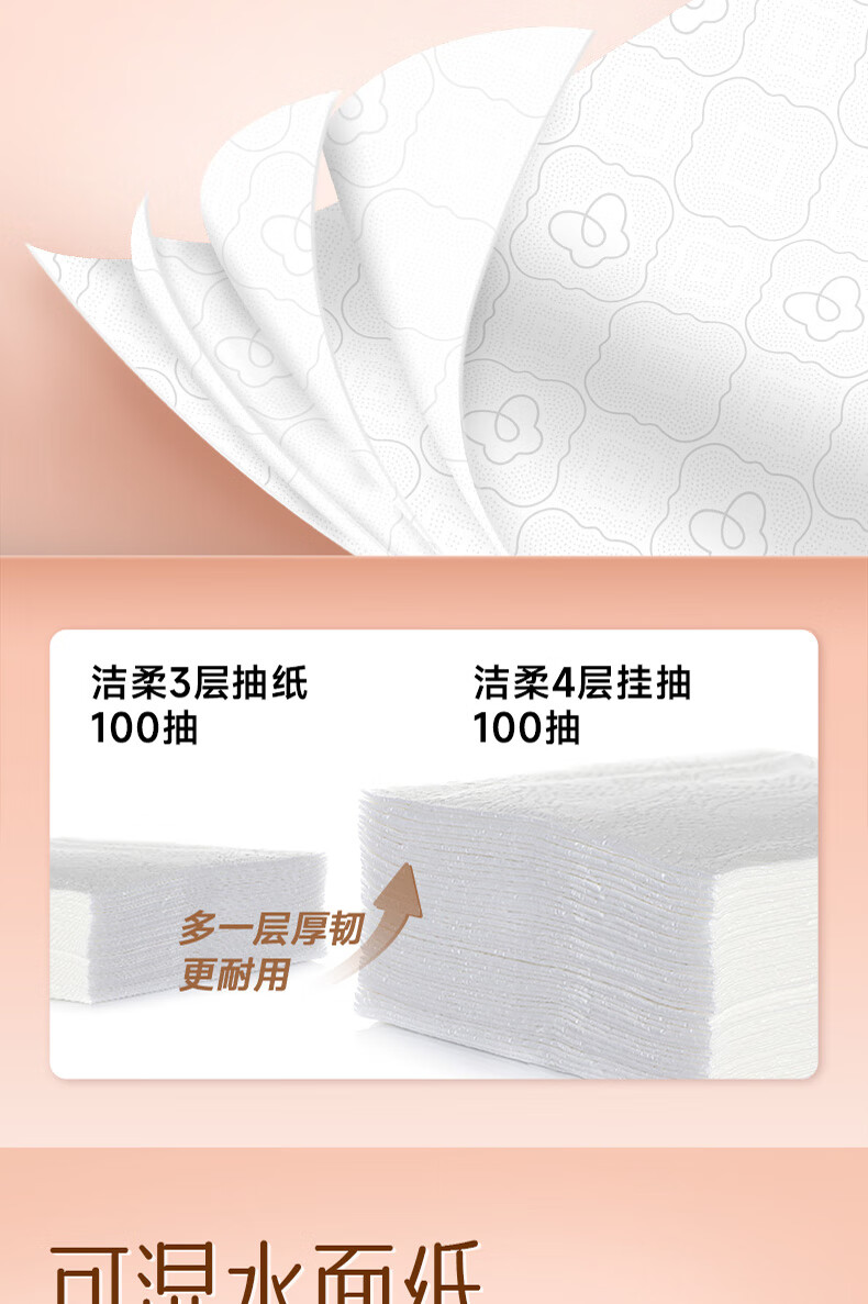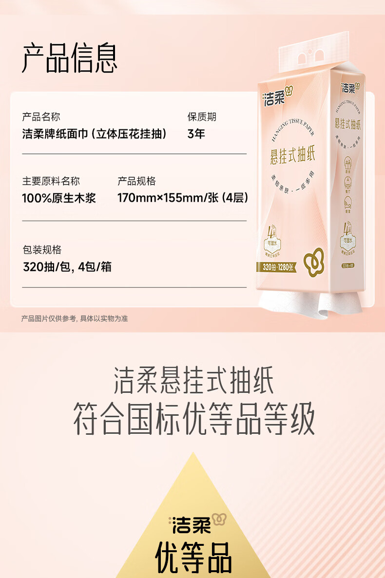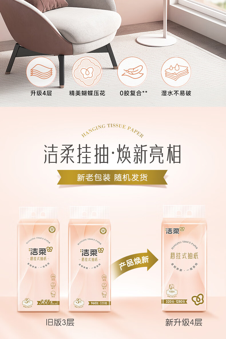 洁柔挂抽悬挂式抽纸320抽大包家用整箱实惠装卫生纸餐巾纸厕纸巾擦手 4层320抽*4提整箱