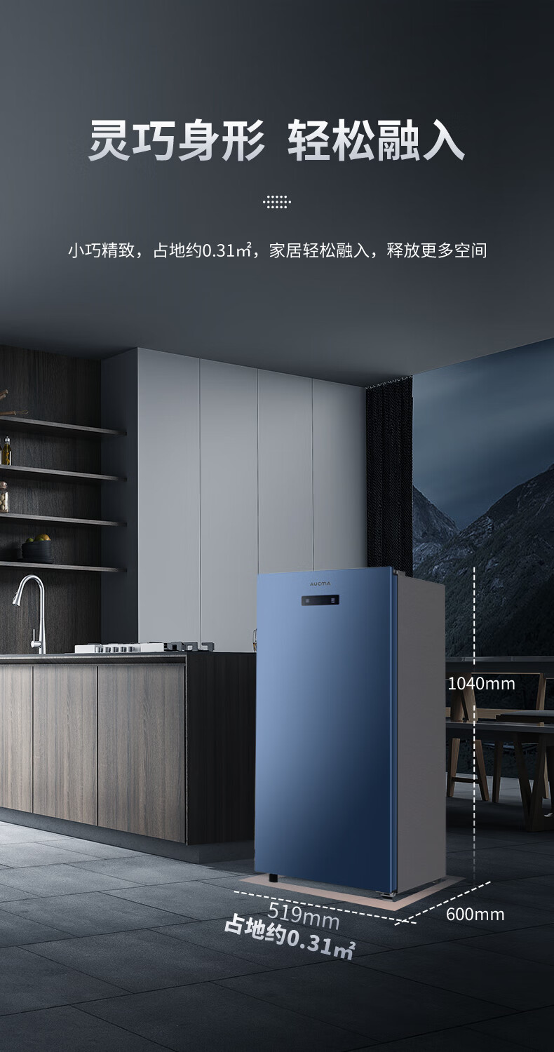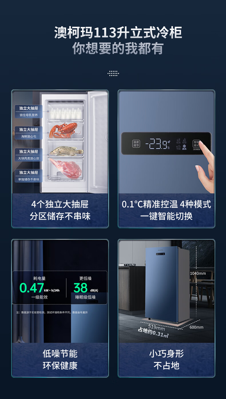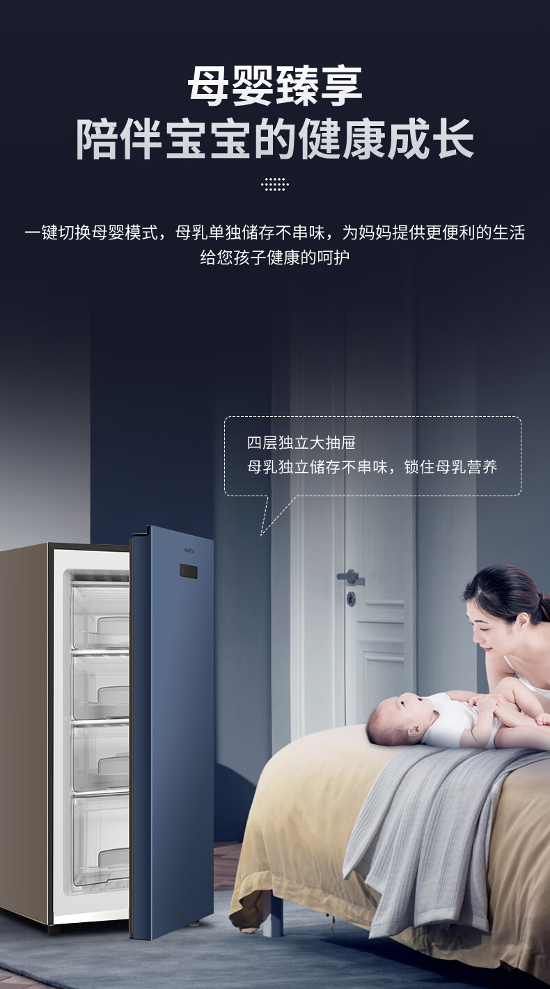 澳柯玛(AUCMA)113升立式冰柜 一级能效电脑智能控温 母乳冷冻抽屉式冷柜小冰箱 省电大冷冻柜BD-113EVH 晶韵蓝 113L BD-113EVH