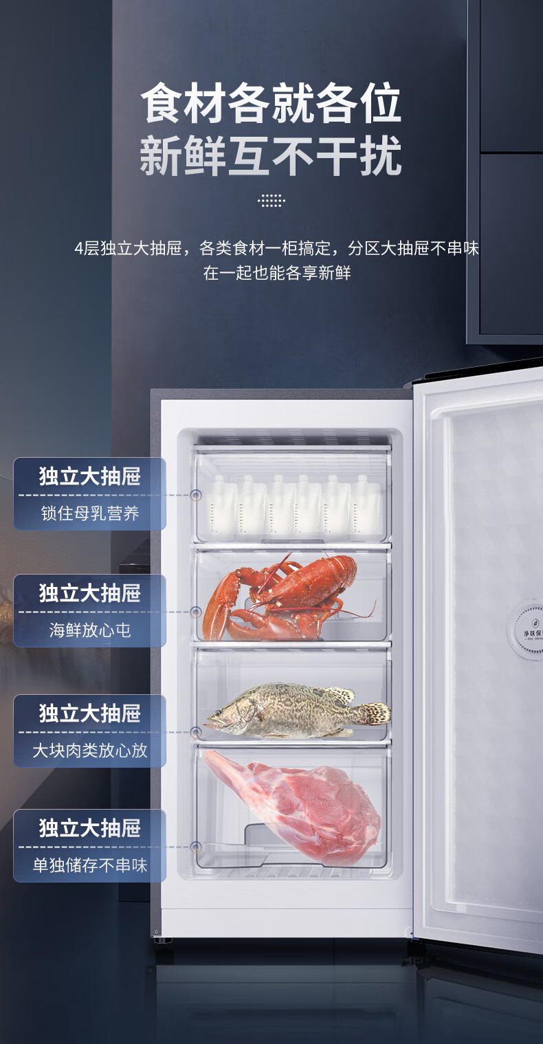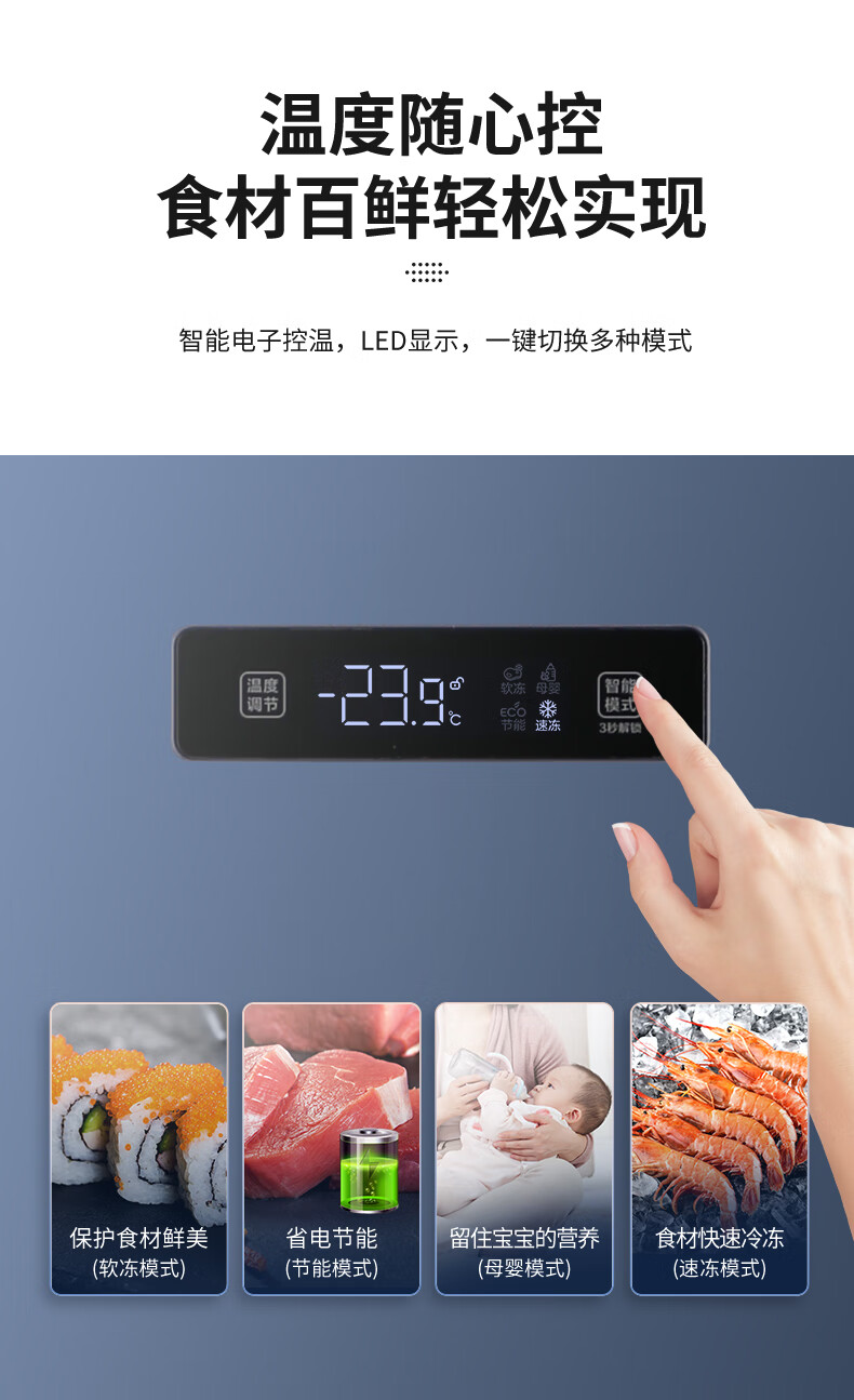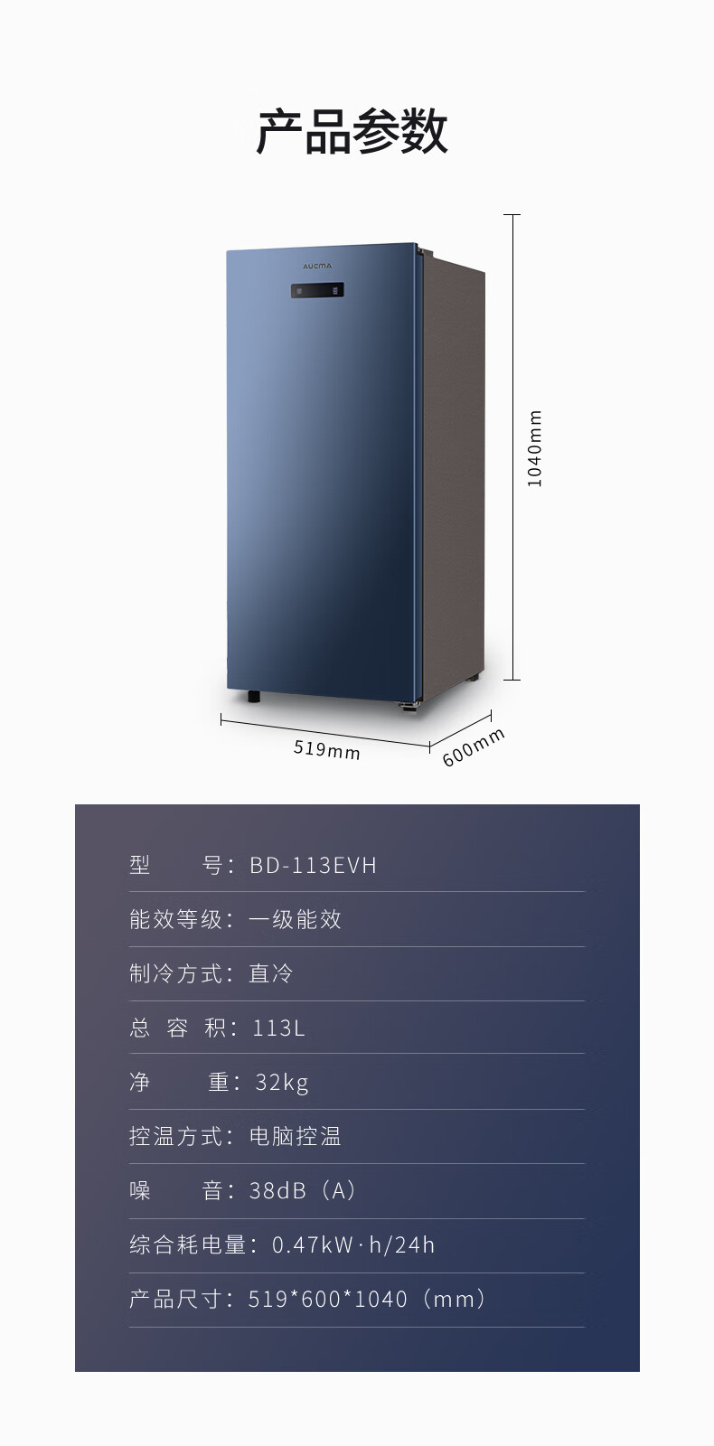 澳柯玛(AUCMA)113升立式冰柜 一级能效电脑智能控温 母乳冷冻抽屉式冷柜小冰箱 省电大冷冻柜BD-113EVH 晶韵蓝 113L BD-113EVH