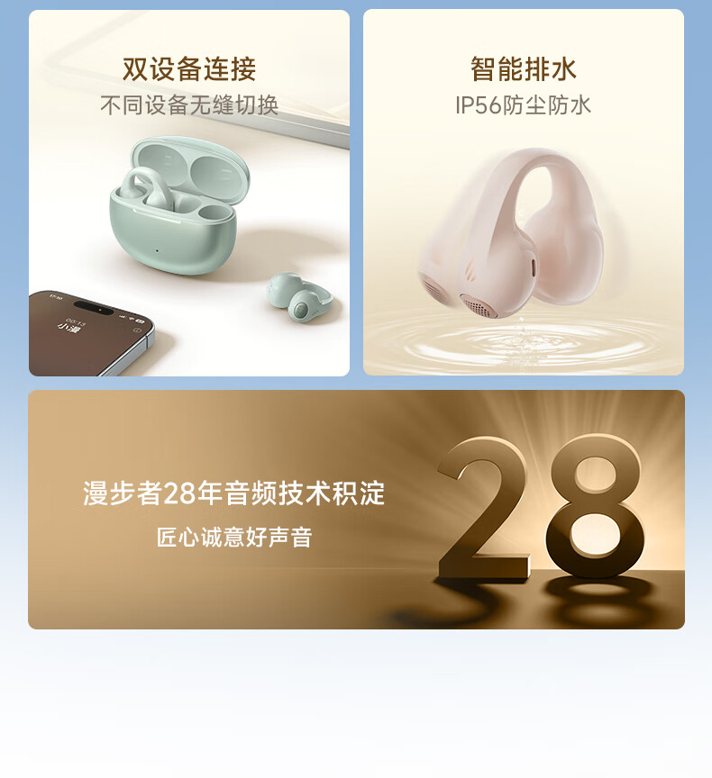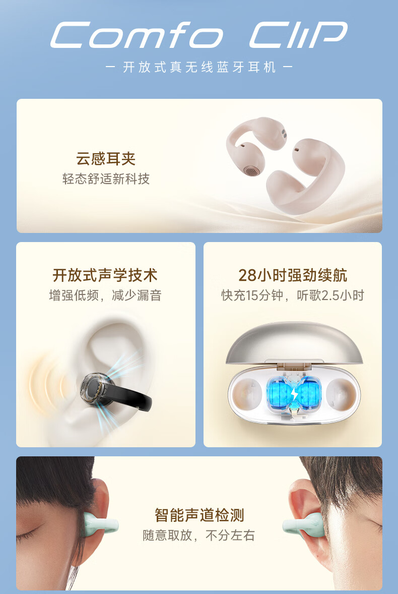 漫步者(EDIFIER)Comfo Clip耳夹式蓝牙耳机 骨传导升级空气传导 开放式 跑步运动耳机 蓝牙5.4 浮光绿