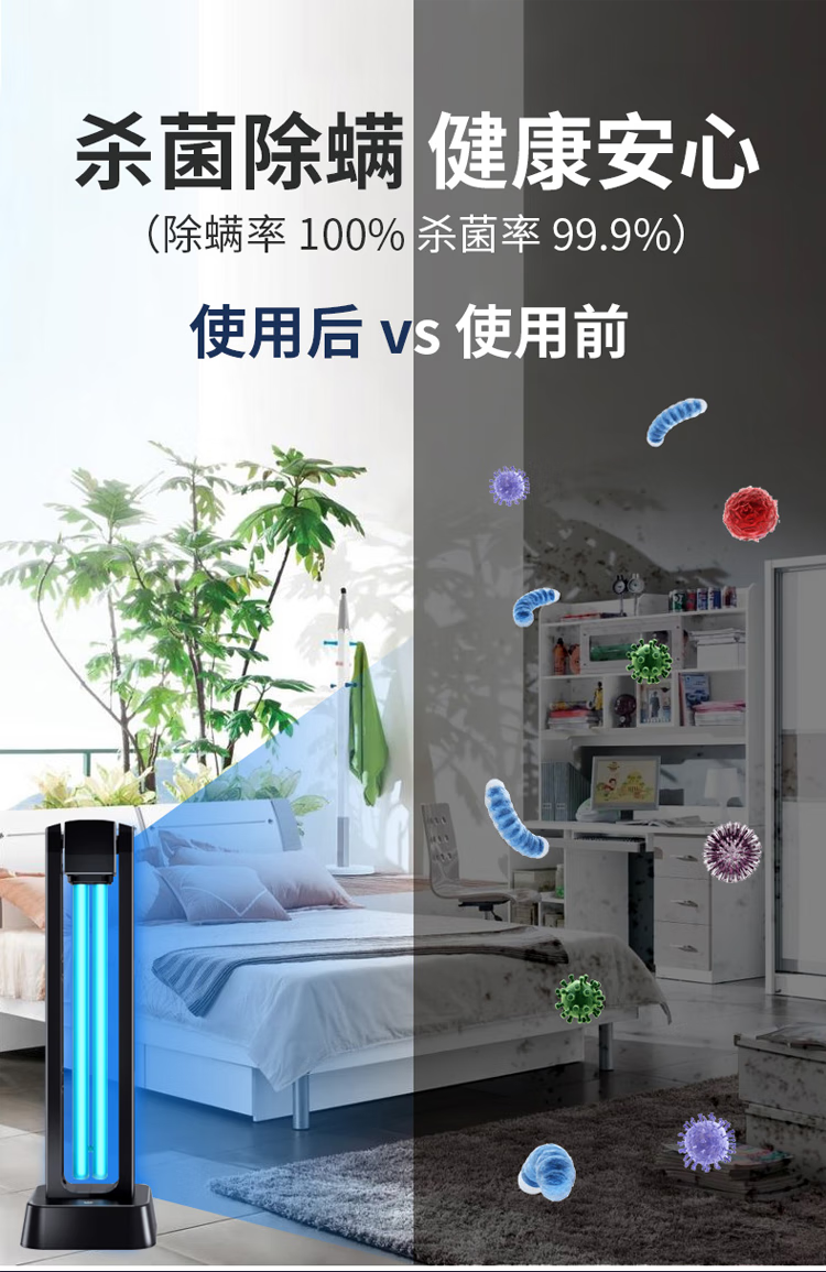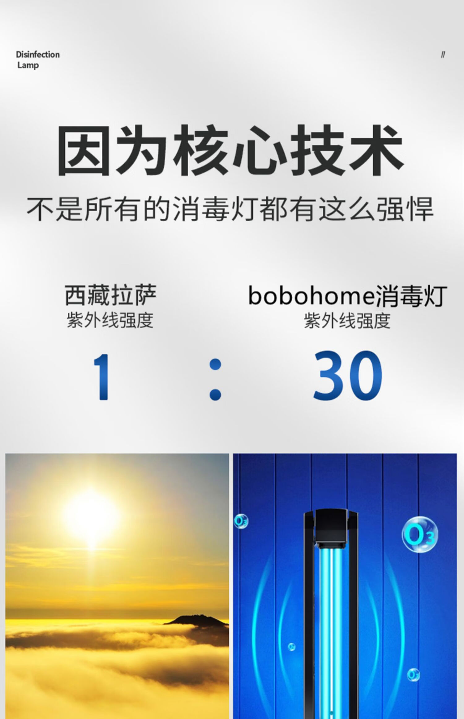 BOBOHOME医用级紫外线灯杀菌消毒灯家用室内臭氧除螨宠物除味除甲醛机器 39瓦【无臭氧】+三档定时+遥控