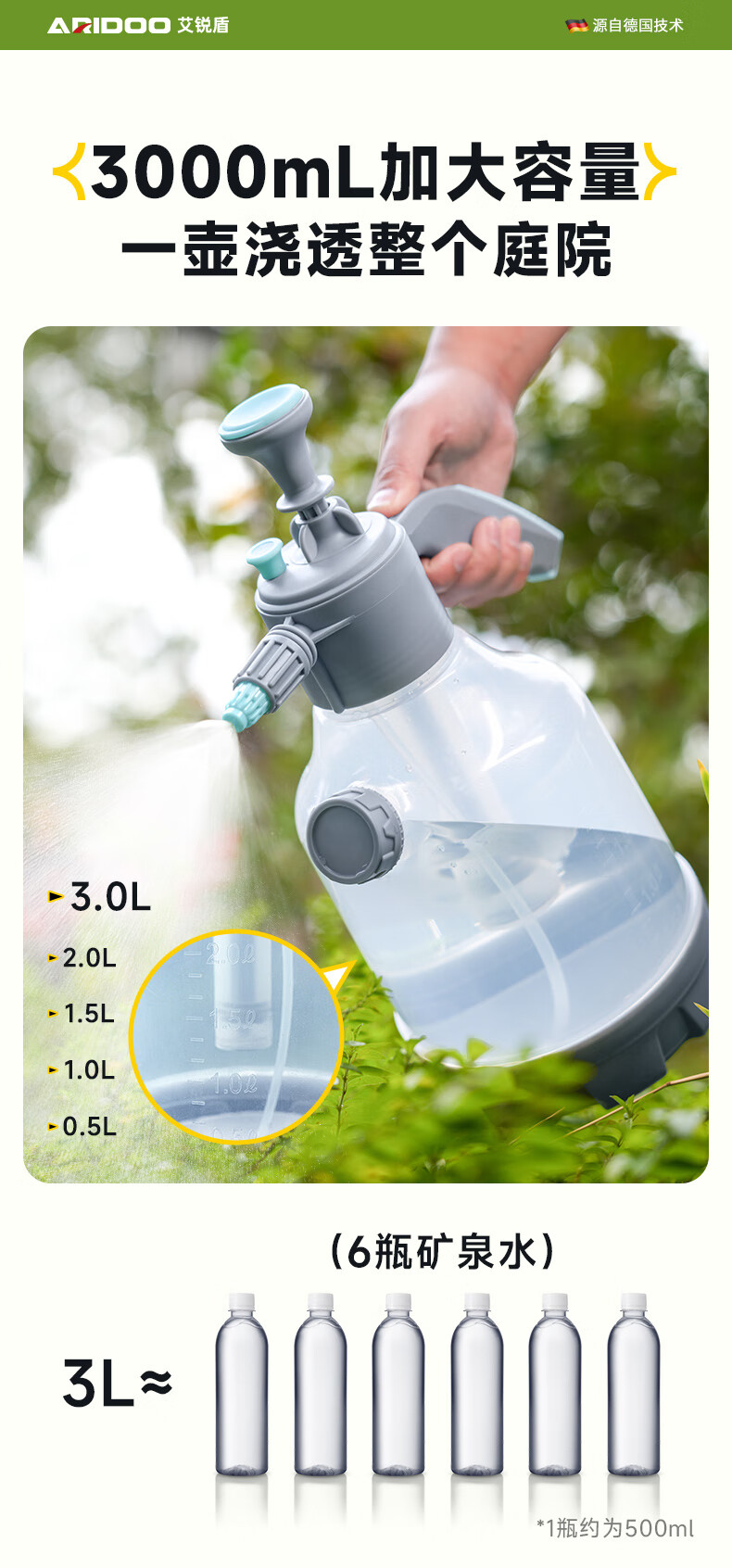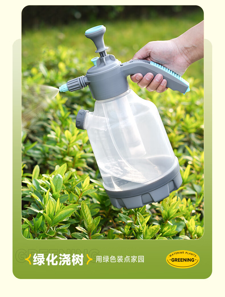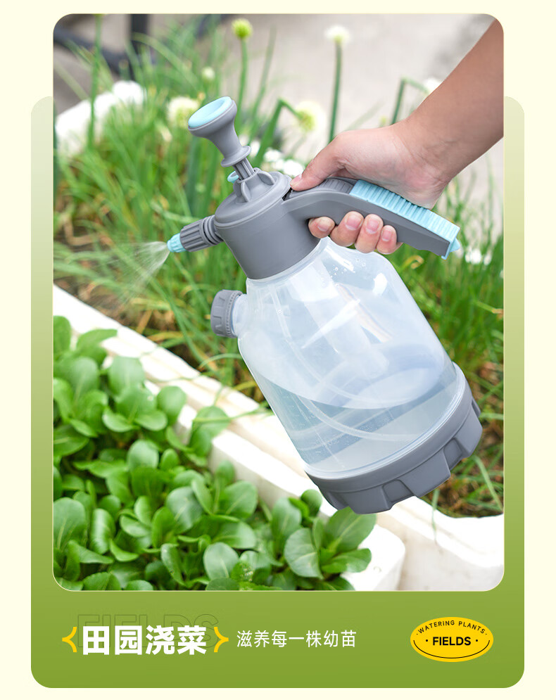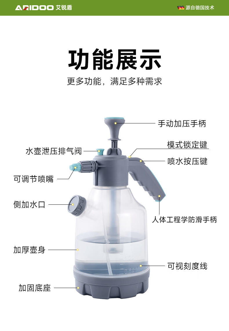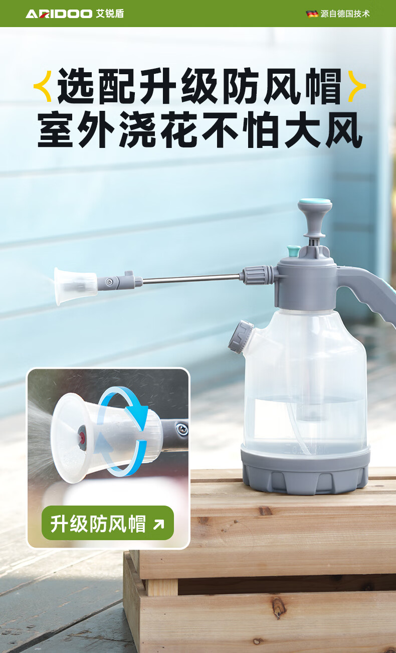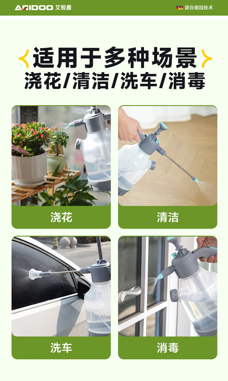 艾锐盾德国喷壶浇花气压式喷雾器养花洒水壶洗车消毒高压喷水壶 透明灰2L【加厚材质】