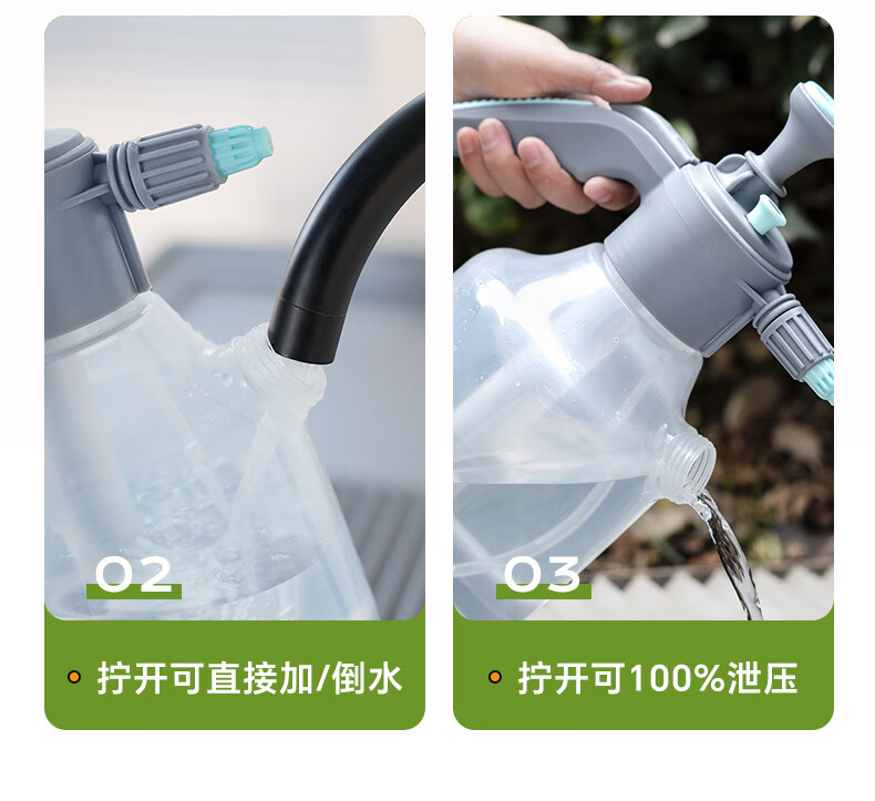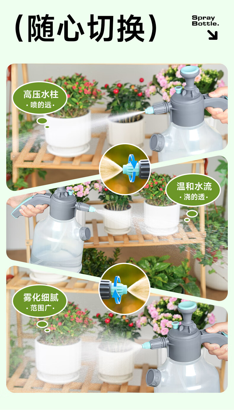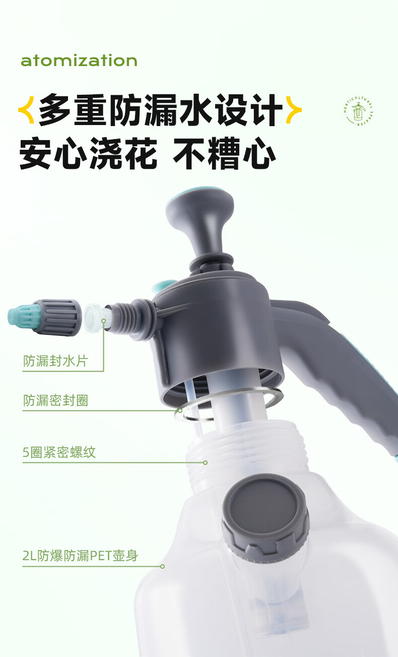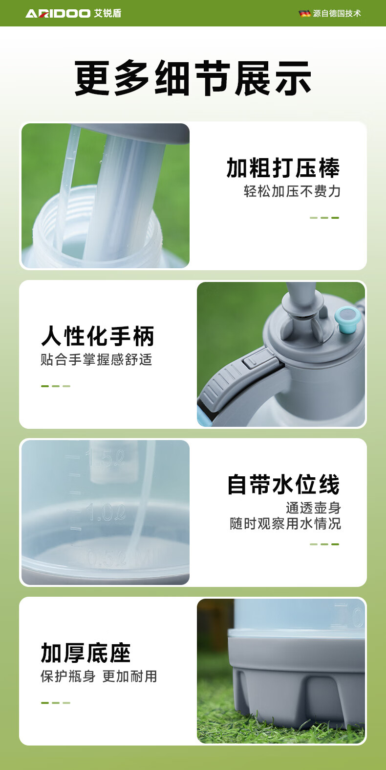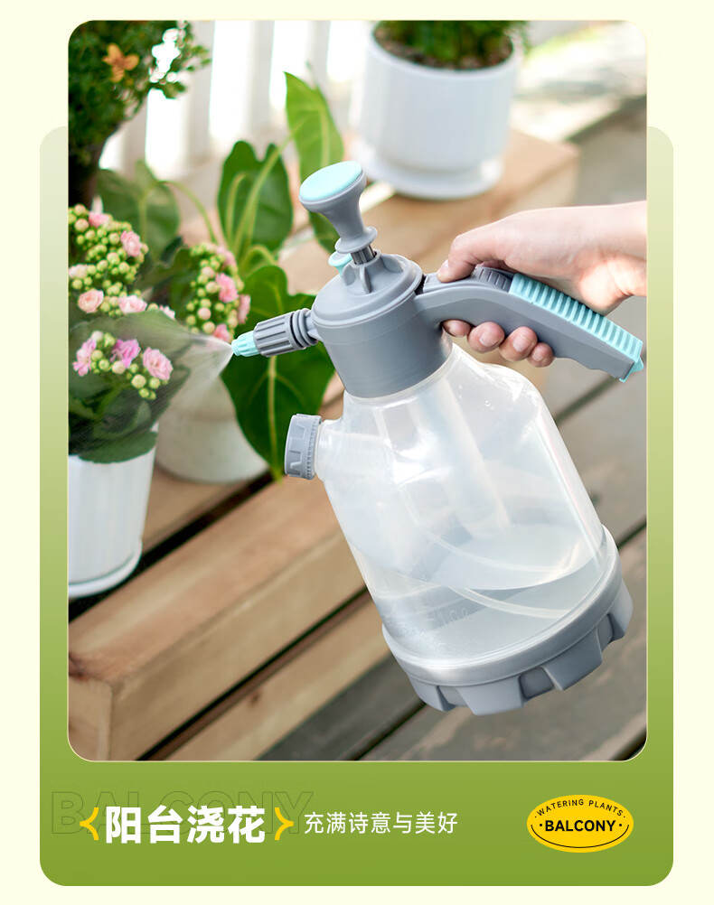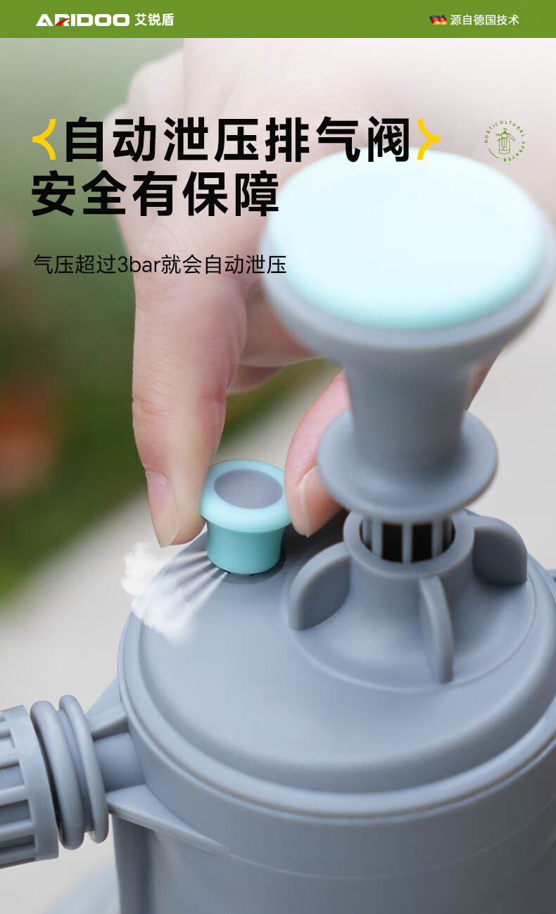 艾锐盾德国喷壶浇花气压式喷雾器养花洒水壶洗车消毒高压喷水壶 透明灰2L【加厚材质】