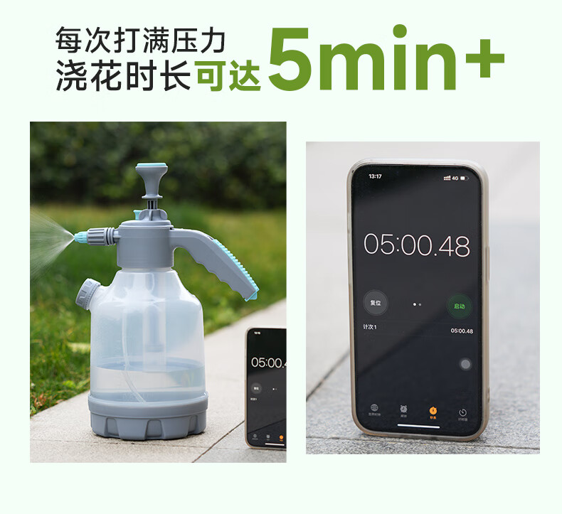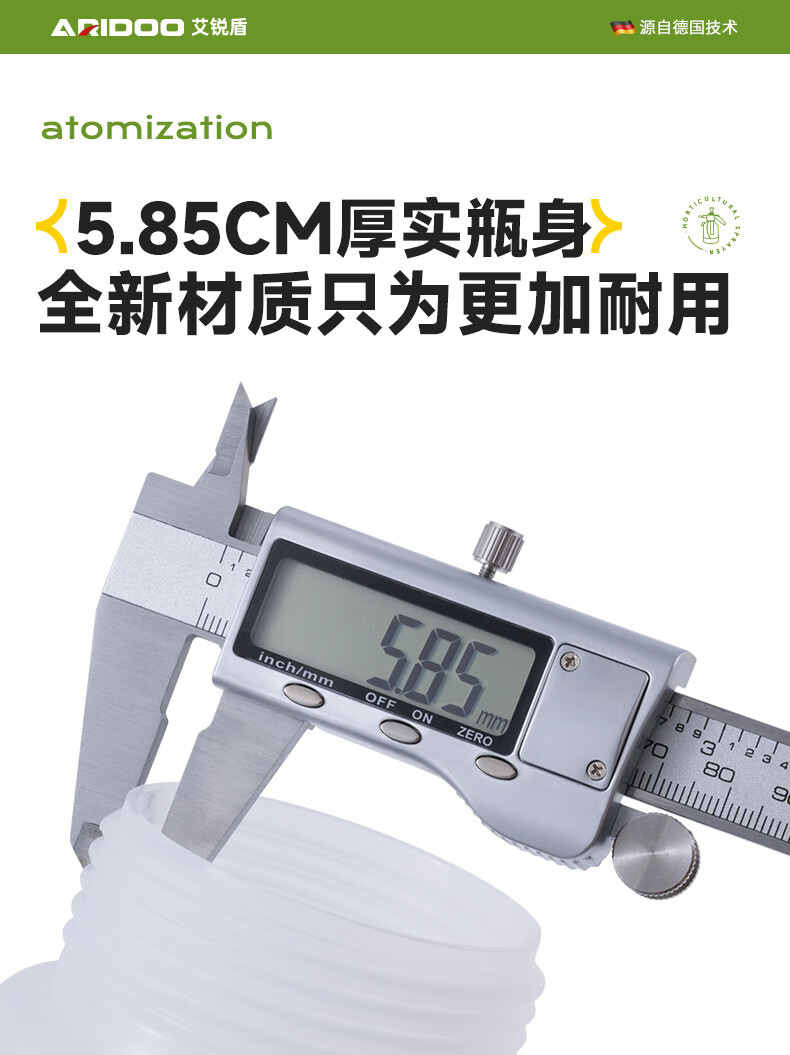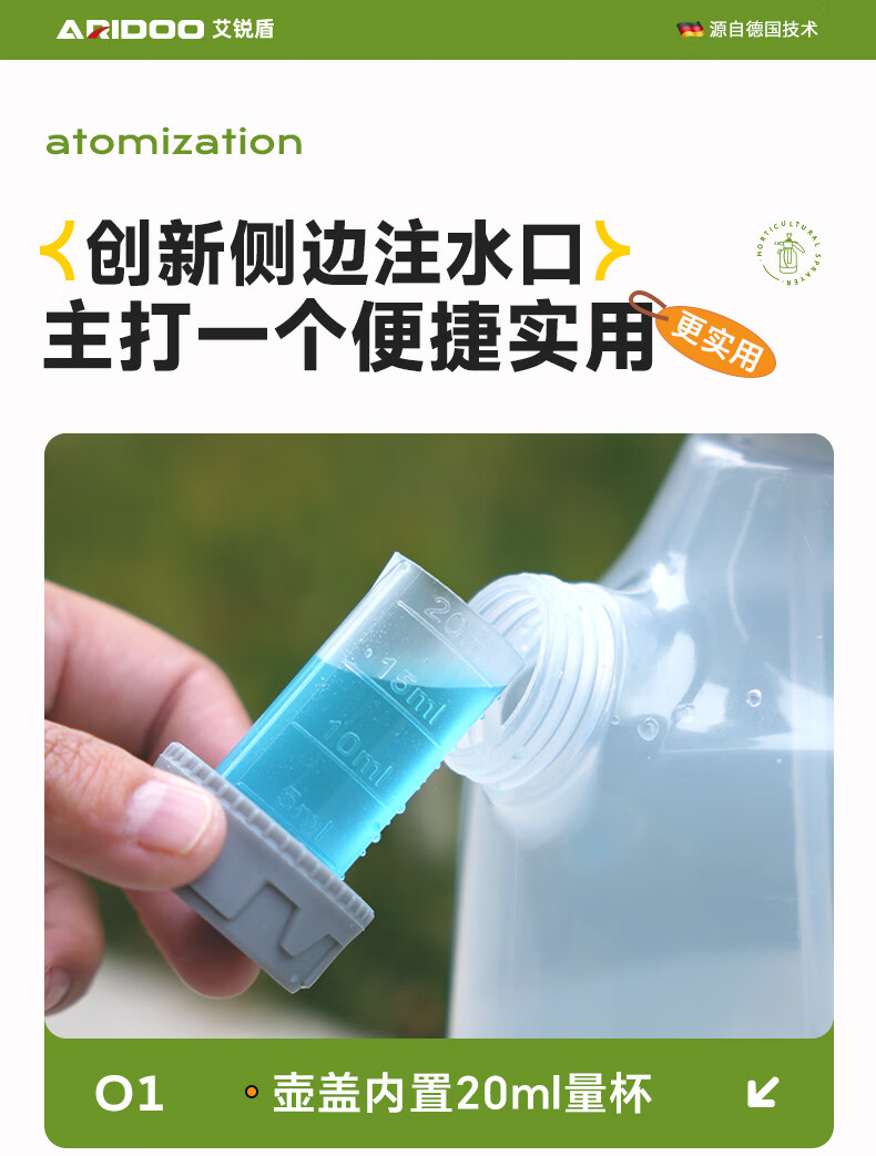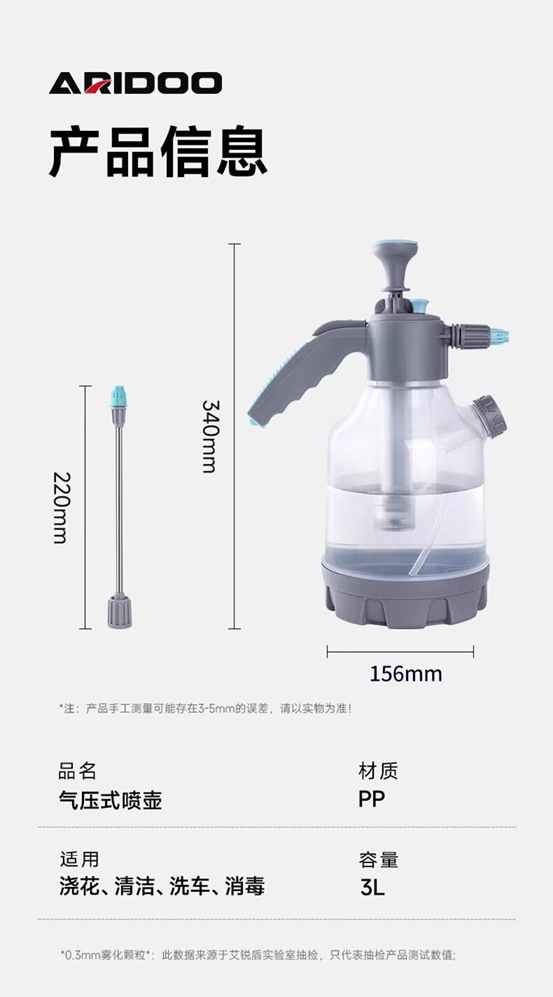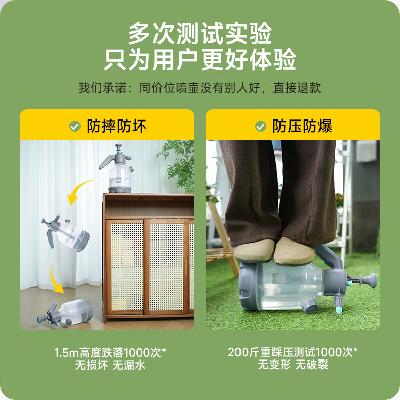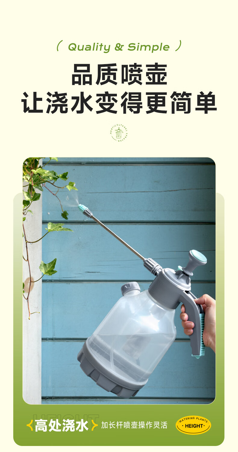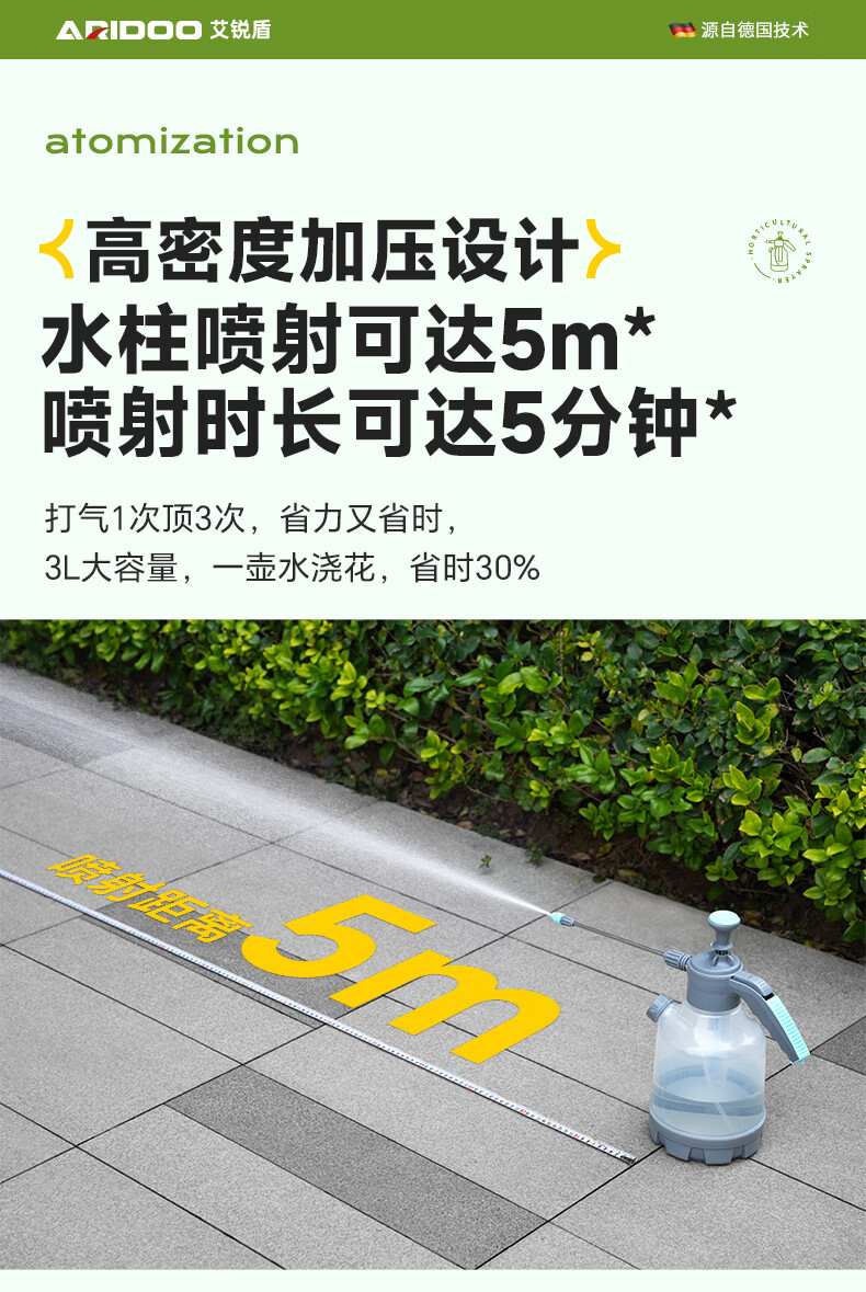 艾锐盾德国喷壶浇花气压式喷雾器养花洒水壶洗车消毒高压喷水壶 透明灰2L【加厚材质】