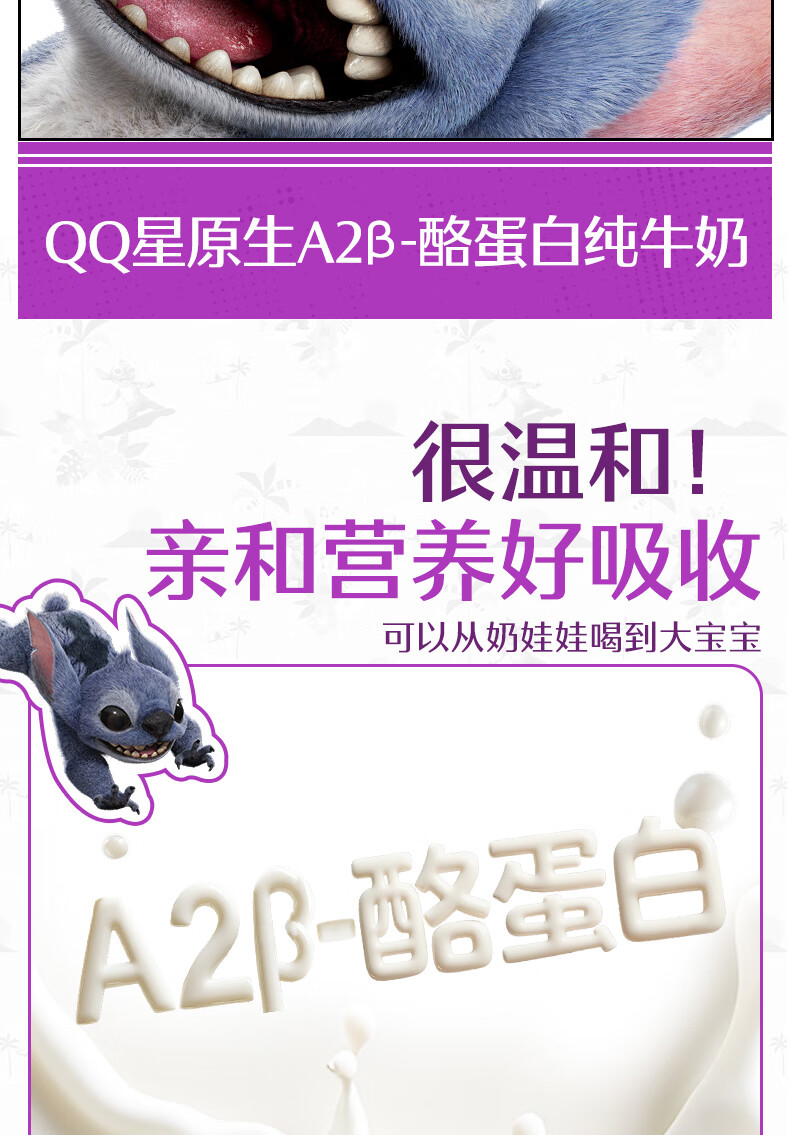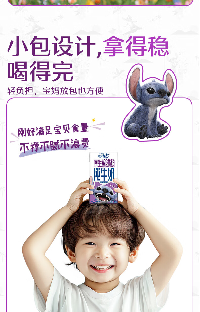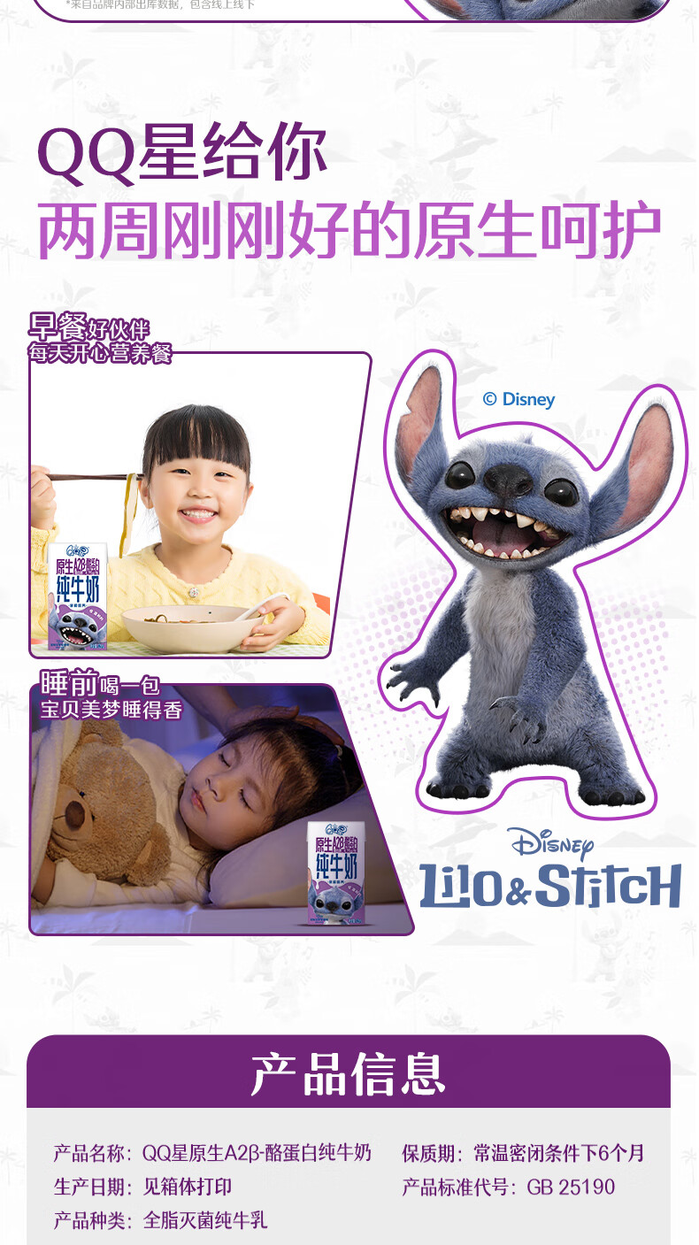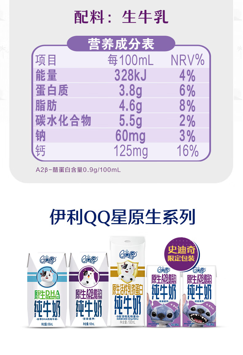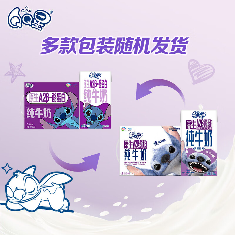 QQ星伊利原生A2β-酪蛋白儿童高钙纯牛奶125ml*28盒/箱 史迪仔礼盒装