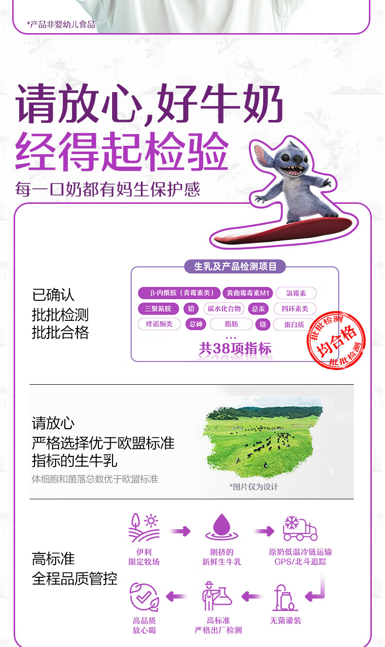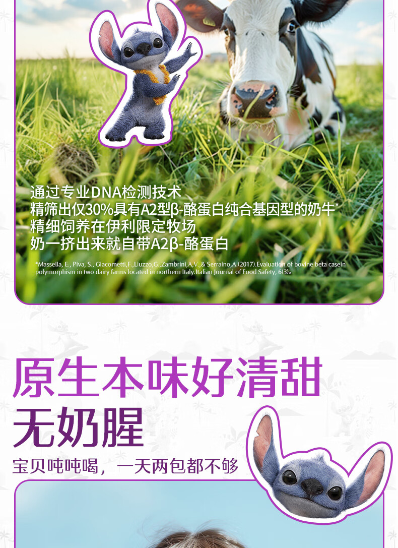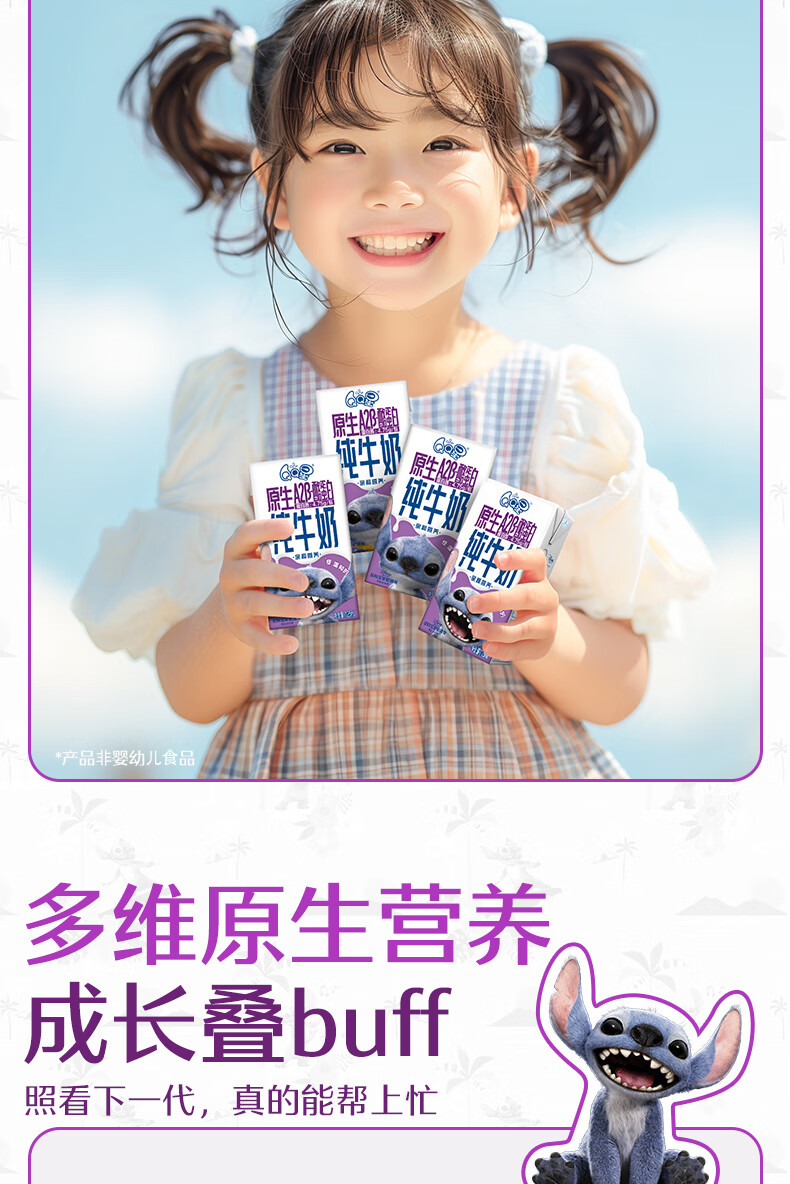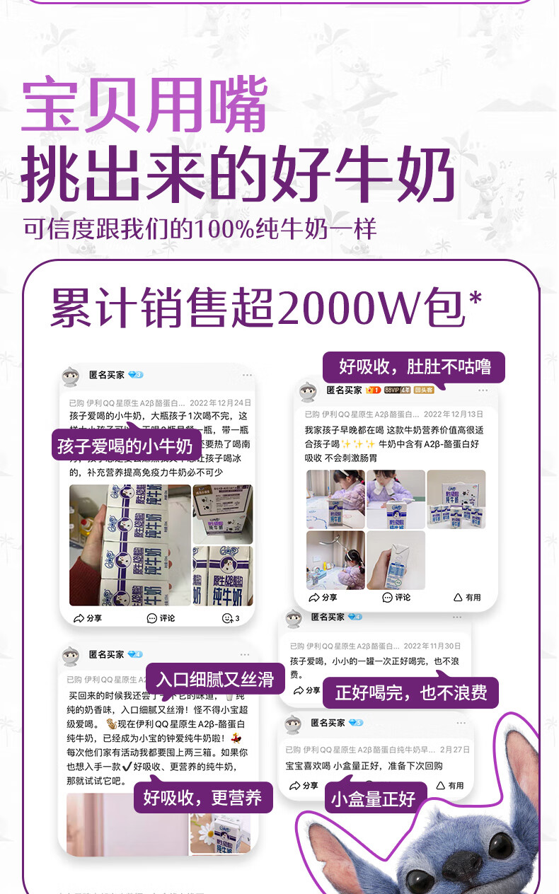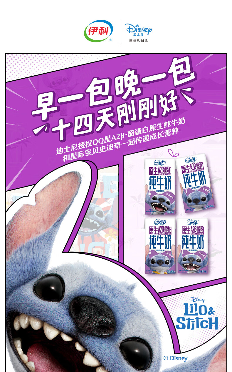 QQ星伊利原生A2β-酪蛋白儿童高钙纯牛奶125ml*28盒/箱 史迪仔礼盒装