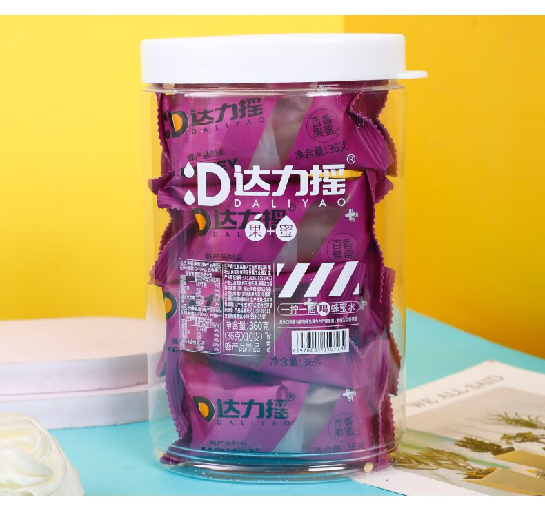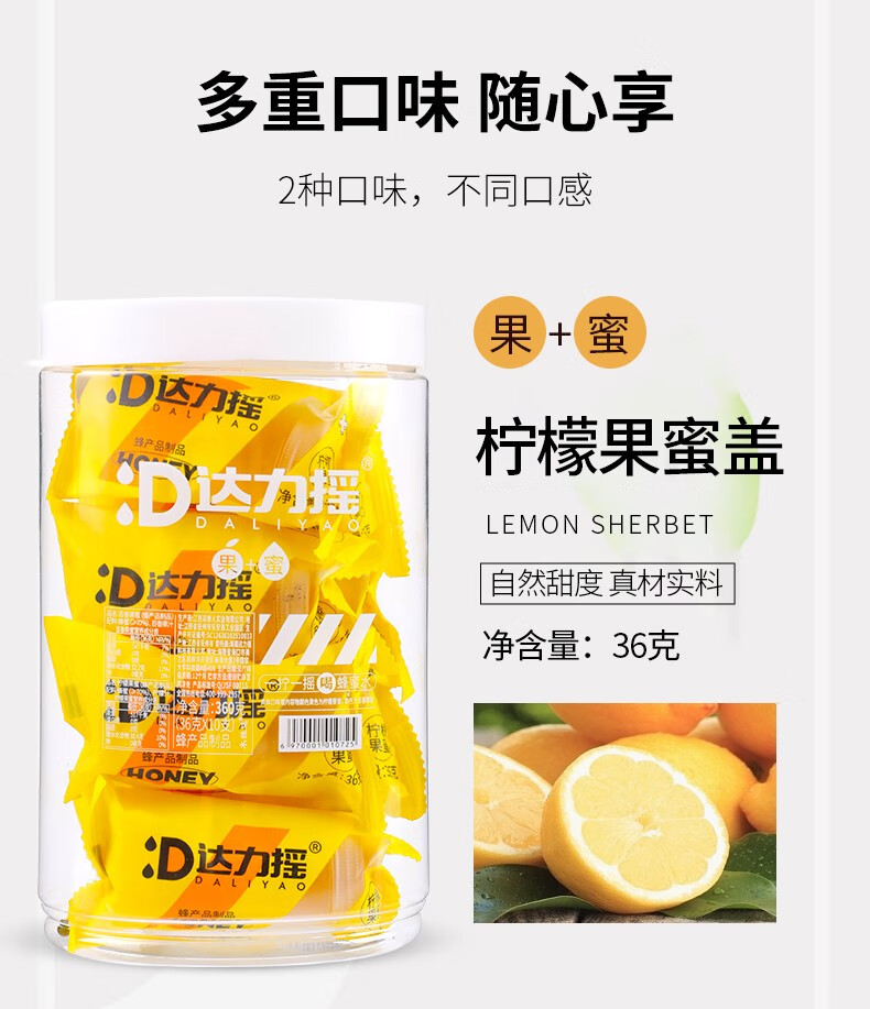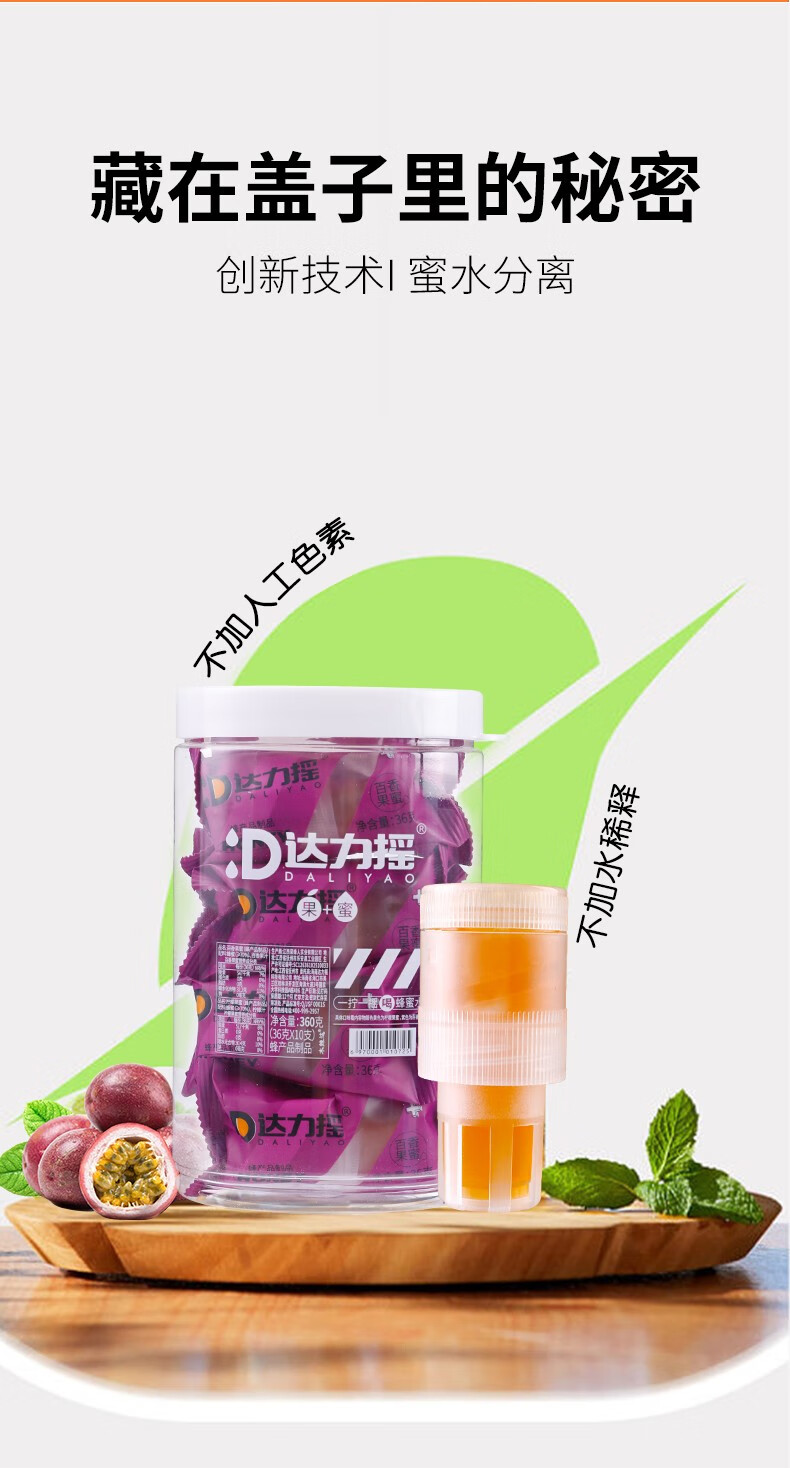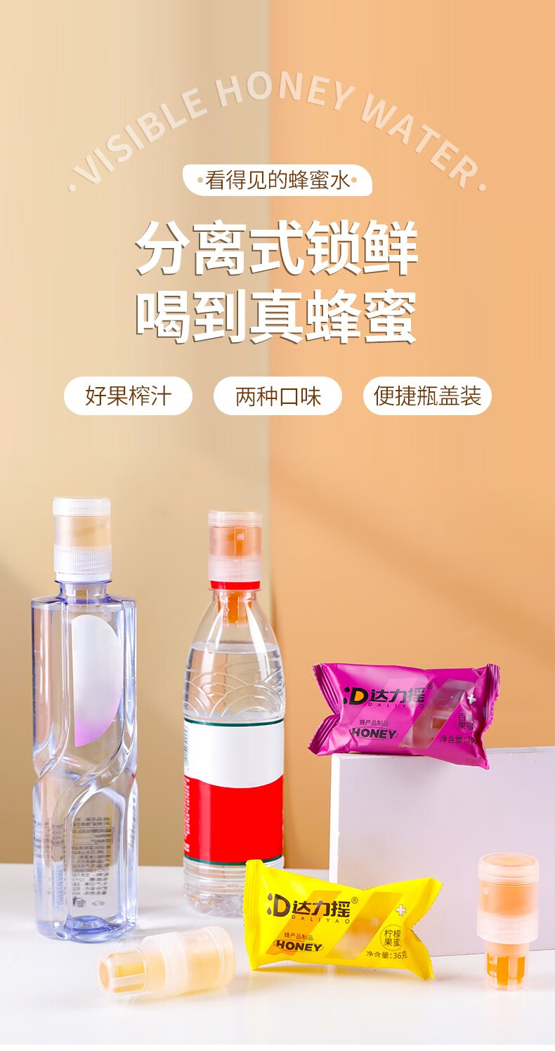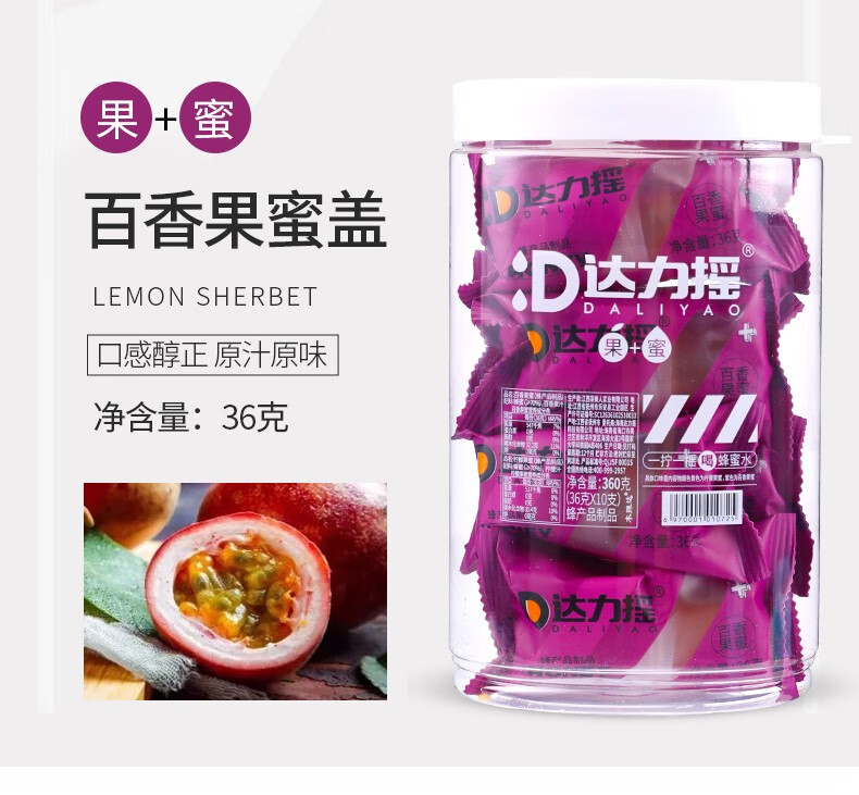 达力摇柠檬蜂蜜水饮料新鲜小青柑蜂蜜汁百香果蜜便携蜂蜜盖网红装置 三口味混合装10支【散装不含桶】