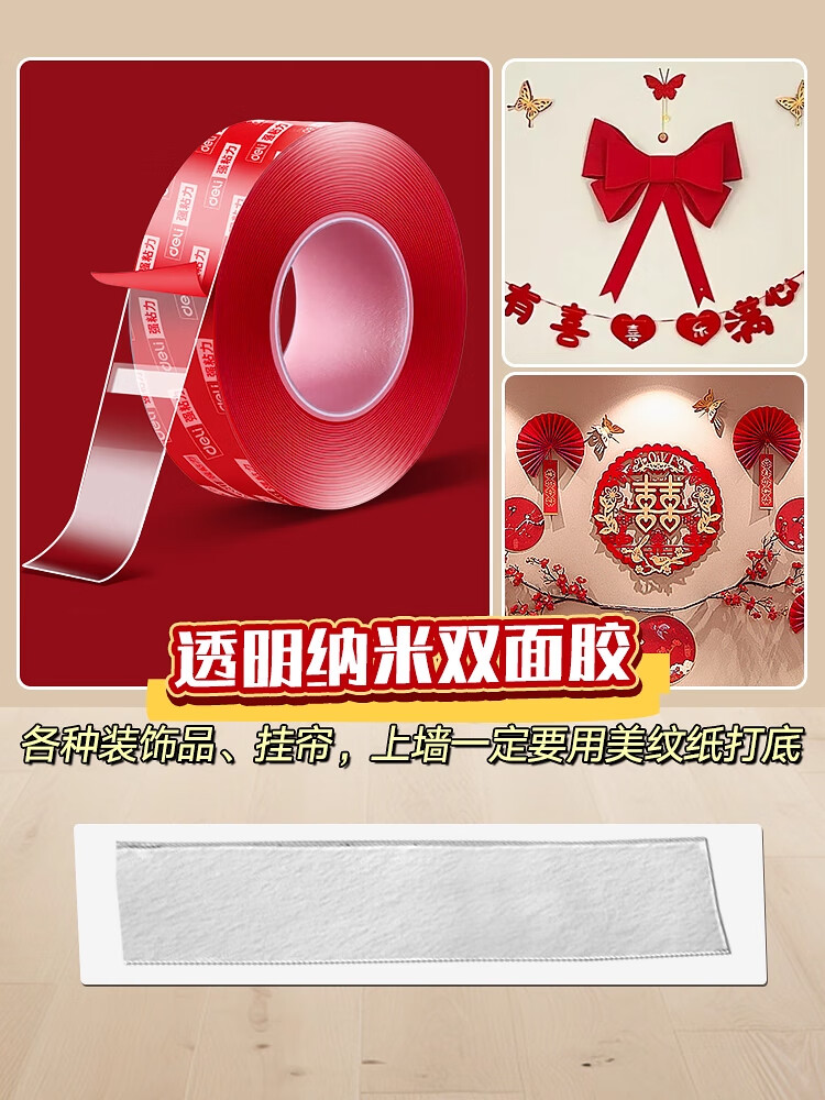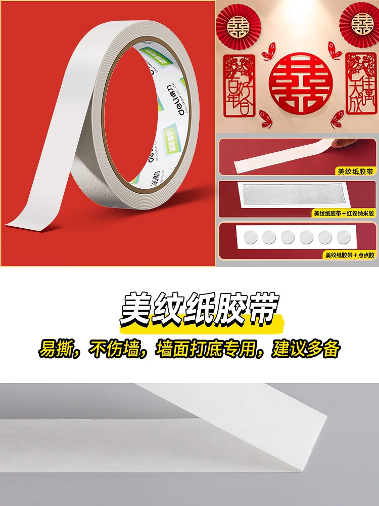 得力婚房布置专用胶美纹纸胶带墙面无痕胶结婚装饰胶贴喜字气球对联纳米双面胶高粘度强力点点胶不留痕 美纹纸胶带3卷+无痕纳米胶3卷+点胶300点