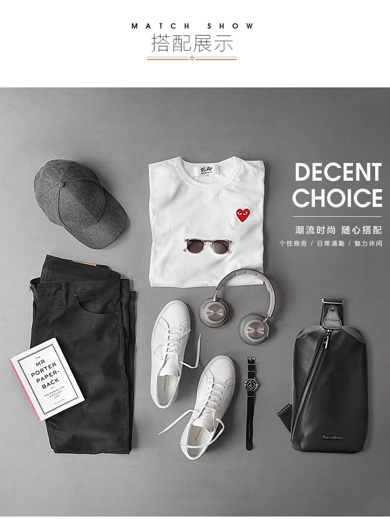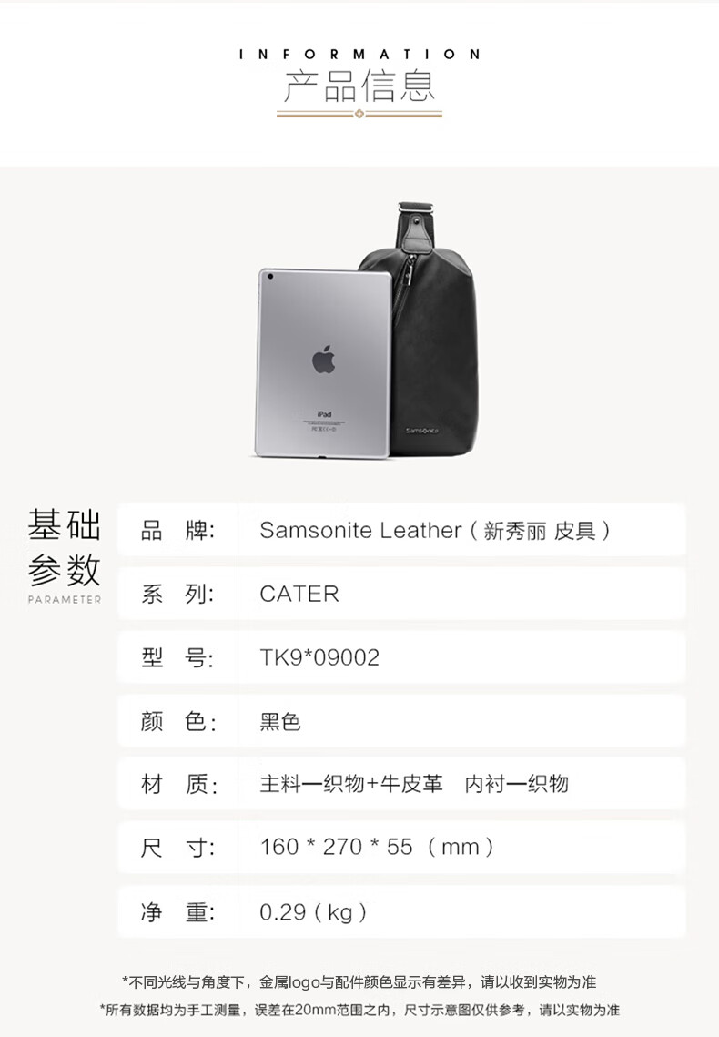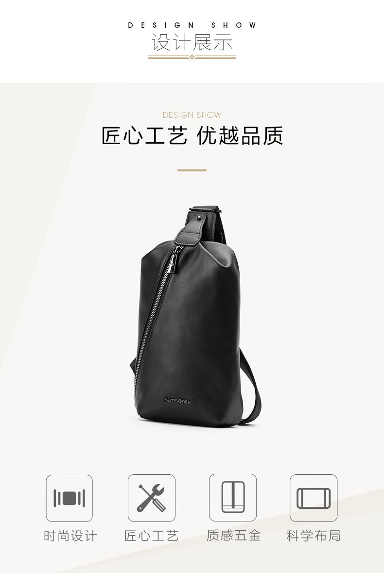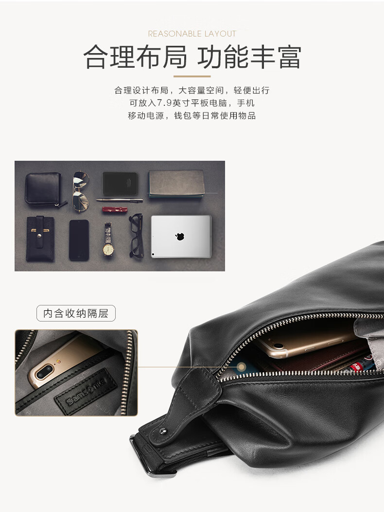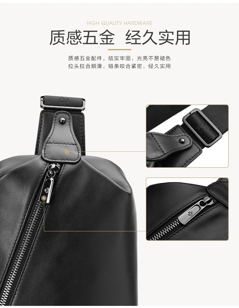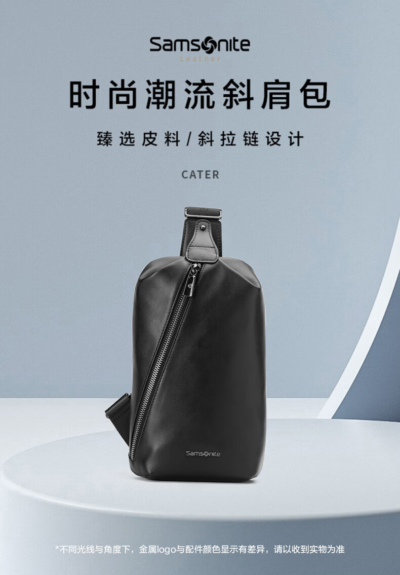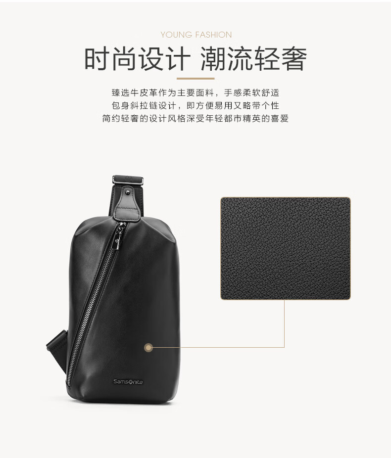 新秀丽(Samsonite)胸包男士时尚斜挎包休闲简约软牛皮腰包生日礼物 TK9