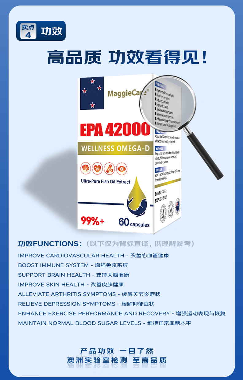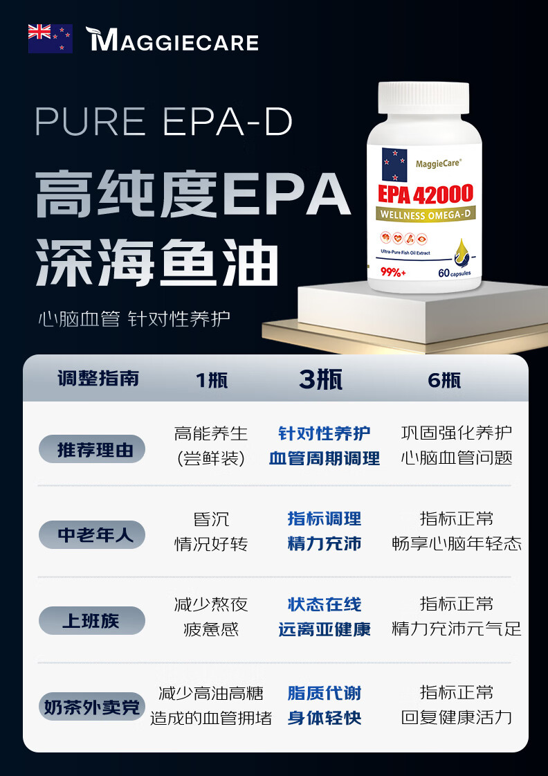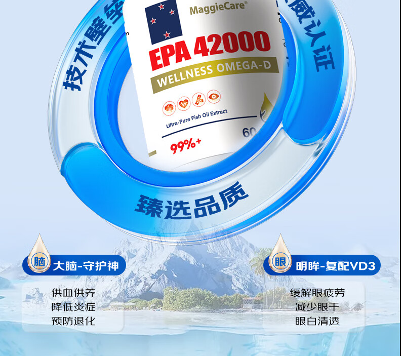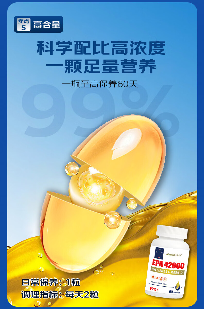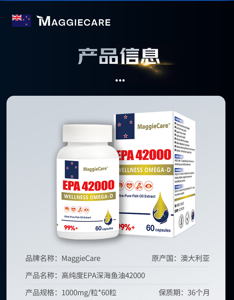 MaggieCare深海鱼油软胶囊99%高纯度EPA 单瓶装60粒【推荐周期购买更划算】