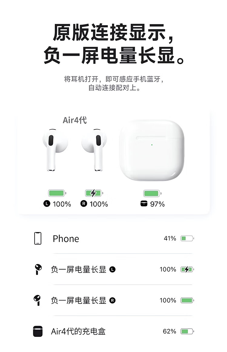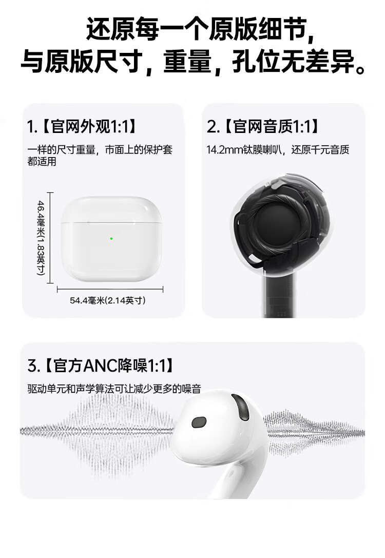 华强北新款【正品Air4顶配版】适用于airpods4代降噪蓝牙耳机苹果17系列新款 【百万热销丨主动降噪版全功能pods4】 【主动降噪+空间音頻+三真电量】